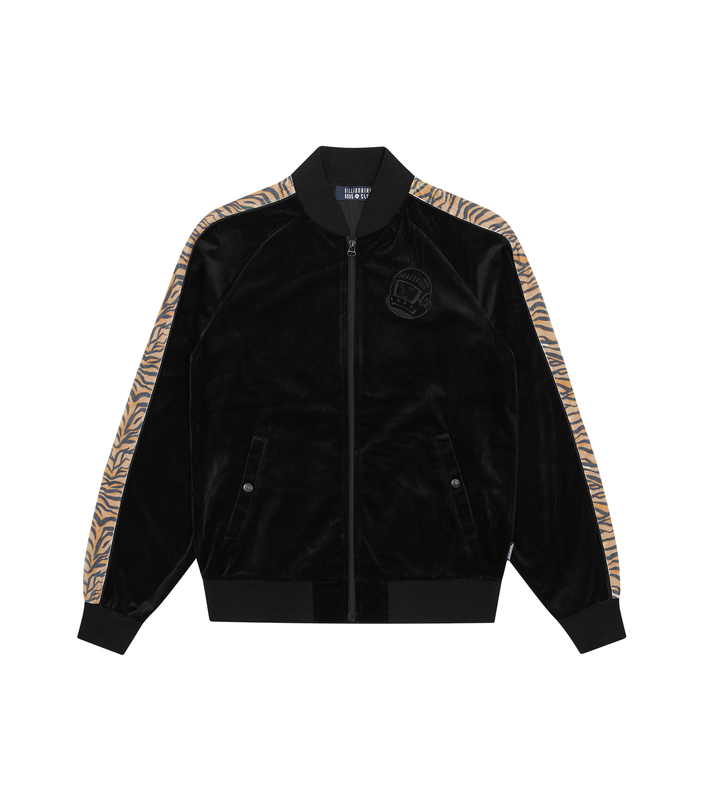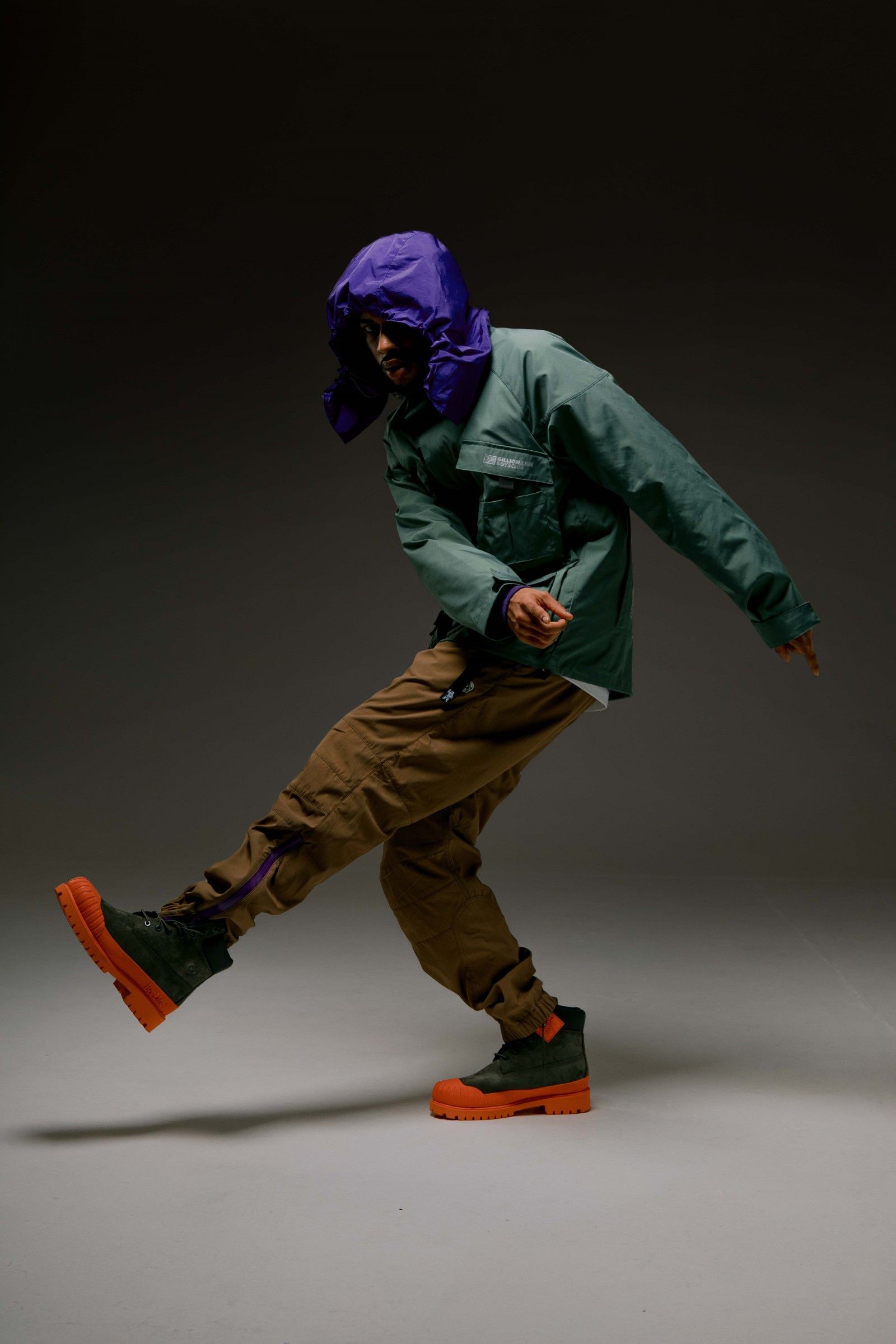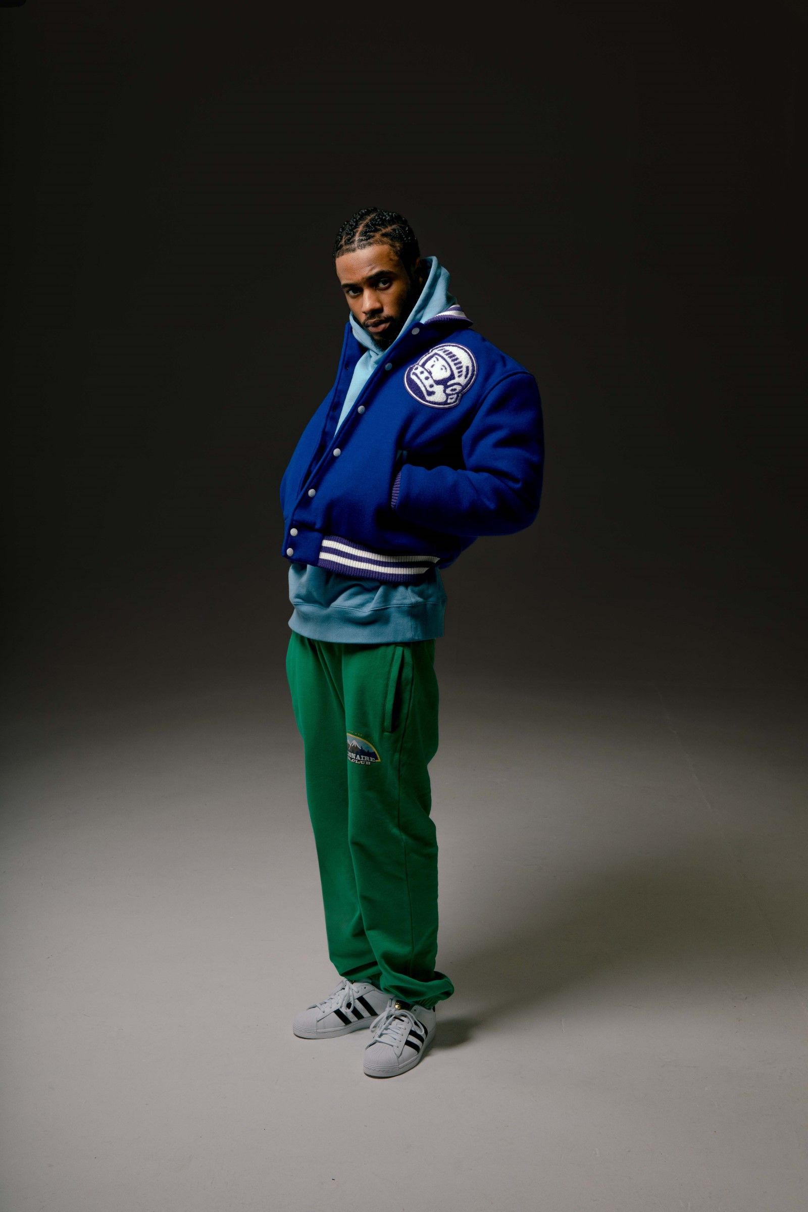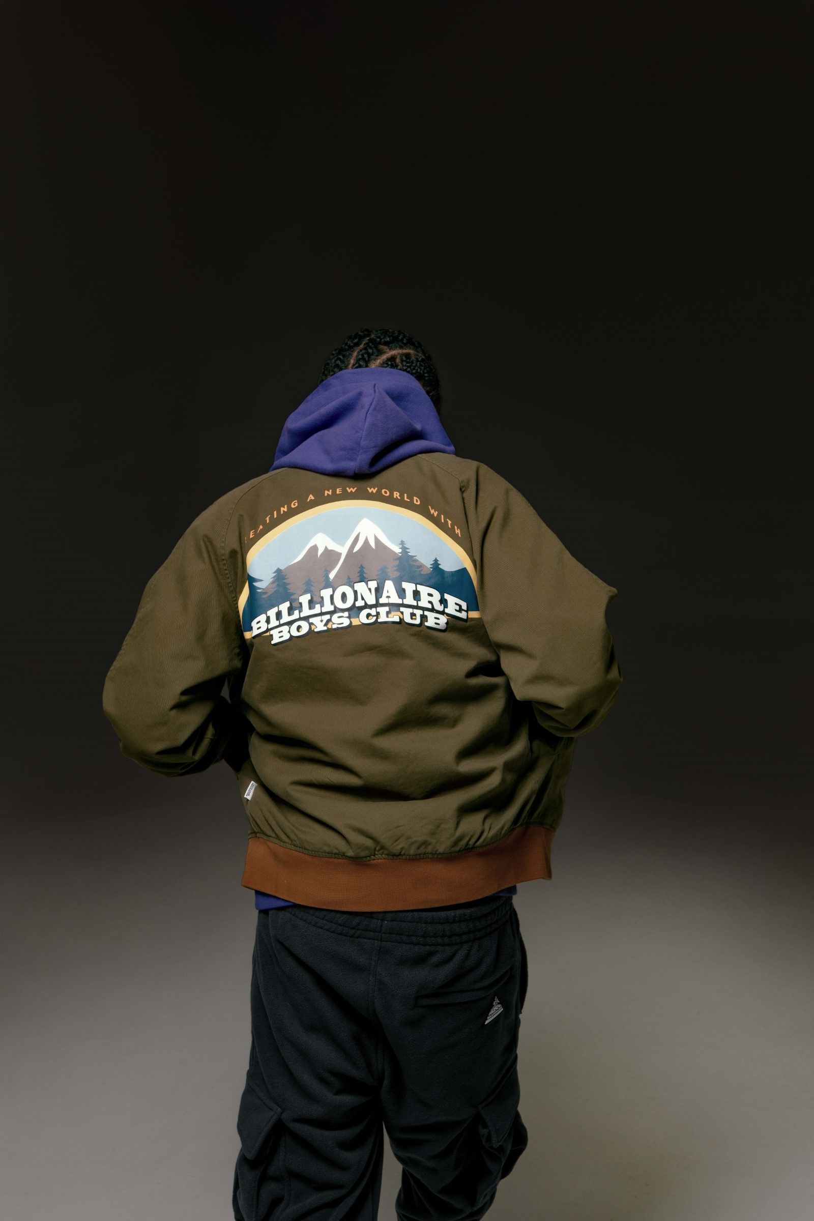 For this season the brand presented a series of pieces in new colorways designed for the spring period, including a green technical parka with a removable purple hood and robot head on the back and a black suede tracksuit with brindle bands on arms and legs. Also within the drop, Billionaire Boys Club presented two new versions of the classic Astro Varsity Jacket in electric blue and navy blue while, in addition to t-shirts and outwear, a series of graphic hoodies with arched logo and fleece pants are part of the collection.