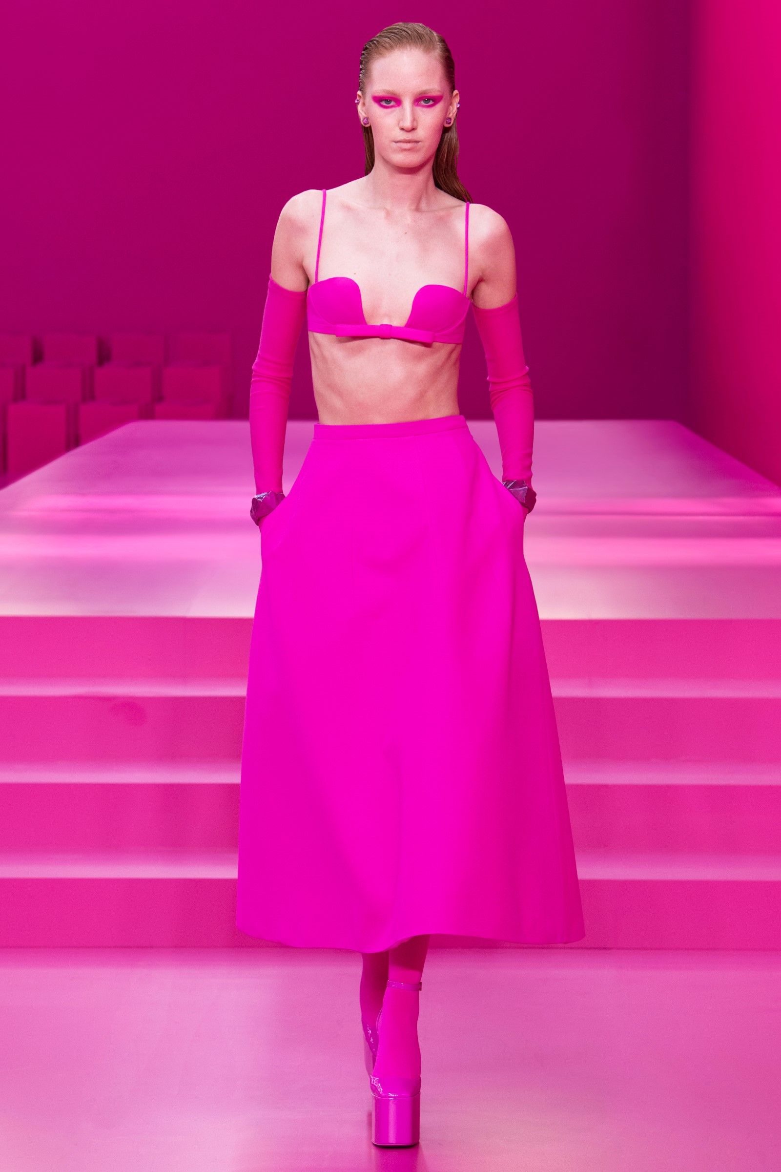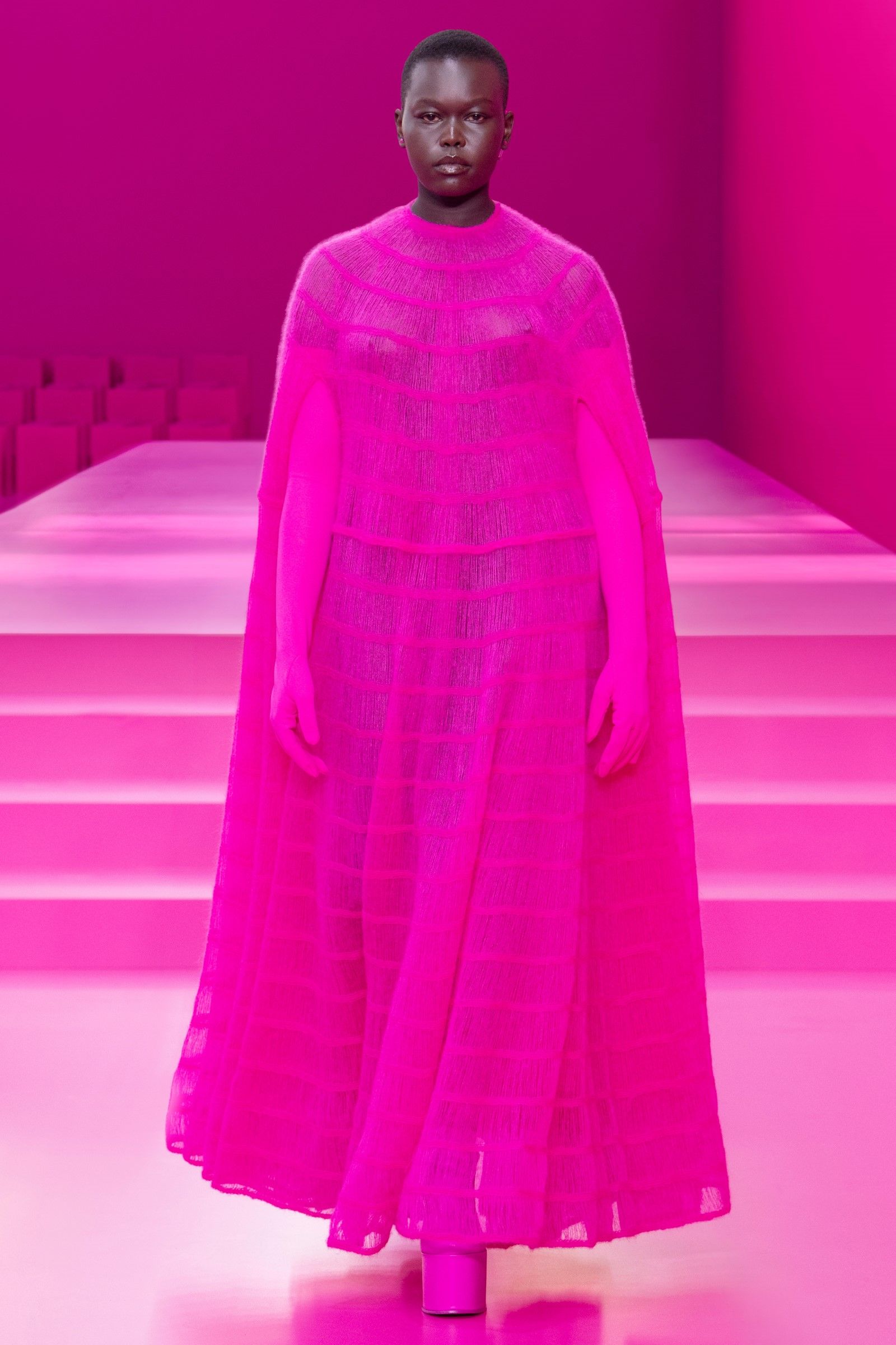 Parisian shows tend to be spectacular in their variety and opulence. Pierpaolo Piccioli, however, decided that this year the variety was already too much: so Valentino's show became a giant block of hot pink color, with a superb collection that remixed the same shade in an infinite number of different ways, enhancing the materials and construction of the garments.