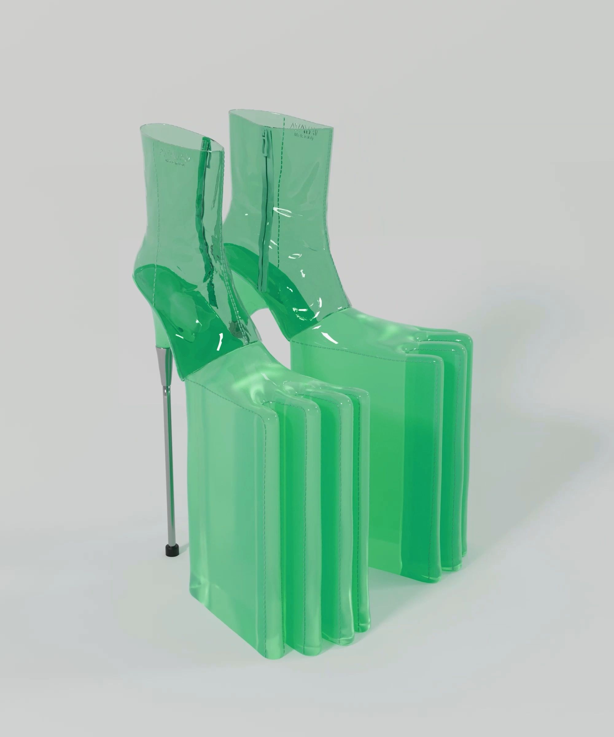 Under the creative guidance of Beate Karlsson, a Stockholm native born in 1995 and educated at Parsons School of Design, Avavav has revolutionised the aesthetic canons of fashion with Bloody Feet, a cross between a reproduction of some bird's feet and a 70s horror aesthetic or simply a cartoon version of Margiela's Tabi. So it's no surprise that it is thanks to the brand's flagship item, worn by global stars such as Doja Cat, Ezra Miller and Rick Owens, that Avavav presents its first digital collection extending the brand's imagery into the Metaverse, collaborating with artist Cailin Russo who posed as an avatar for the collection.