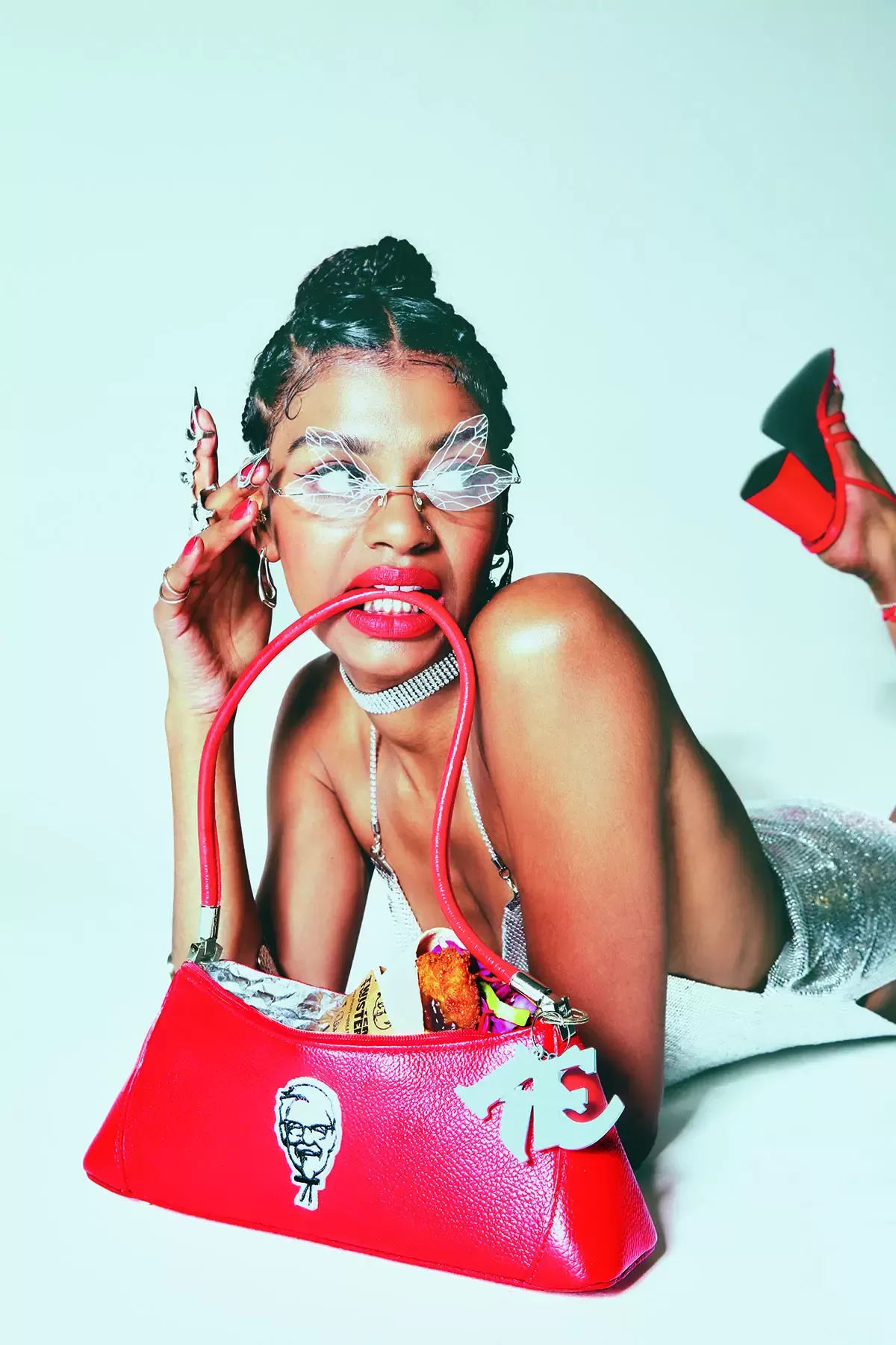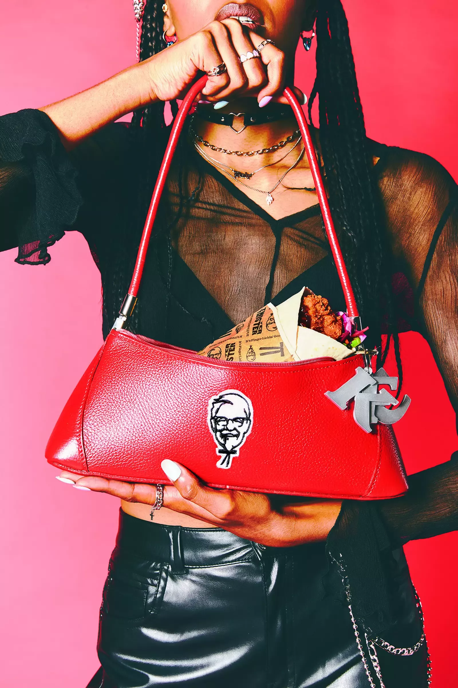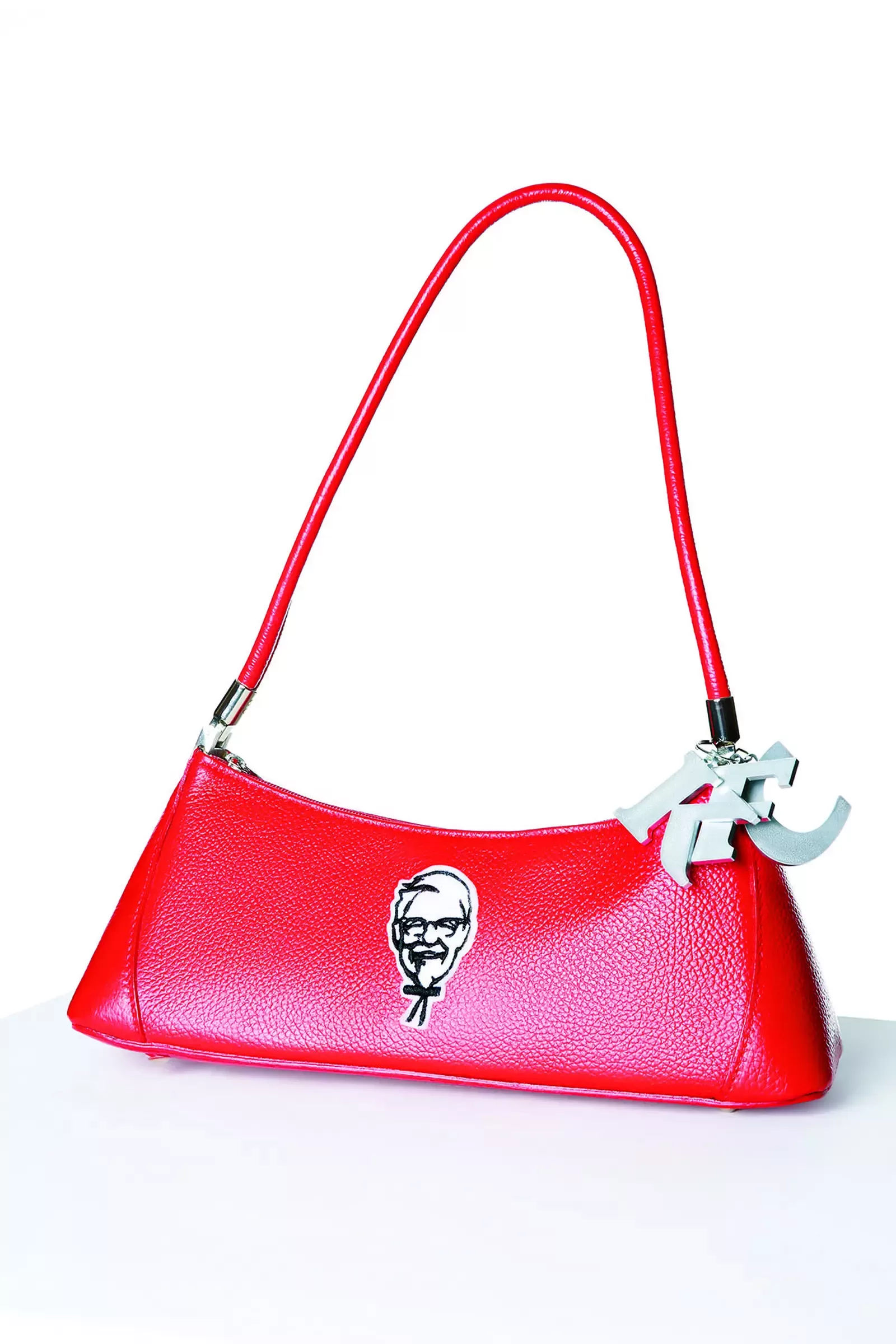 The Y2K aesthetic fever has so disrupted the world of fashion that it is gradually affecting every area of our lives, from cubbing to technology to fast food. The latest 0's style gimmick involves one of America's best-loved chains, KFC, which has released an exceptional lunch box to celebrate the launch of its new £1.98 Twister Wrap. The 'Wrapuette' is an oblong silhouette baguette in the signature bright red shade, which even boasts the face of Colonel Sanders and charms bearing the letters of KFC.