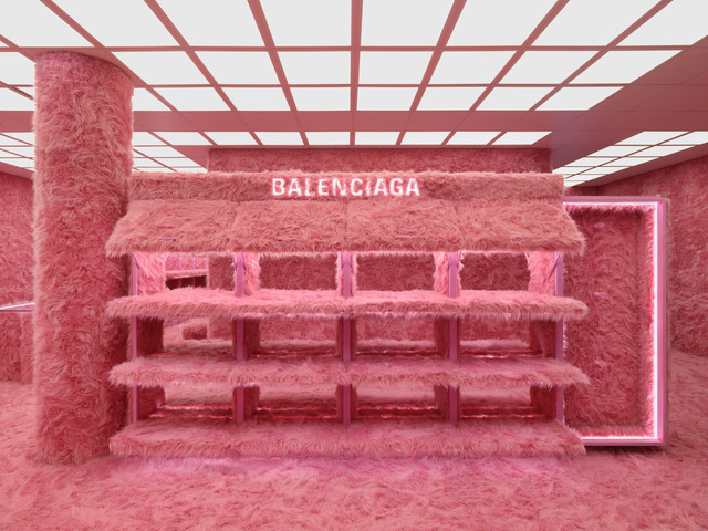 Among the brands that have been able to build a defined and peculiar imagery around themselves, also through hyperphysical stores, the undisputed leaders are Jacquemus and Balenciaga, not by chance the favourite brands of Gen Z. From Le Bleu, the pop-up that opened this week at Selfridges in London, where Simon Porte Jacquemus has reinvented his personal bathroom, transforming it into an experiential point of sale, to the monochrome shops in Milan and Paris - one in white, the other in pink - both of which have gone viral on social media, and the 24-hour bag vending machine on Oxford Street. "It's not just about buying" - Jacquemus commented in his Instagram story - "It's also an experience, a concept. The idea is to break boundaries in the world of luxury. We want you to feel welcome and have a great experience, whatever you do inside. You can even walk in and take a photo. This is Jacquemus." For Balenciaga, meanwhile, the pop-ups opened for the launch of Le Cagole feature K-Pop-style pink fur interiors, while the permanent stores are increasingly taking on the appearance of post-apocalyptic brutal art installations, as in the case of the most recent London shop.