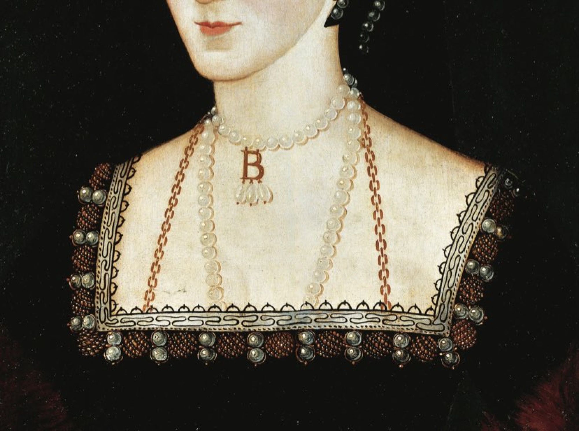The idea we have of Henry VIII's second wife derives largely from a 16th century portrait hanging in Room 1 of the National Portrait Gallery in London, in which a young woman with a pale complexion wears an embroidered bodice and a considerable amount of jewellery, including the infamous three-pearl necklace and 'B' pendant. The story of that girl, from her tragic death to accusations of incest, became mainstream thanks to the film The Other Boleyn Girl, in which the English monarch is played by Natalie Portman and in which the incriminated pendant obviously appears. Probably the inspiration behind Balenciaga's jewel, which from SS19 onwards has become an iconic element of the brand's necklaces, bracelets and earrings, transforming, in a process of resemantization, the B of Boleyn into the Balenciaga B, and this is how, since the 16th century, the item has become one of the most desired and purchased pieces of contemporary jewellery. Although Henry VIII tried to erase her from history, first beheading her and then destroying all her portraits, the legend of Anne Boleyn lives on, as does the mystery of her necklace, which disappeared into thin air after her death. No one really knows what happened to it, whether it was bequeathed to Elizabeth I or whether it was destroyed in Henry VIII's clumsy attempt to erase her from history.