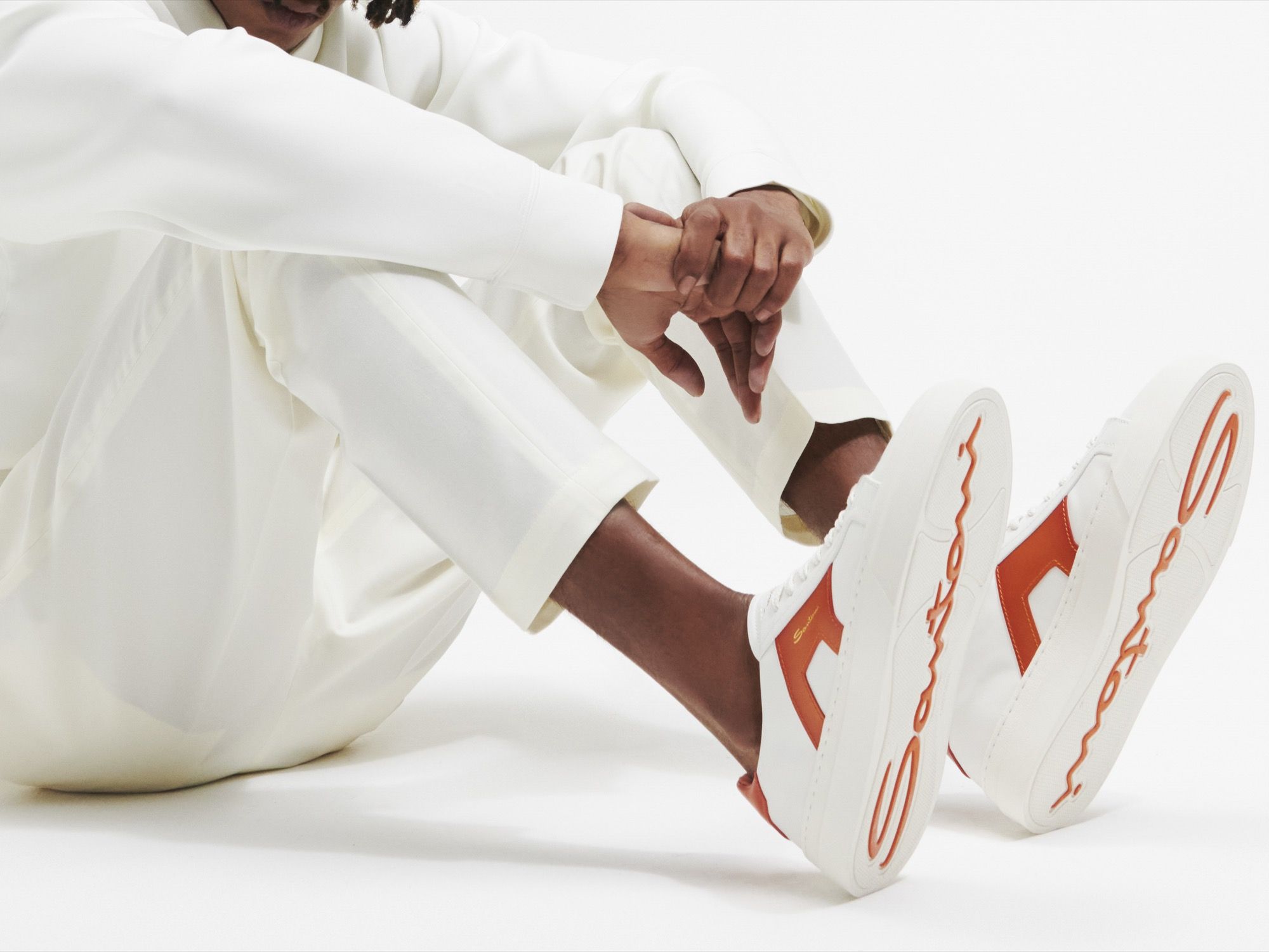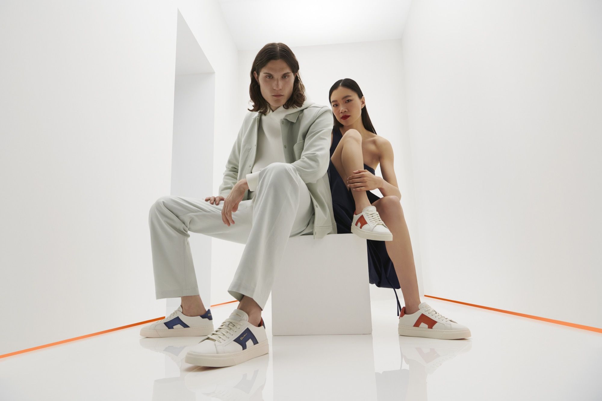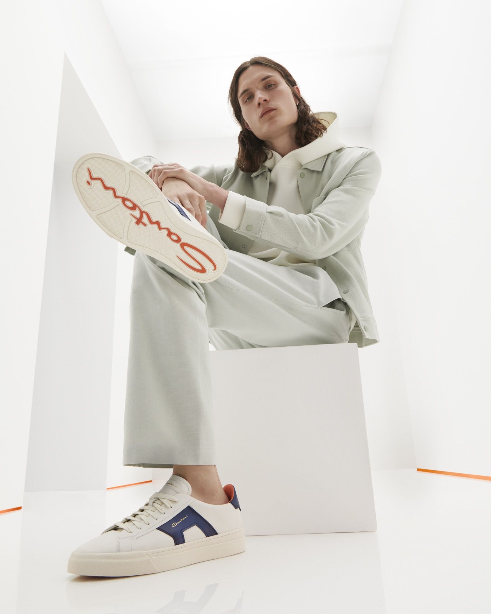 The upper, on the other hand, is made of soft calfskin in a pure white solid color and is lit up by the vivid colors of the double buckle: in Santoni Orange and blue colors -a second drop will make the white and green variants available - the Double Buckle Sneaker is a creative experiment that merges the needs of the contemporary world with the historical heritage of the Italian maison. Finally, the solid rubber sole ensures a more comfortable fit without having to give up one's style in moments of leisure. Style that has returned to Santoni's heritage an unmistakable aesthetic capable of perfectly combining craftsmanship know-how, creativity and innovation. A new attitude to luxury where elegance becomes relaxed, yielding to the more casual atmospheres of leisurewear.