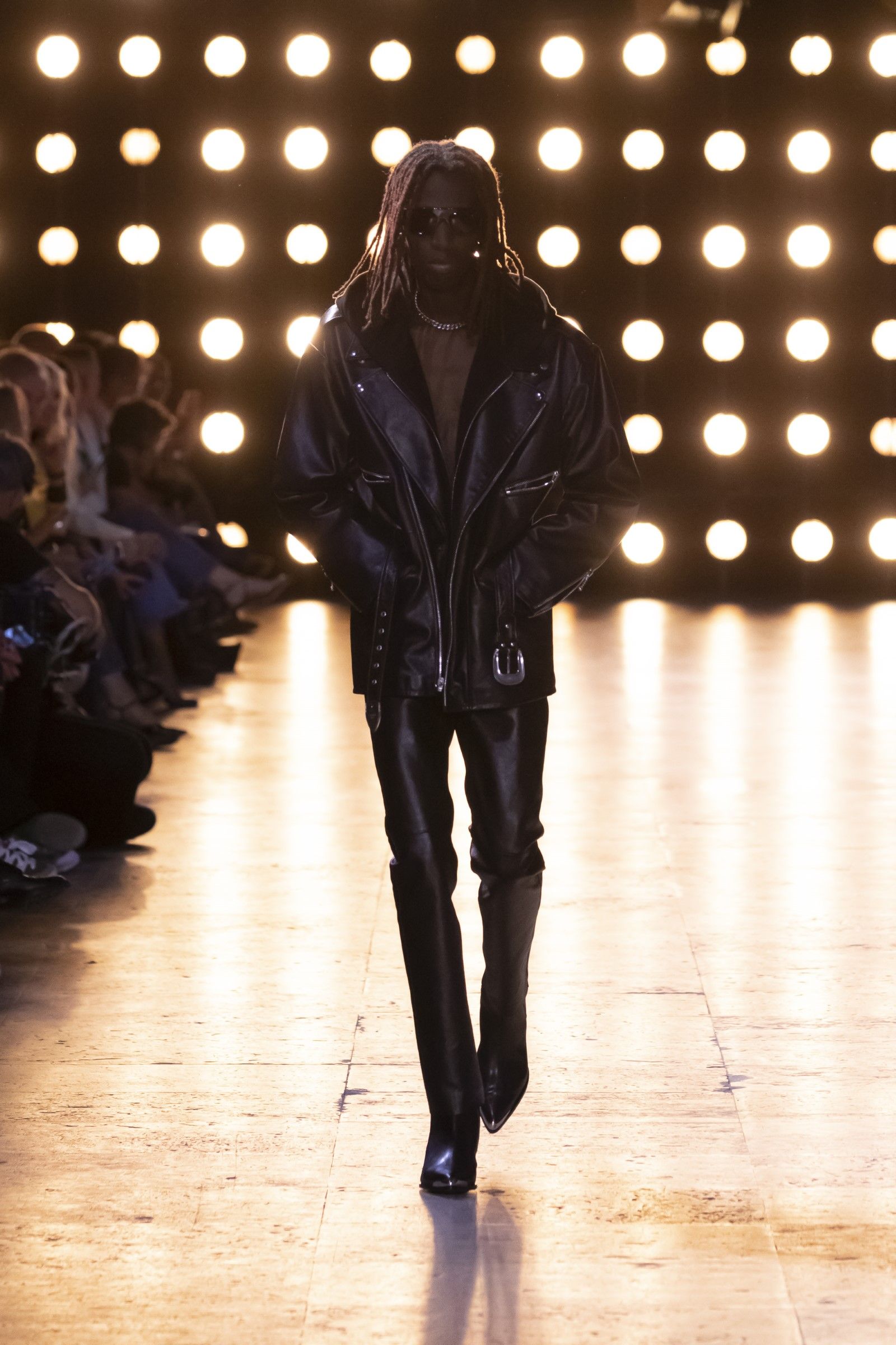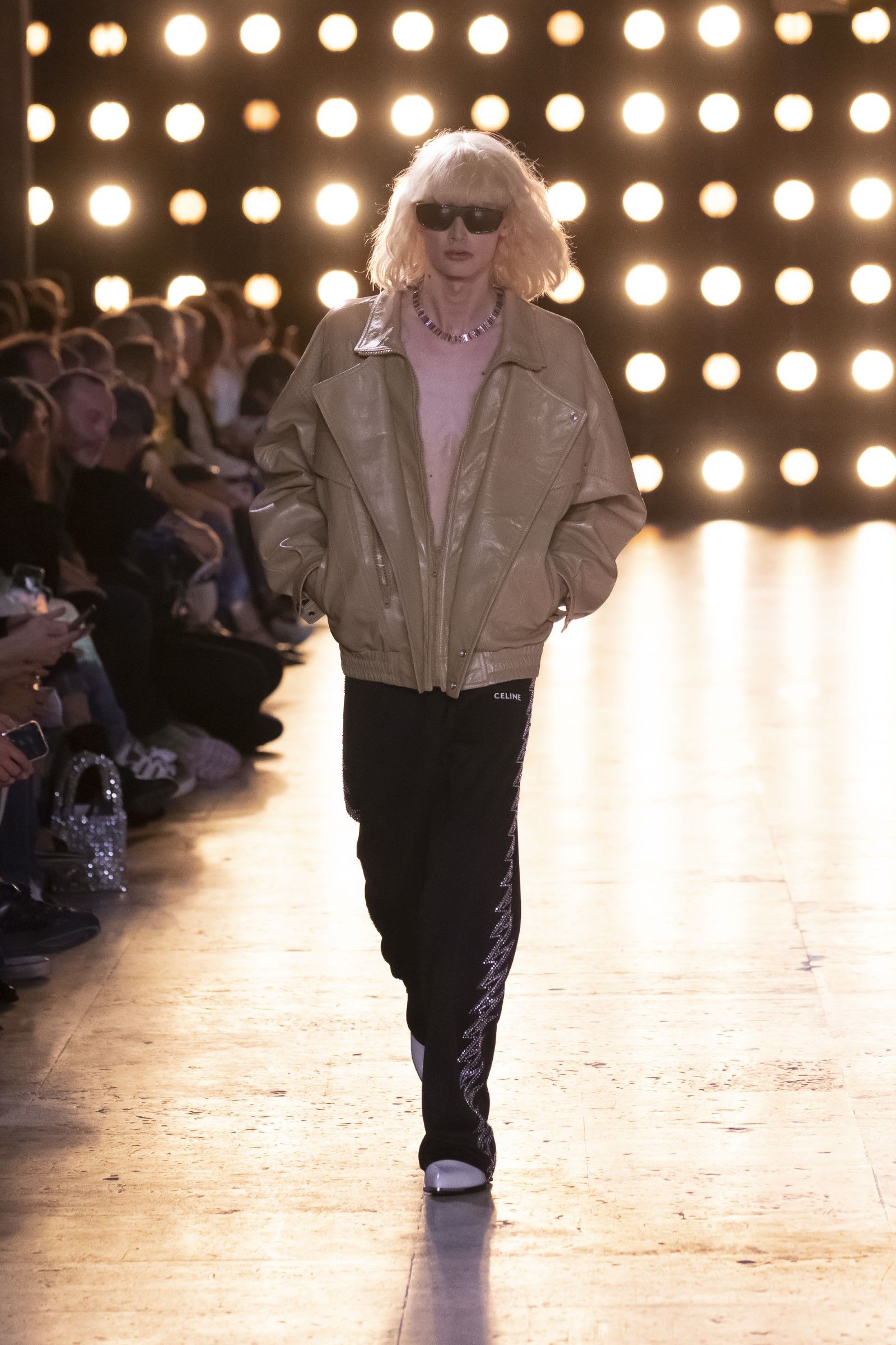 Yesterday at the Palais de Tokyo was Celine's 15th show in the Hedi Slimane era. It was a return to physical shows for the brand, which had relied on digital fashion shows for the past few years, marking a series of milestones for the designer's career and for his brand. Indeed, Slimane's fans will have recognized the typical structure of the runway of the show, with the wall of lights behind the models and the flash that precedes the start of the show, but also the fact that the very Palais de Tokyo location was the same one where, 20 years ago, Slimane himself had debuted with his mythological first collection for Dior Homme in 2002. Beyond the various anniversaries, the closing night of Paris Fashion Week was crowned by the presence of Lisa from Blackpink and Kim Tae-hyung, absolute stars of K-Pop who drew a huge, adoring crowd in front of the Palais de Tokyo who, as WWD's Miles Socha reports, were greeted from the balcony by the two singers as if they were at a royal parade. Along with Louis Vuitton's show, Celine's was perhaps the only one in Paris to attract such a siege of crowds - so much so that it felt like a throwback to those monumental shows of yesteryear for which crowds thronged outside the gates. That's the power of the rockstar attitude of Slimane, who entrusted this year's soundtrack to the band Gustaf defined by the brand's «the strongest emerging New York band, they’ve caught the attention of luminaries like Beck and Matt Shultz of Cage the Elephant - who had the band open for him at a secret loft party».