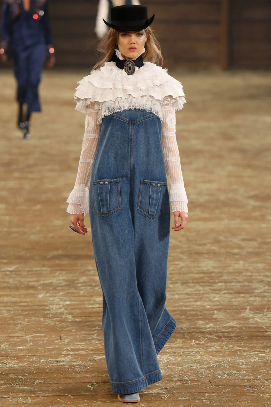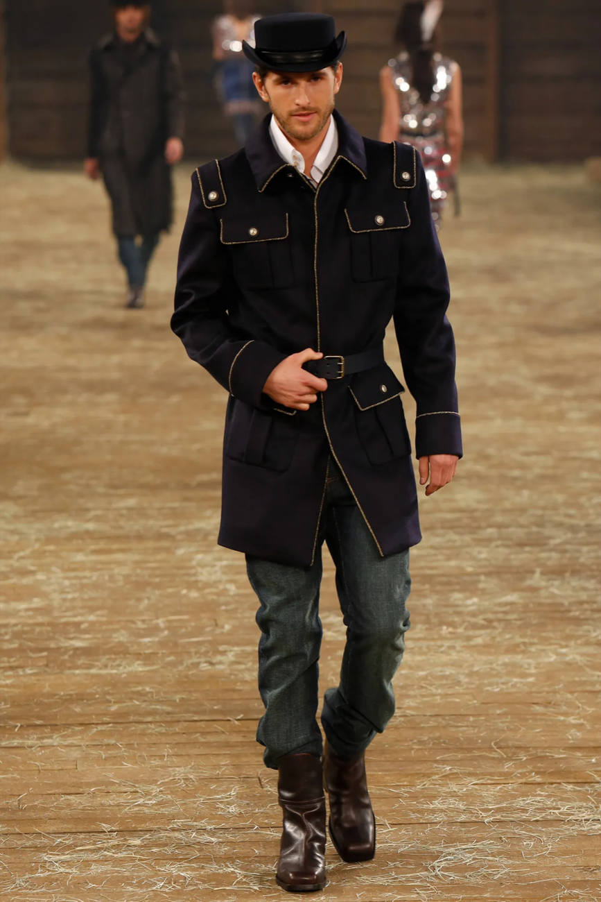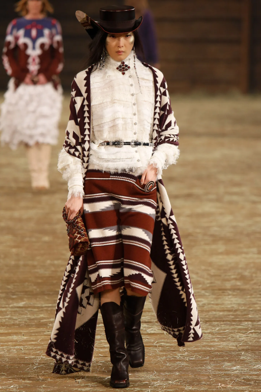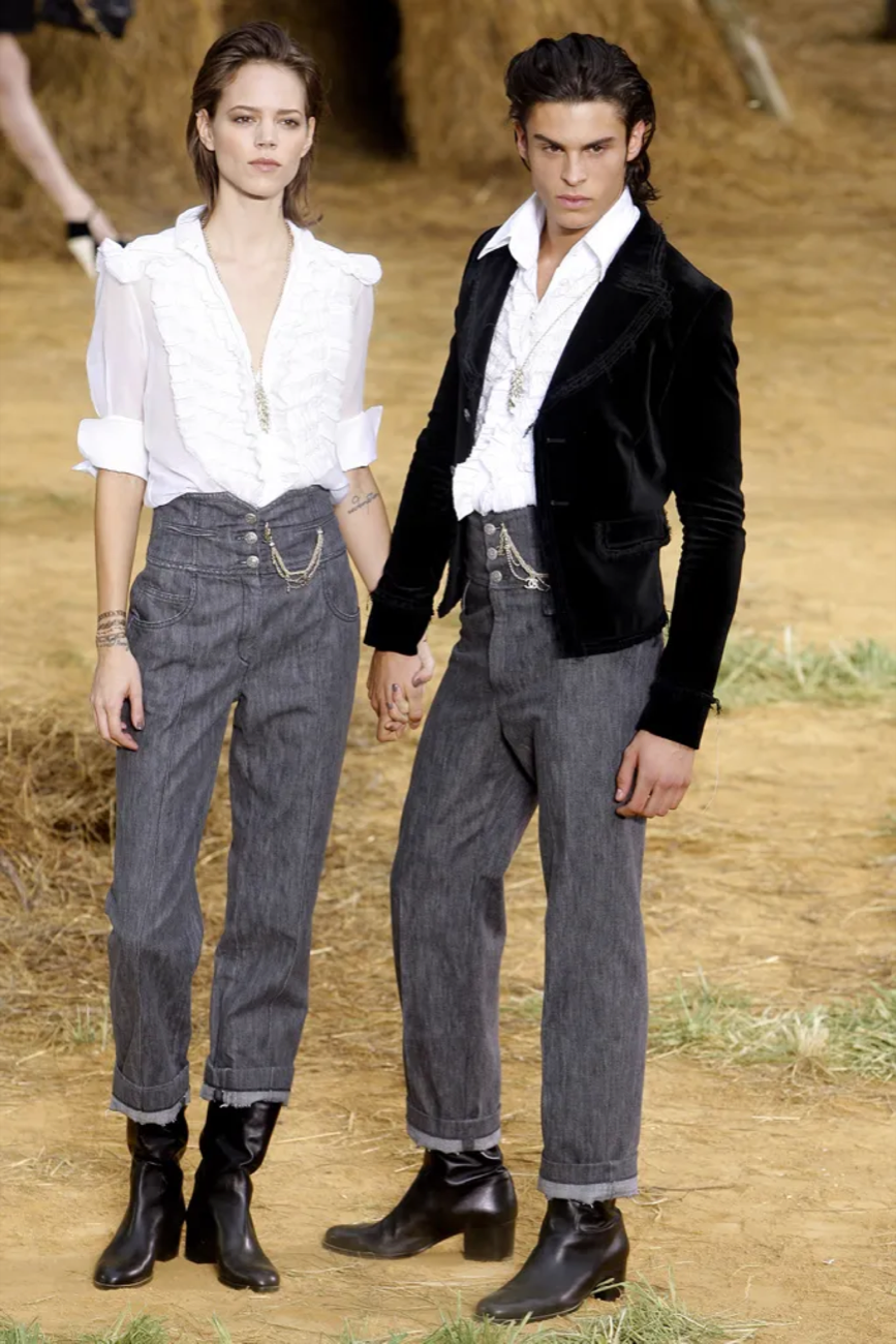 With the new century, the word "cowboy" has finally managed to earn a permanent place in the fashion world, leaving behind its various kitschy references and provocative clichés. Between Chanel's outfits inspired by House on the Prairie in the Pre-Fall 2014 fashion show, and the cowgirls "who can't do without bows" in the SS10 collection, Karl Lagerfeld had his say on the western aesthetic through jaunty and hyper feminine proposals. Inspired by California style, Hedi Slimane, on the other hand, made the cowboy one of the main suggestions for his reinvention of Saint Laurent, preferring an androgynous and sophisticated approach that overrides all gender preconceptions: it was during his tenure that the Wyatt boot was created, in which that boho-losangel style made of wide-brimmed hats, bangs and bootcut jeans was introduced.