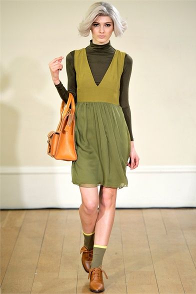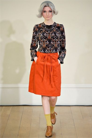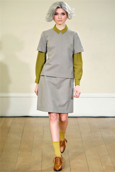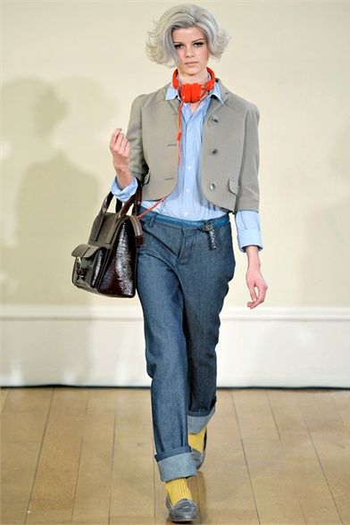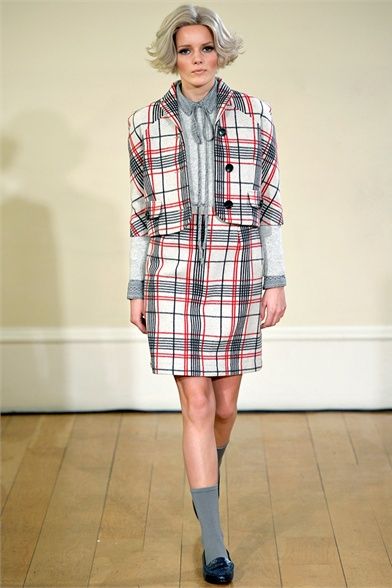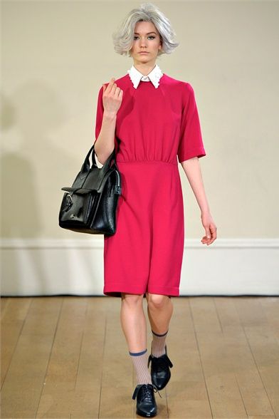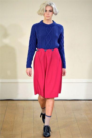 Peter Jensen is a fashion designer, of Danish birth, but English adopted. His trademarks are to be able to mix the attention for details with british irony and to give to any collections the name of a famous woman who inspired it. The last one, “Thelma”, AW 2012 collection, is a tribute to hat designer Thelma Speirs. The fashion designer defines her image “ perfectly bourgeoise ” and says: “ I know her for ages and I always consider her a chic lady ”. She, in exchange, realizes for him hats with bunny ears. Sophisticated models with silver bobs walk on runway wearing clothes with school girl style and 60s echoes. The winter line is composed of a line coats, cable knit jumpers, tartan loose fitting trousers, tomboy jeans, trench, peter pan collars, penny loafers and socks in view. The palette is made by acid green, grey, blue, lilac, orange, fuchsia, a bit of black and white. Jensen creates, in this way, a collection particular, but wearable, cool and british that every girl looks forward to dress.