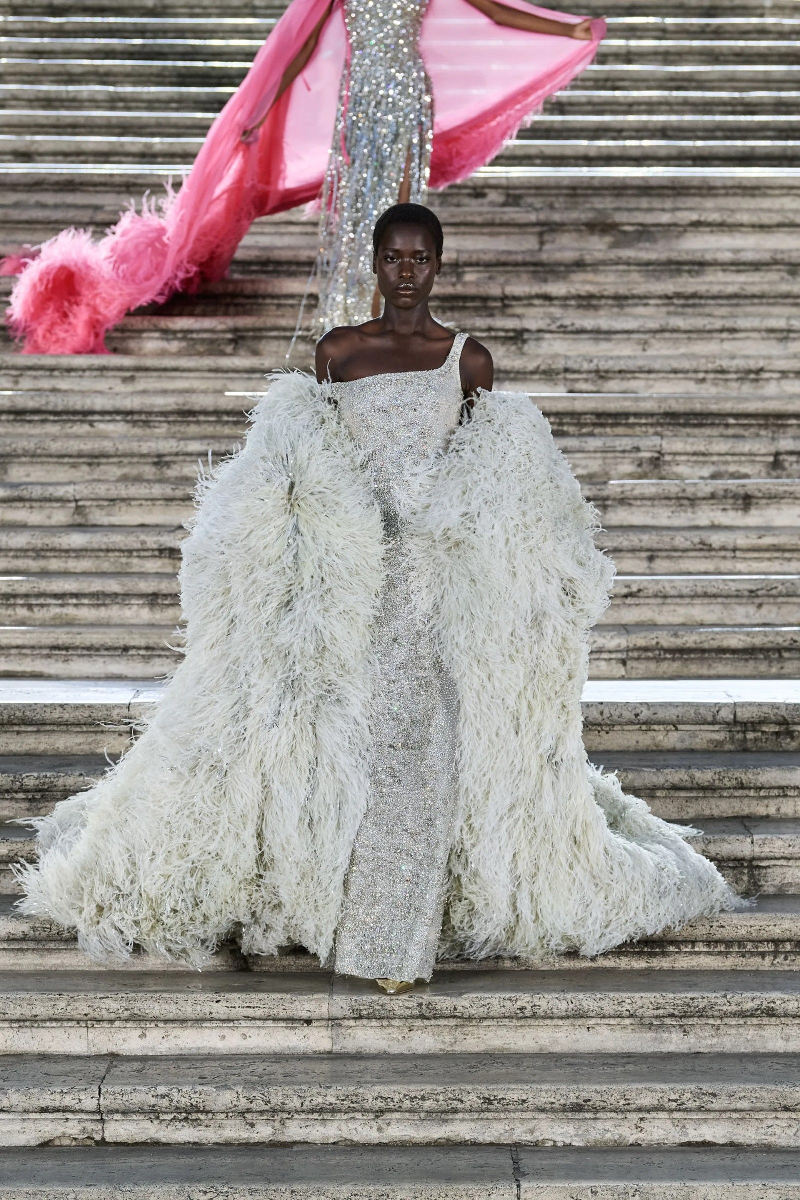 This weekend the eyes of the fashion world were on Rome and the steps of Trinità de' Monti where Valentino's show-kolossal was taking place to present the brand's FW22 Couture collection. And if at the end of the show the applause was not spared there was someone on the other side of the square who was not so happy: it was the manager of Dior's boutique at 14 Via Condotti, which corners the Spanish Steps, who on the very night of the show wrote a letter to Valentino, which was also read by WWD representatives, asking for compensation of 100,000€ to be paid in the next 15 days. The reason would lie in the fact that despite having applied for regular permits to occupy the Spanish Steps, the set-up work for the show would have blocked access to the public and side streets, preventing the public from even accessing the boutiques on the square, including Dior's.