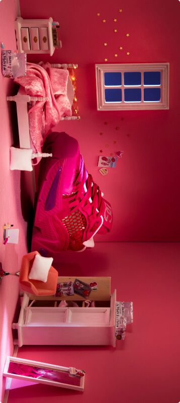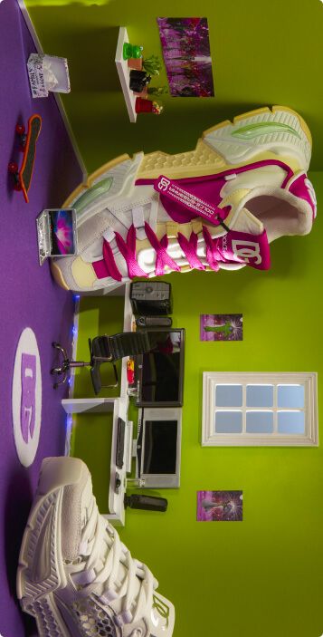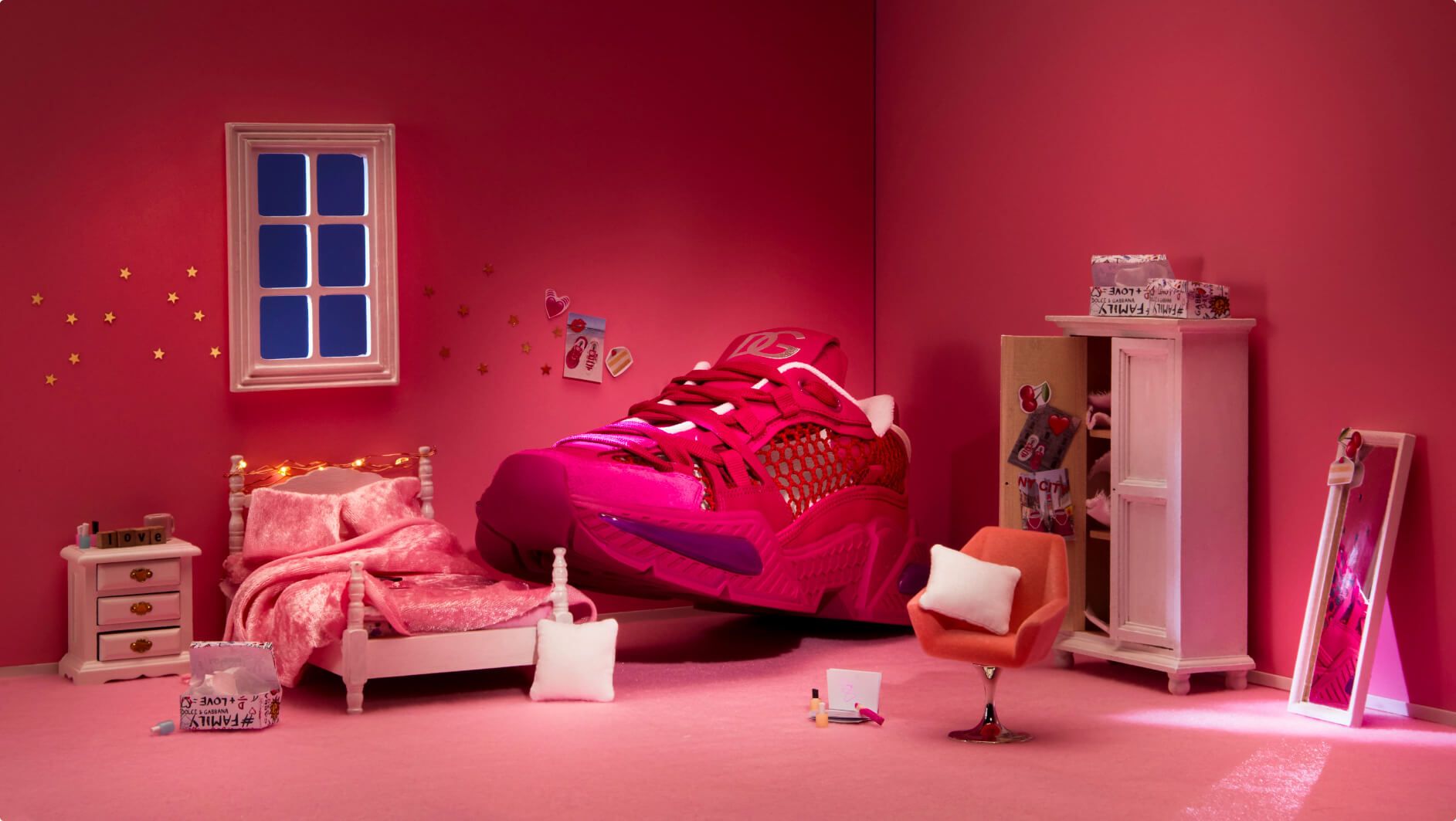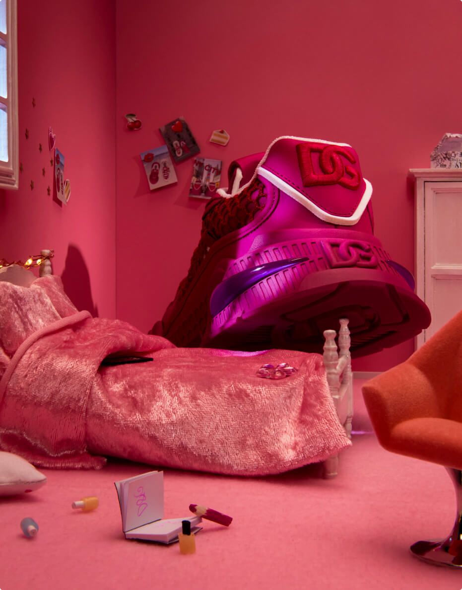 A room is never just a room, but a three-dimensional diary that tells the story of those who inhabit it through colours, decorations and objects that bear witness to a passion. Exploring this dimension is the idea behind DG Rooms, which places Dolce & Gabbana's new Airmaster trainer in the different rooms of a miniature house. Each of these rooms says something about its owner through everyday details such as a gaming computer switched on, a diary, the full shelves of a bookcase. And each of these shades of humanity finds its reflection in the different hues of the new Airmaster: from the total-white colourway to the pink one, passing through its multicoloured version. Similarly, with its aerodynamic silhouette and air bubble in the sole, the Airmaster wants to accompany its owner through all his passions and all the moments of everyday life. Wearing it is a bit like feeling at home.