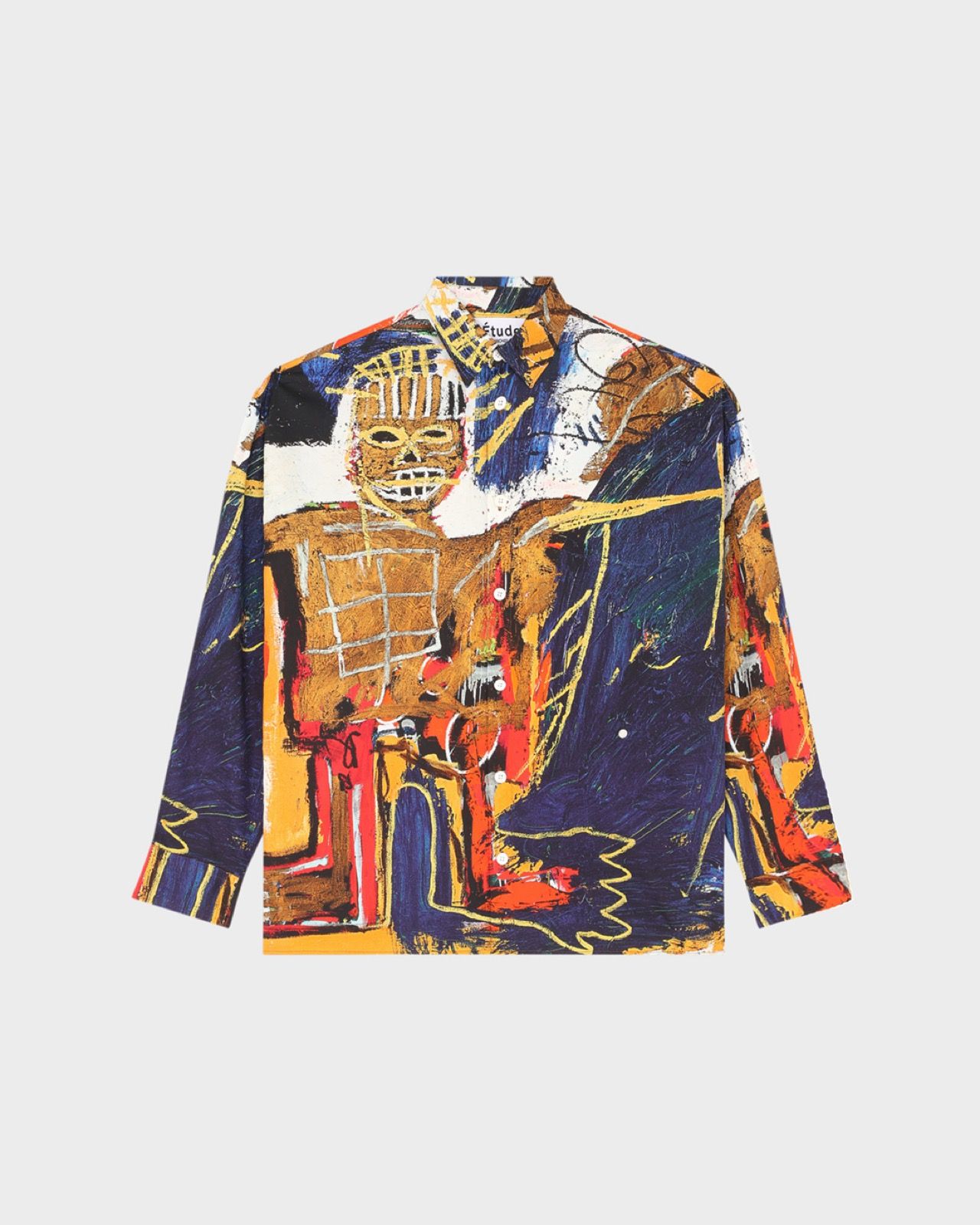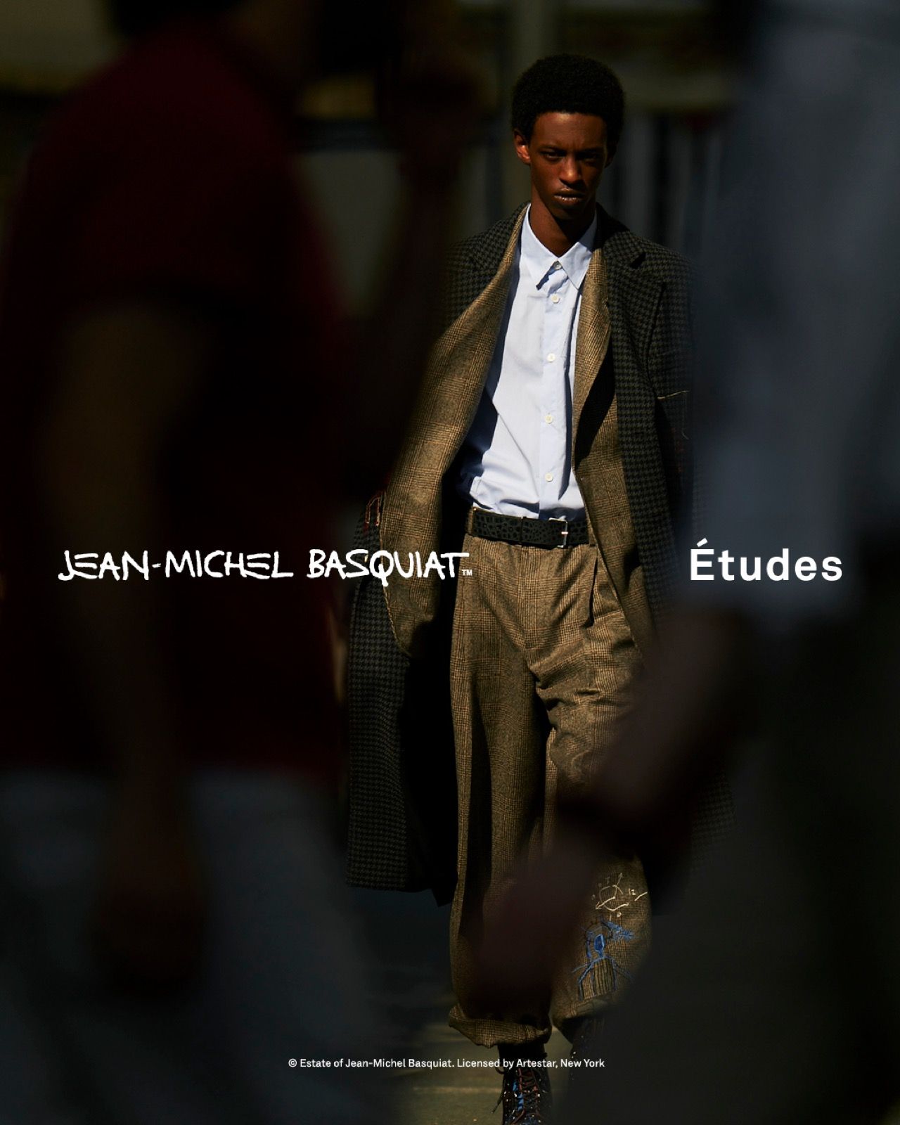 The Études X Jean-Michel Basquiat capsule marks the second chapter of the brand's N°20 collection on its 10th anniversary. After the new realism of Yves Klein, Études pays tribute to the radiant child of neo-expressionism, weaving a dialogue between the French touch and the American urban scene of the 1980s. Études continues to celebrate the ardent and experimental spirit of its quintessential heroes: if Klein's vibrant blue reflected the essence of the spring/summer season, this new autumn/winter 2022 capsule recounts the fauve hues and sense of urgency through twenty-six pieces embellished with Basquiat's works.