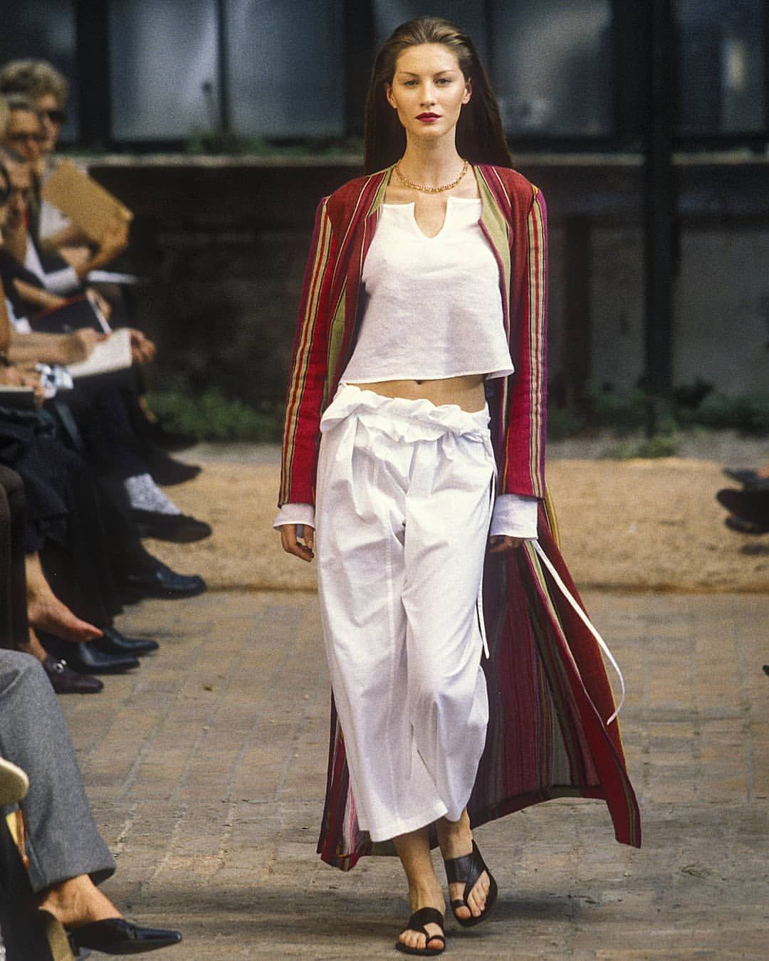 An object-symbol of Consuelo Castiglioni's aesthetic is the Fussbett sandal, designed in 2001 after a trip to Africa where the designer saw anatomical soles being made by recycling tires and straw. The original sandals actually had a flat, wide sole made of rubber and rope that made the footwear comfortable and gave the feeling of walking barefoot. Initially disliking the sandals (at the time, women's shoes were supposed to be sexy, a concept Consuelo did not particularly like), an English journalist called them «ugly shoes» although it was in the United Kingdom that Consuelo's clothes found success, with sandals becoming one of the brand's best-selling products. In 2002 came the expansion into menswear, about which, many years later, Consuelo spoke at Il Sole 24Ore: «I would not distinguish between the Marni woman and the Marni man. They belong to the same universe. Independence is the trait they share: they make personal choices, which may appear eccentric, and they have a certain sense of humor. Age, on the other hand, is an irrelevant trait».