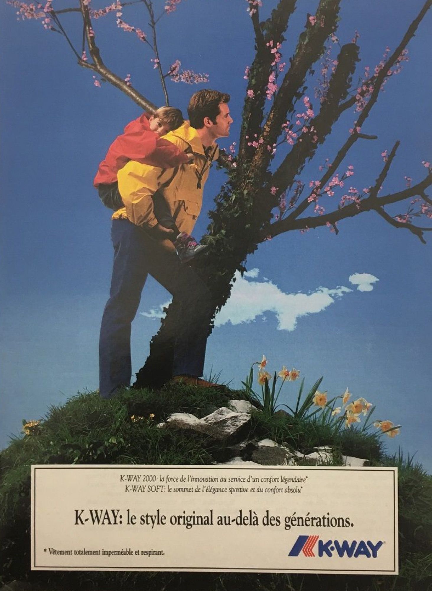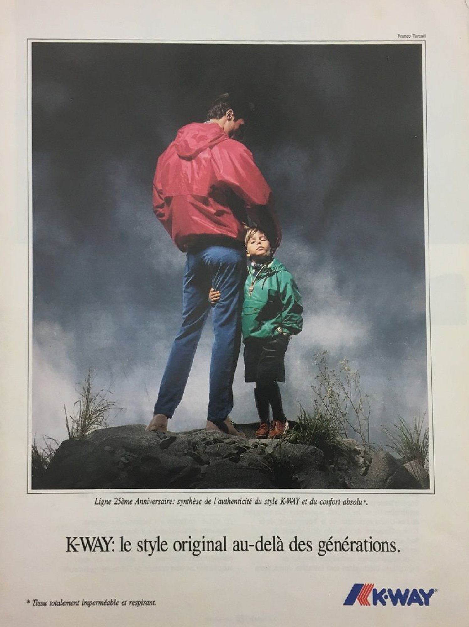 K-Way thus became the name of a brand and an item that has entered in French and Italian dictionaries to denote an iconic garment. The publicist Jean Castaigne wanted an American name, while the founder preferred to stick with something practical and functional: en case de, in the case of. The compromise was found in the K, reminiscent of "cas" and "way”, with a clear American twist. In the 1970s and 1980s, the K-Way spread and represented the success of a garment that became distinctive for its bright colors, technical fabrics, pockets, front zipper, and ubiquitous hood. During these years, the brand also entered into collaborations with several ski teams. In 1992 the brand was bought by Pirelli, then in '95, it passed to the merchant bank So. PA.F. and later to Milan's Multimodal Network. Finally, in 2004, it became part of the Turin group BasicNet, which was responsible for the relaunch of the brand.