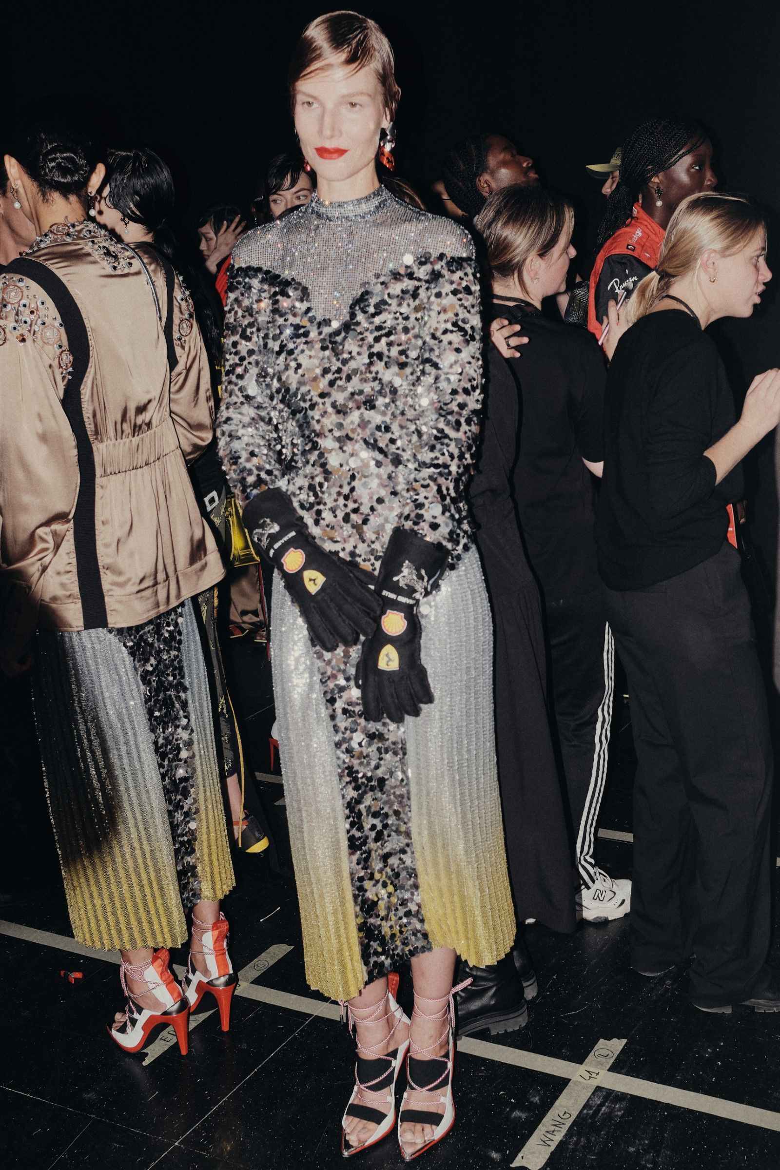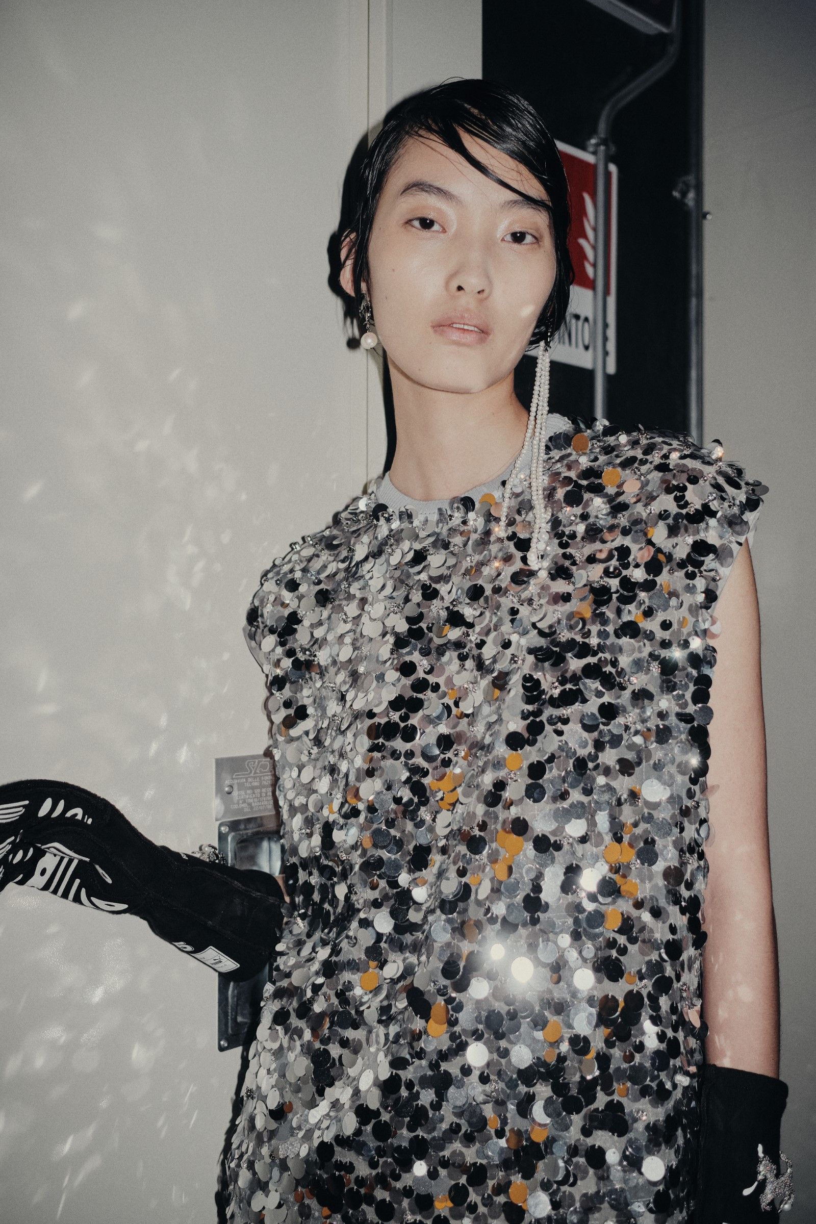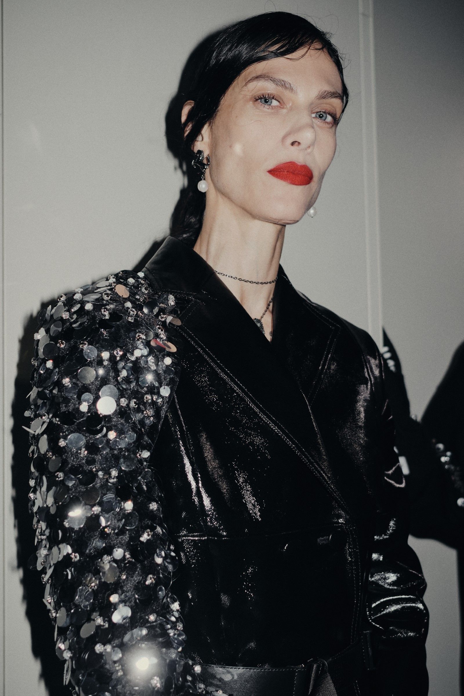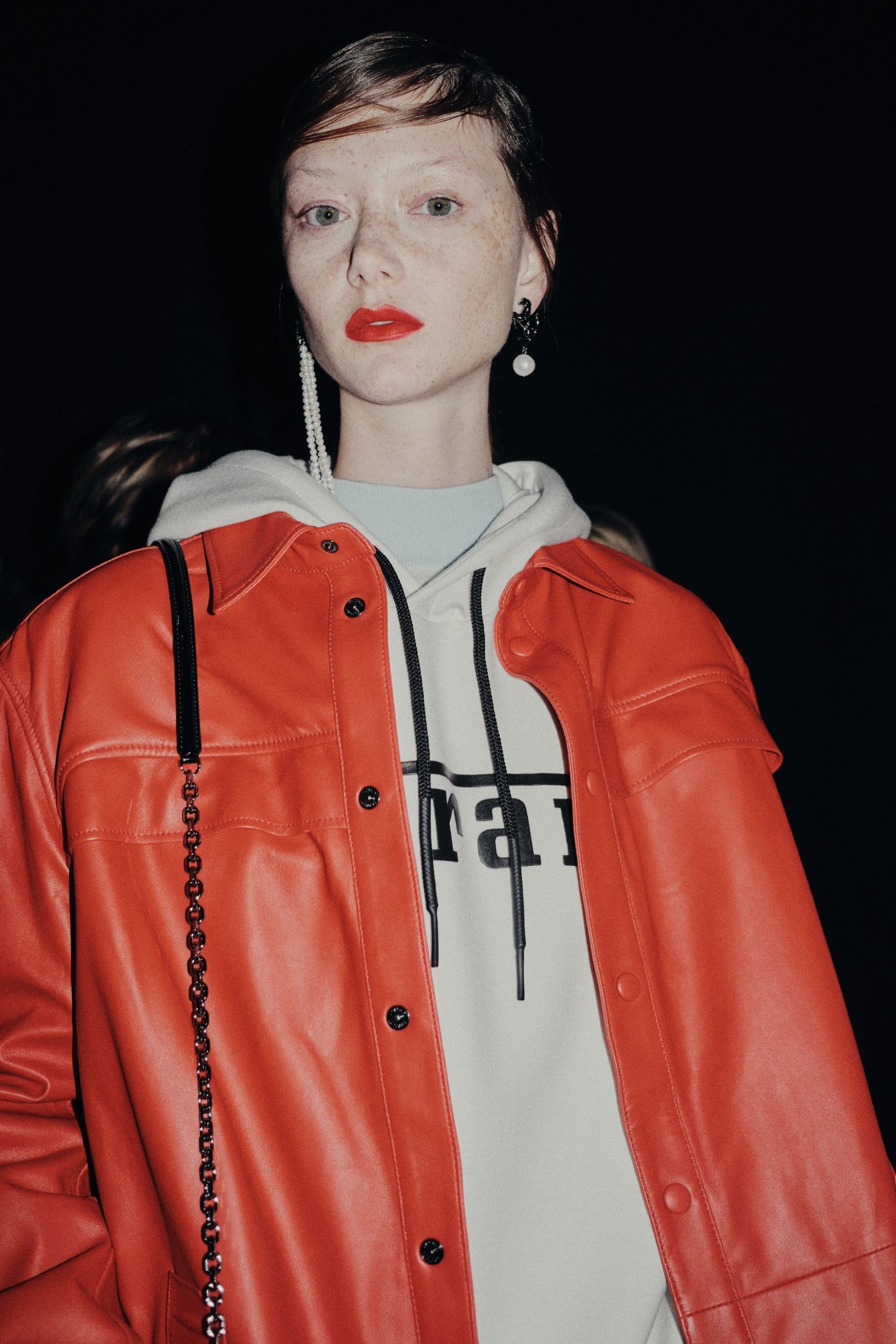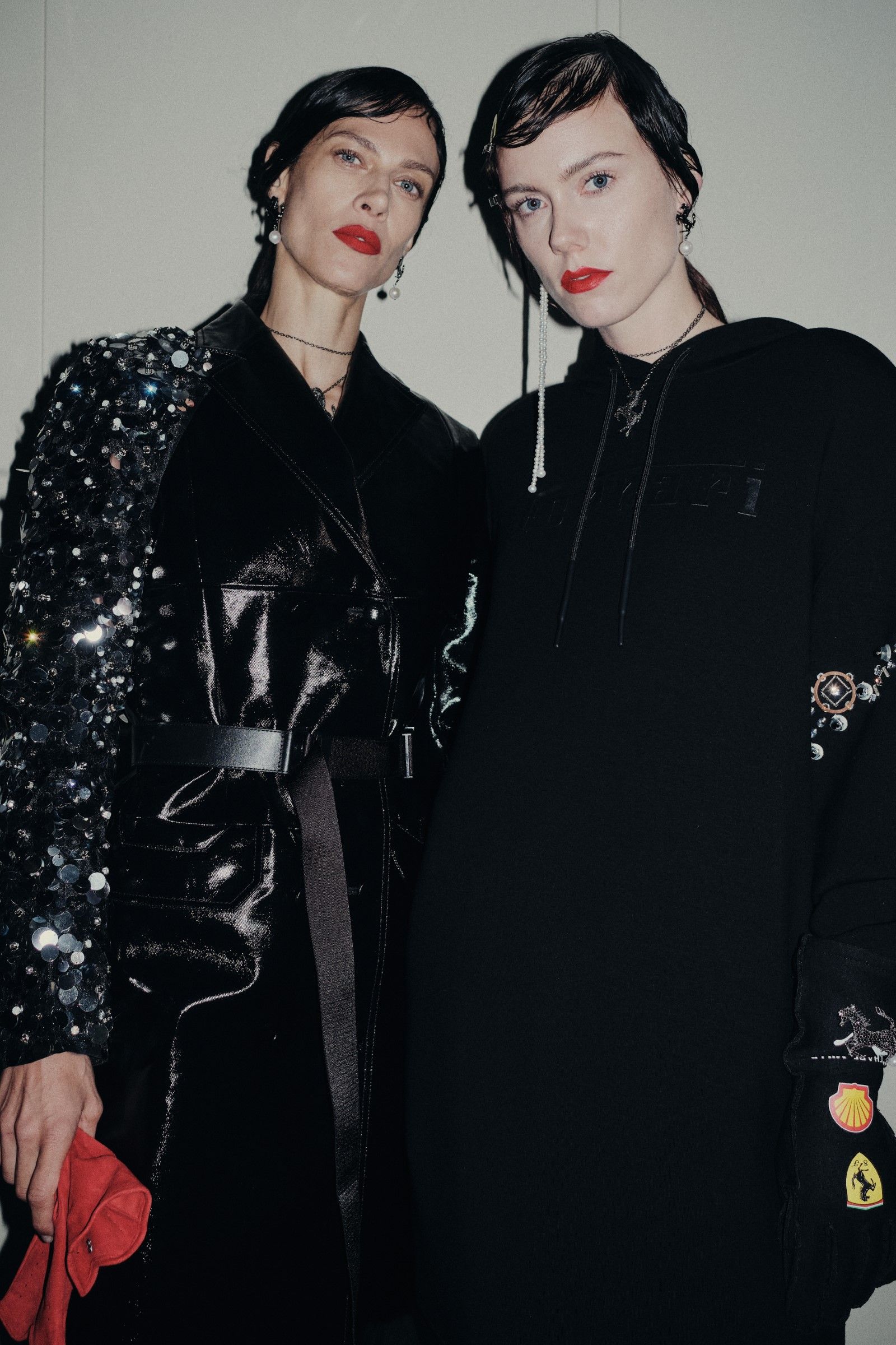 Precisely in homage to Los Angeles, the camouflage motif so dear to Iannone, which had previously been reinterpreted through remixed prints of the Ferrari Horse, is now replaced by a motif of palm leaves, the main connotation of the California landscape, as well as by the idea of light (Southern California's is one of the best in the world according to Iannone) that was translated in terms of the collection in a series of dresses that appeared on the finale to which the photos do not do justice: it was an incredibly bright fabric in which sequins were joined by crystal-covered bolts and minute metal parts of cars. «There is no tailoring, there is no sportswear, there is no label. It is a collection in which the wardrobe is perfectly contaminated and responds to today's look, to our way of approaching fashion-which is not a sectorial fashion, not manifested in occasions of use, but a fashion where everything is mixed», Iannone explains. In other looks in the collection, denim (one of the collection's four core material elements, in addition to cotton, leather, and silk) had been finished and polished by employing a sustainable ozone treatment that only one manufactory in all of Italy could provide, while some of the small leather goods were made from excess leather scraps left over from car seat processing.