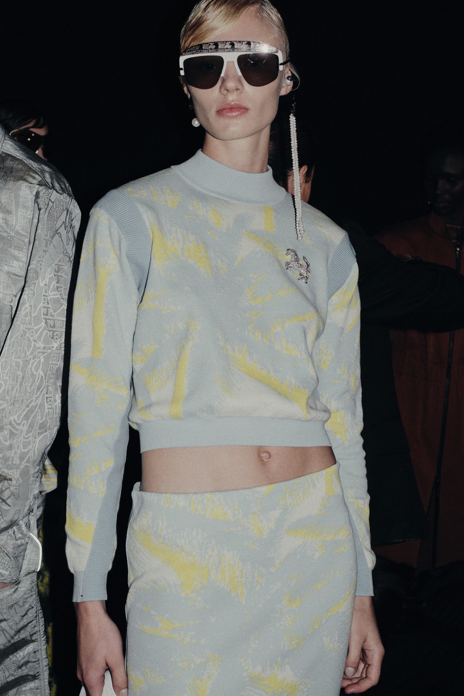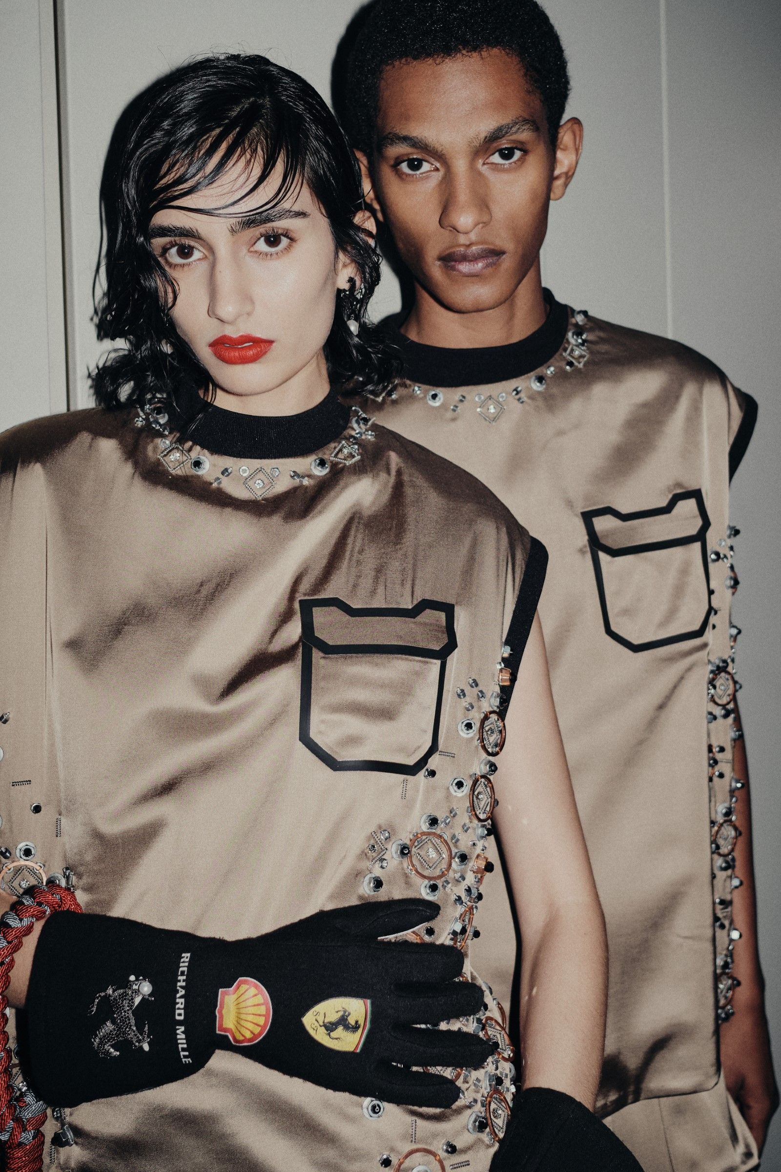 The technological element, compared to previous seasons, is toned down both in accordance with the thematic evolution of the collection and Iannone's strict design philosophy that clarifies: «We cannot shy away from introducing technology but under two conditions: the first is that technology is not an abuse of the purpose of dress; the second is to act on sustainability with a radical approach». In short, a philosophy that, while considering the technological element as one of the distinctive parts of Ferrari's identity, does not want to turn that same heritage into an easy gimmick. In other words: «If technology undermines the portability and immediacy of the garment, it becomes a sterile exercise».