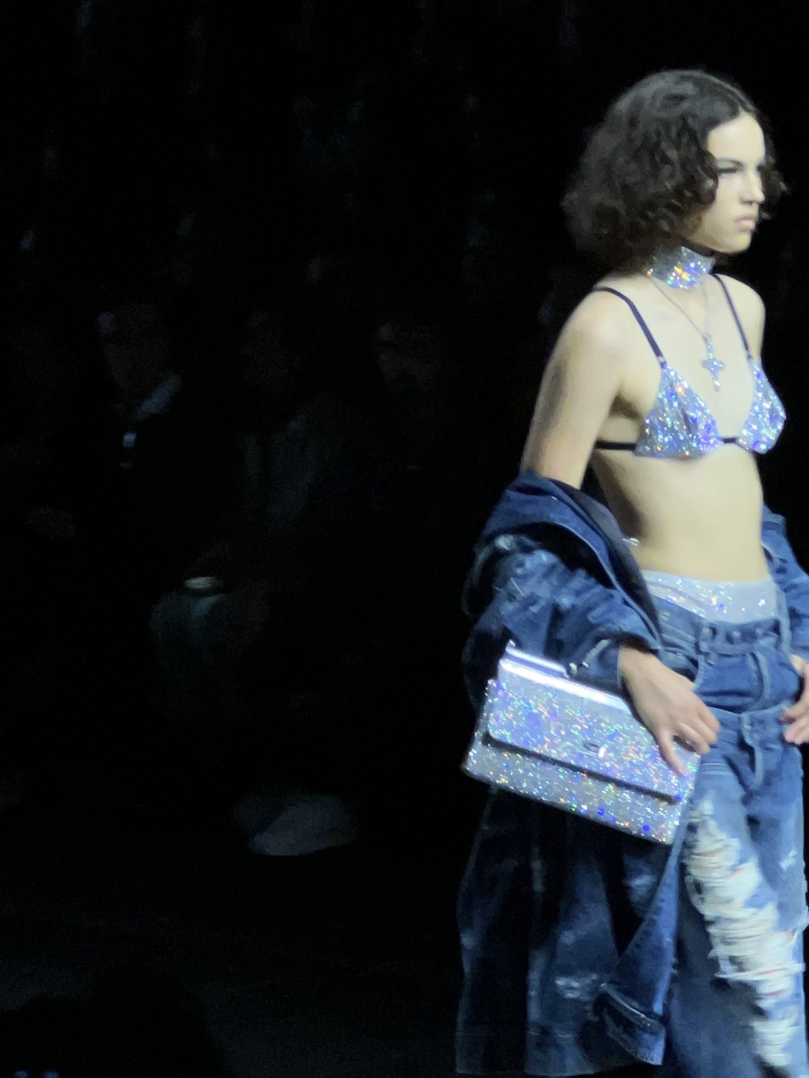 Different from the others was the Diesel show, which gave me butterflies in my stomach. Not so much because of Glenn Martens' brilliance, which touches the eyes but even more the brain, but because in a fashion week covered in the dust of old fashion, Diesel decided to open doors and windows and let the air in. Young people, students, fans-everyone was seated in the five thousand seats of that stadium, the show was not a pleasure of a few but a beauty that was offered to the community - a word that, in its English guise, is often abused and yet remains my favorite. During the Diesel show when Glenn Martens came out to greet the audience, the applause and enthusiasm of those in attendance filled me with a feeling that, days later, I recognize as joy. It made me think that truly what I had before my eyes was something powerful and capable of uniting, influencing, creating meaning and belonging. Diesel's are all cool kids, whether they are in the brand's boutique in New York or at the exit of the show in Milan, mixed with rappers, editors, celebrities.
