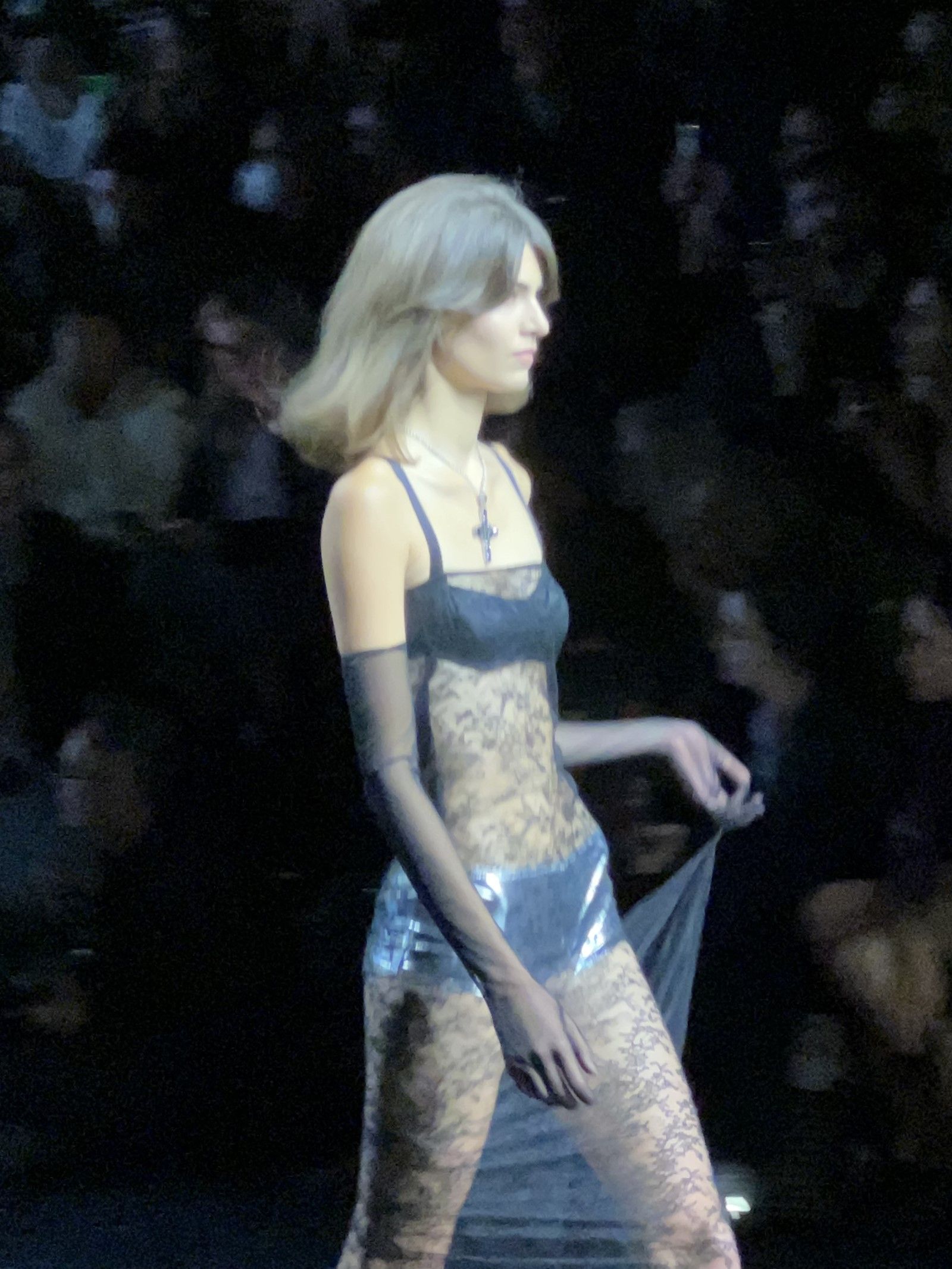 There are so many beautiful stories that are told during fashion weeks. There are the worlds created by brands and creative directors into which you are thrown. In some you feel at ease, a little at home - like in the wonderful darkness of Ann Demeulemeester, where I think the few people invited not to wear a total black look must have suffered terribly from how conspicuous they looked. The same goes for the muffled, liquefied high school in which Ottolinger's girls run too fast for those who cannot understand them. At other times you find yourself immersed in distant worlds, finding what you wish you could someday be, or what you thought you could never like and instead, pleasantly, surprise you. Still other times you simply stay silent and observe once again what Miuccia Prada has come up with and how Lotta Volkova has assembled those looks so subtly anarchic that will fill closets and magazines next season. Still other times you secretly drop a tear under your black sunglasses because there a bit against the light is Kim Kardashian, appearing between the curtains like a vision plucked from the Instagram feed and turned into flesh-a vision that marks for better or worse another piece of contemporary pop culture. And you are there, you are living it, you are breathing the same air as these creatures suddenly so close.