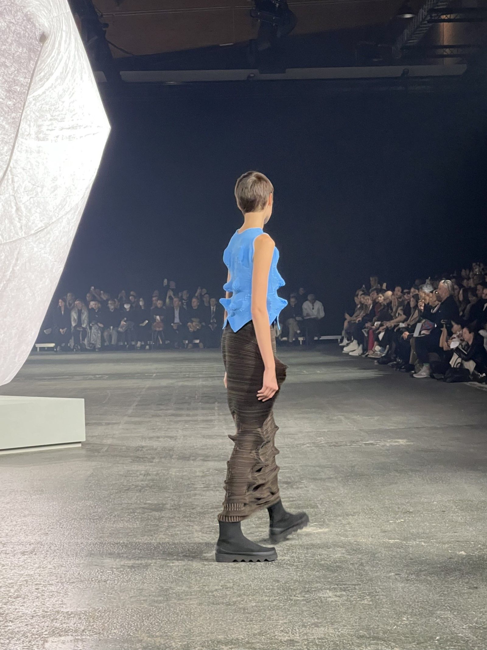 I wish every fashion week was just art poetry and music, kind of like the Issey Miyake show in Paris was, with its dancers, Koko Nakano's piano notes, the elegance of those movements. But maybe I'm just sensitive to beauty and I like the thought of being moved during shows, while we still live in a world of brutes who get up and run away even before the creative director comes out to say hello. But it's a fast world and you risk missing the next show.
