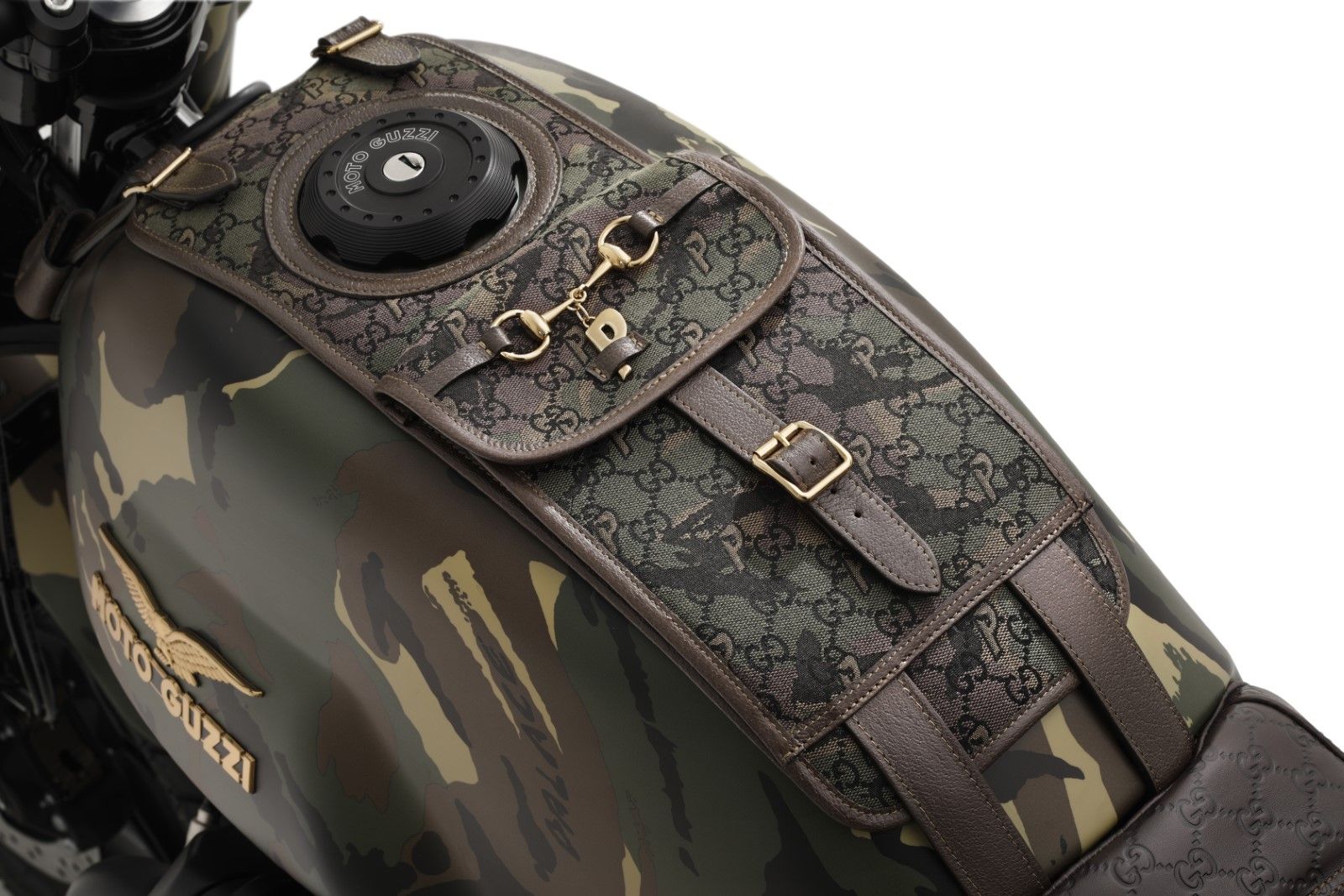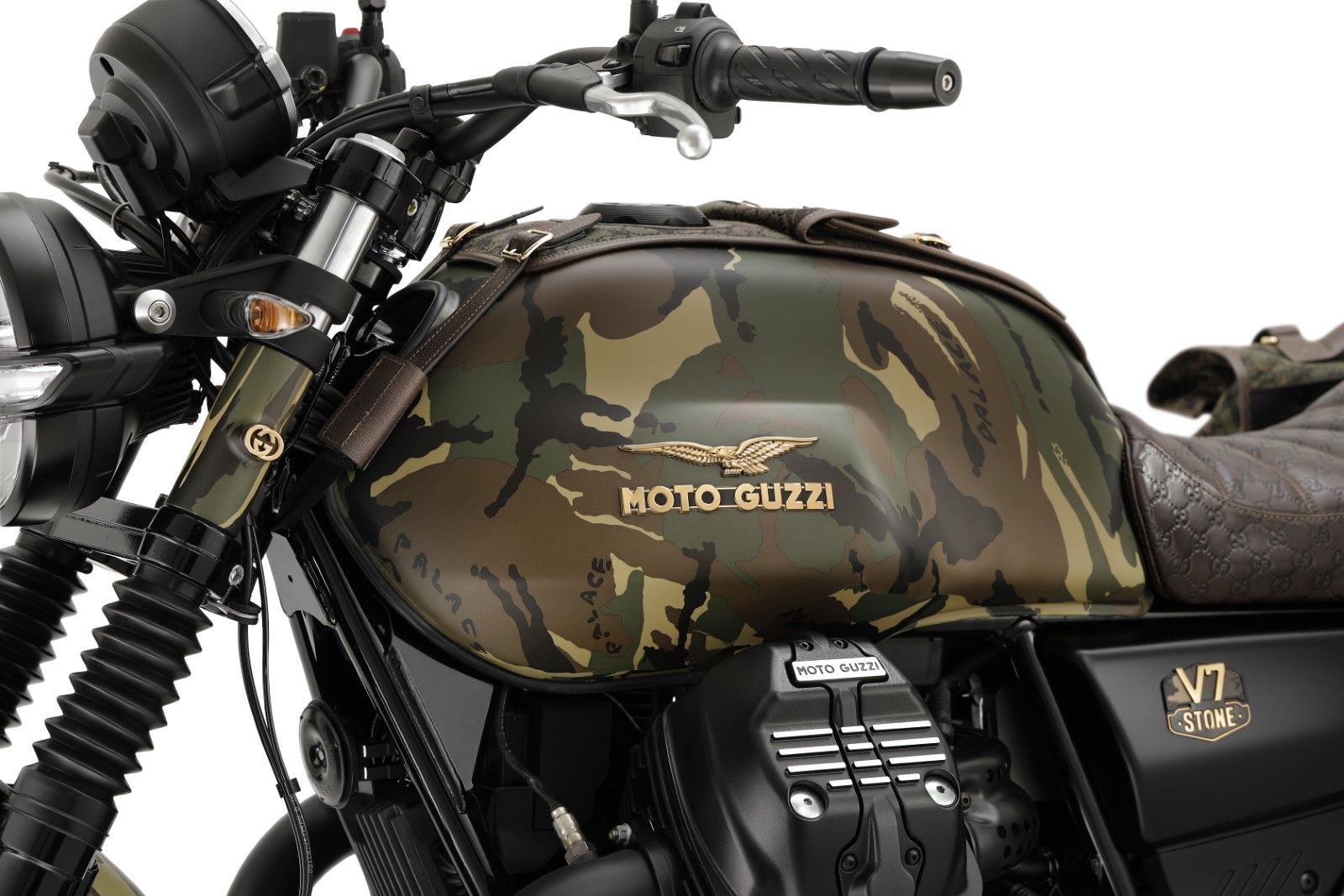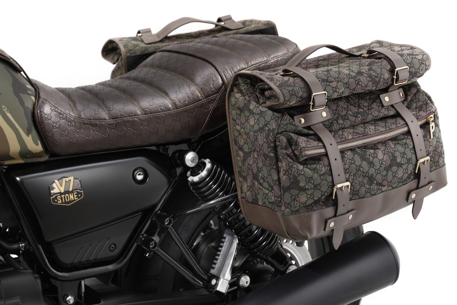 Finally, in addition to more ambitious items such as the shearling jacket and collectibles, part of the collection will be enriched by a third and even more iconic partner, Moto Guzzi, resulting in a limited edition of only 50 pieces of the Italian motorcycle manufacturer's iconic V7 motorcycle. The exclusive V7 model will be adorned with a tank covered in Palace's camouflage motif and covered in embossed leather with Gucci's signature branding on the side bags. Finally, as an ironic reference to the "Vault" through which the collection will be released, a safe will be produced that will bear the double gold Gucci and Palace branding, covered in the double monogram and produced by Conforti in a strictly limited edition of only 10 pieces worldwide with an interior lined in embossed suede.