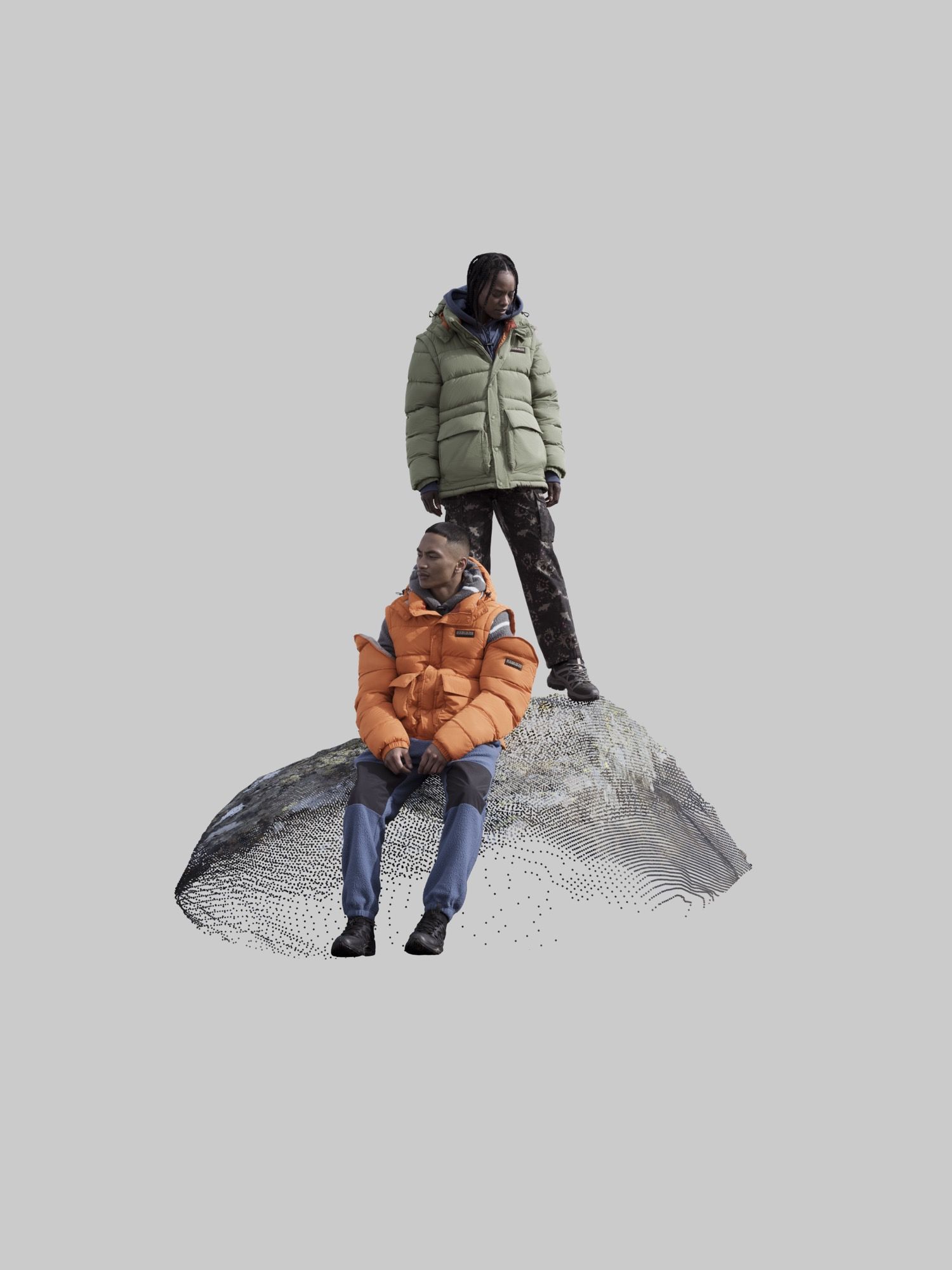 AS: The purpose of this jacket was originally for mountain exploration and eventually became fashionable on the streets. What we’re trying to do now is to update the jacket with new forms of sustainable materials, such as nylon, along with new materials to create more waterproofness. We’re actually partnering with Cordura for durability and updating it every year to create newness. There’s a new full zip version coming out, and we’re going to create new full-waterproof materials for the next season.