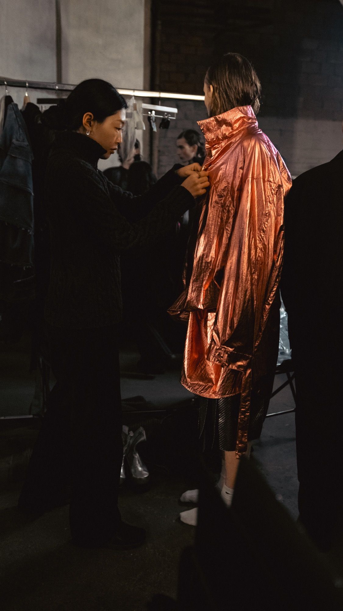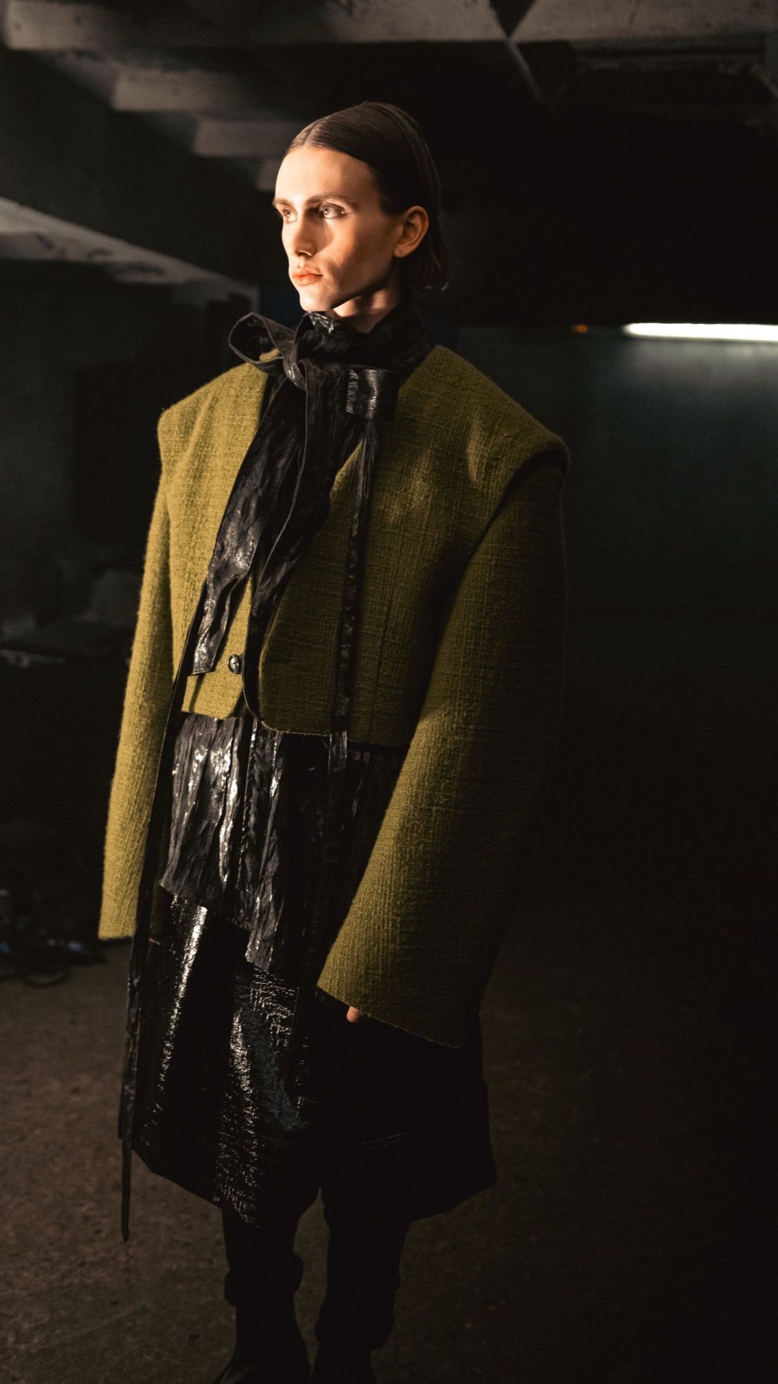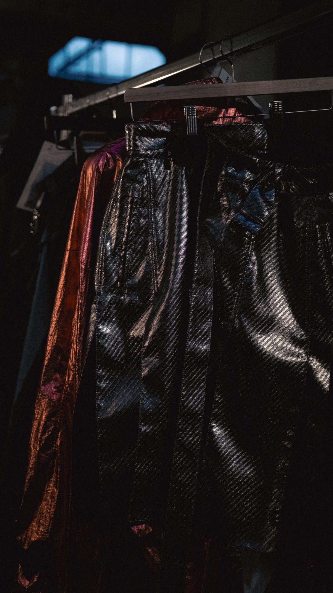 Not even the passage of time and a career spanning four different decades have managed to alter the fundamental spirit and deep artistic sense of creation according to Jay Songzio. When we ask him what it means to be an avant-garde designer in 2023, the designer says with the utmost serenity that «being an avant-garde brand is the same every year» but also that so long after so much has been built since its inception, «much has evolved, however, for us every year is like any other year, a new beginning».The idea is quite fascinating: why be inspired by the finiteness of a rich but exhaustible external world when there are infinite universes within us? This is precisely the antidote to obsolescence, the core of which, as the point of connection between the ideal and the real, is found in another artistic discipline: painting. As Jay Songzio reiterates, always speaking in the plural, «we always seek to not be inspired or influenced by external factors, visuals or ideas, but instead, we try to find the next collection through self-reflection, searching introspectively to create something new». The initial stage of each new collection, therefore, is a painting which represents «a process of visualizing this process». Everything began as a painting, in the abstraction of shapes and colors, and then translated according to a new language, more rational and structured if you will, moving from paint to cloth. «After seasons, and years pass», the designer confesses, «I sometimes remember past collections by the painting rather than the clothes».