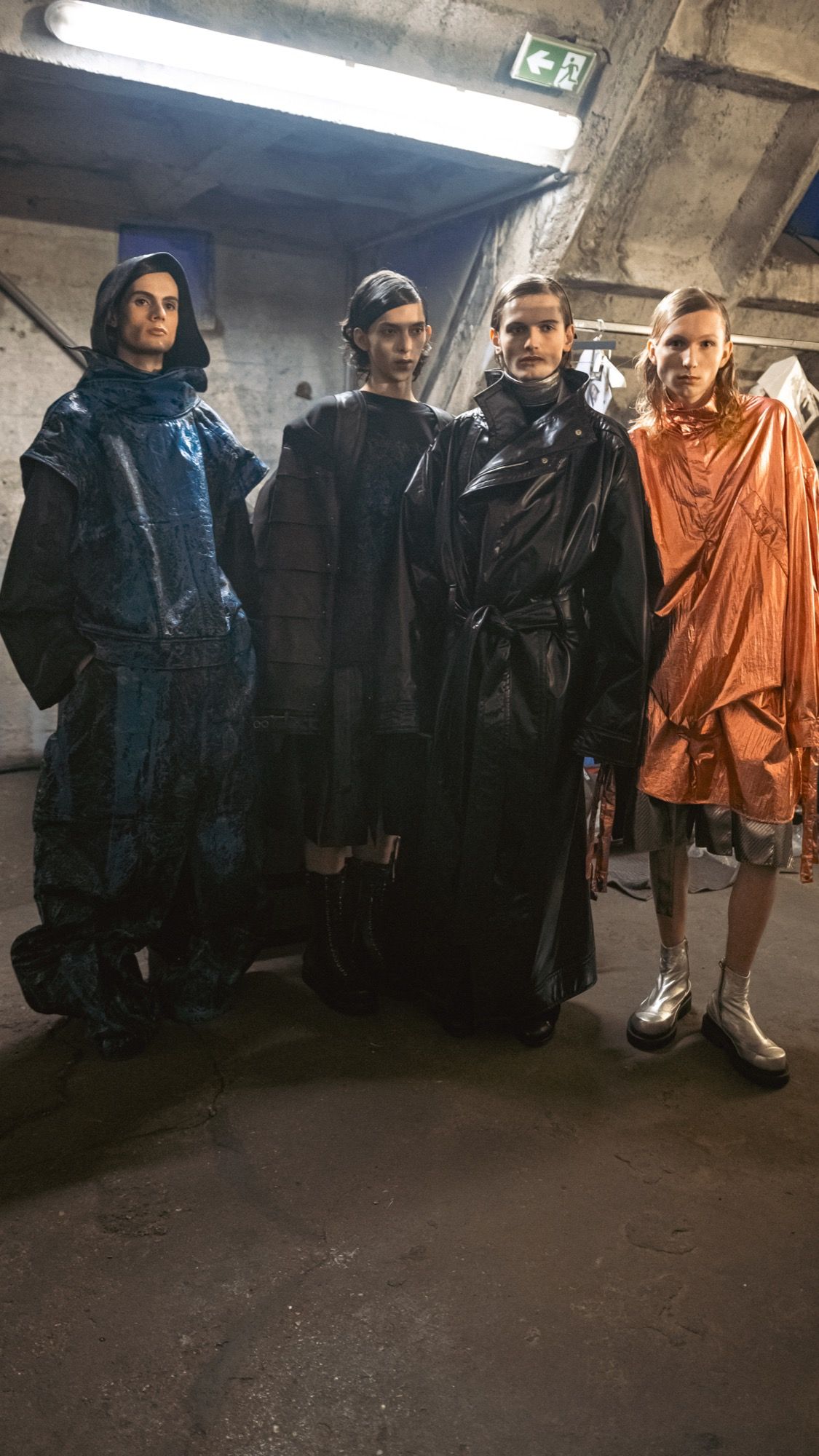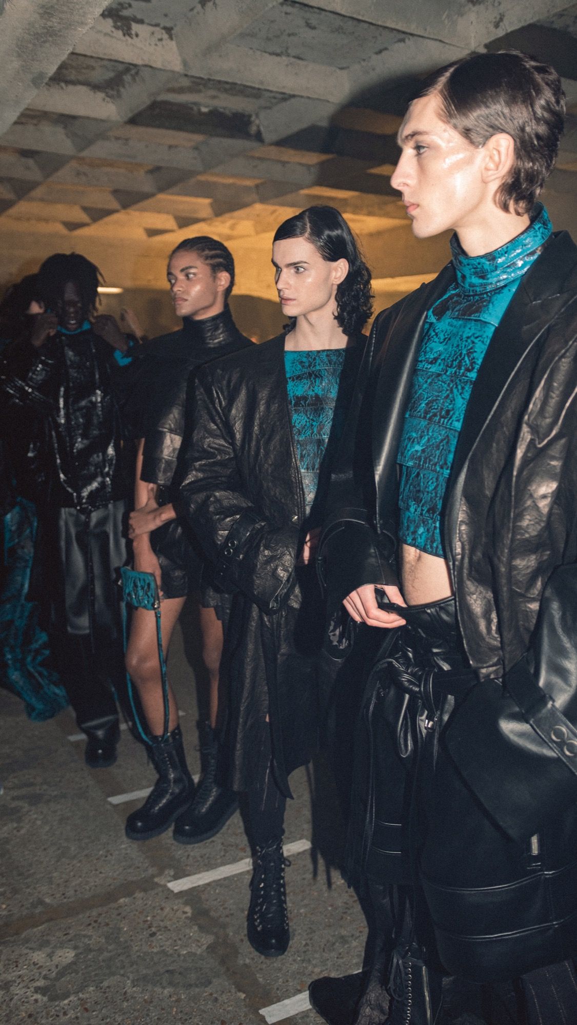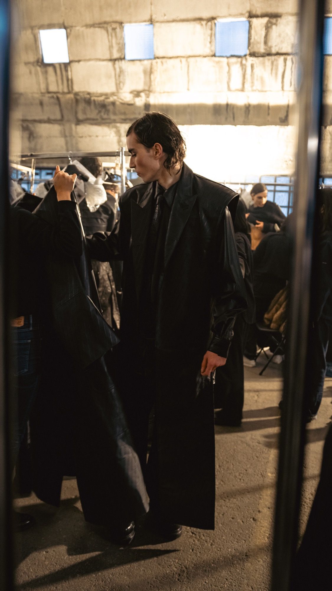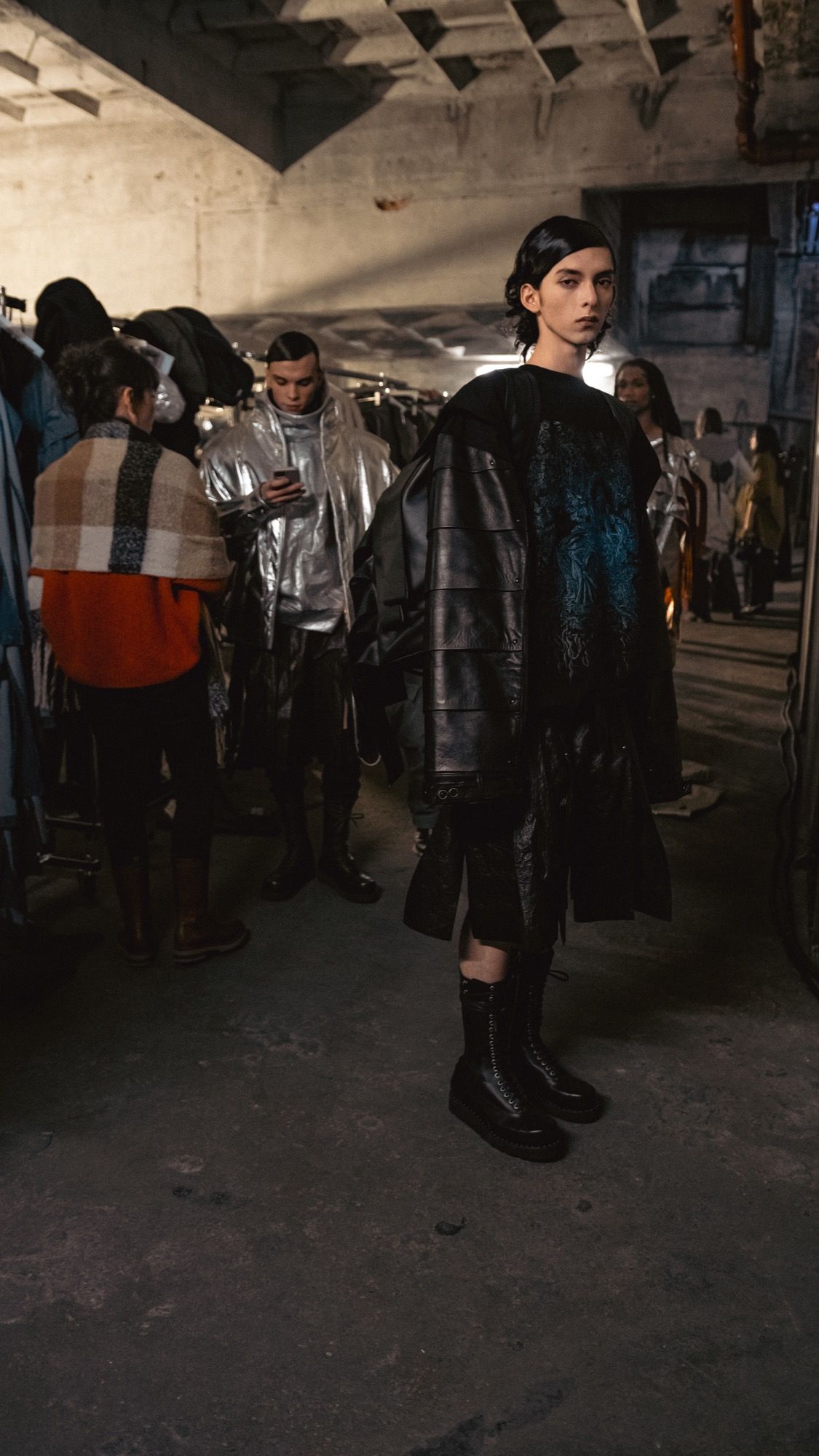 Not even the passage of time and a career spanning four different decades have managed to alter the fundamental spirit and deep artistic sense of creation according to Jay Songzio. When we ask him what it means to be an avant-garde designer in 2023, the designer says with the utmost serenity that «being an avant-garde brand is the same every year» but also that so long after so much has been built since its inception, «much has evolved, however, for us every year is like any other year, a new beginning».The idea is quite fascinating: why be inspired by the finiteness of a rich but exhaustible external world when there are infinite universes within us? This is precisely the antidote to obsolescence, the core of which, as the point of connection between the ideal and the real, is found in another artistic discipline: painting. As Jay Songzio reiterates, always speaking in the plural, «we always seek to not be inspired or influenced by external factors, visuals or ideas, but instead, we try to find the next collection through self-reflection, searching introspectively to create something new». The initial stage of each new collection, therefore, is a painting which represents «a process of visualizing this process». Everything began as a painting, in the abstraction of shapes and colors, and then translated according to a new language, more rational and structured if you will, moving from paint to cloth. «After seasons, and years pass», the designer confesses, «I sometimes remember past collections by the painting rather than the clothes».