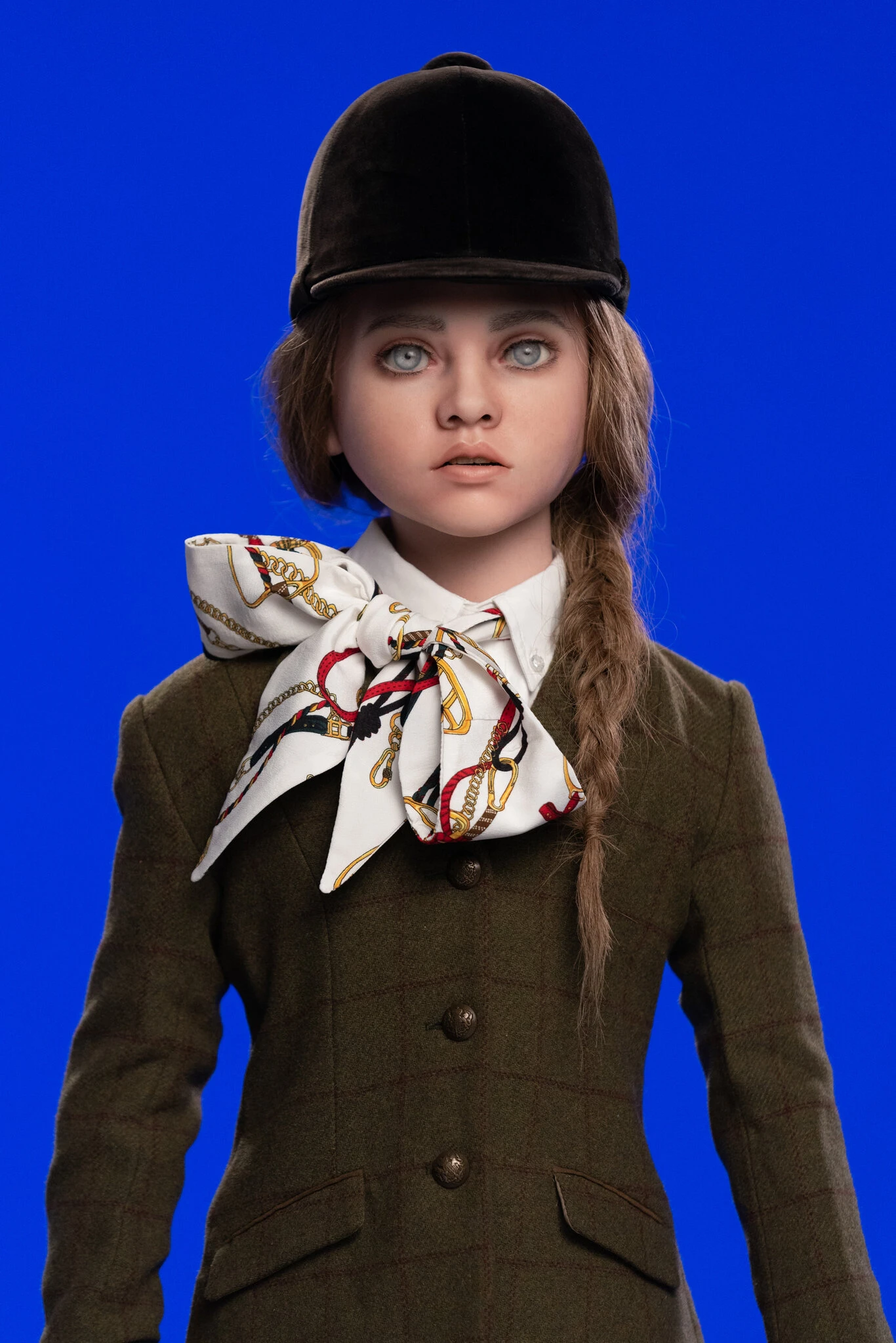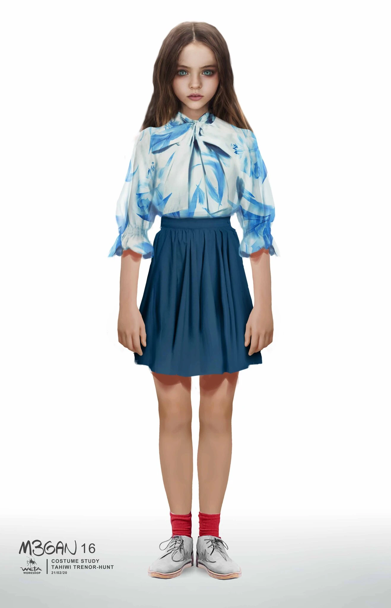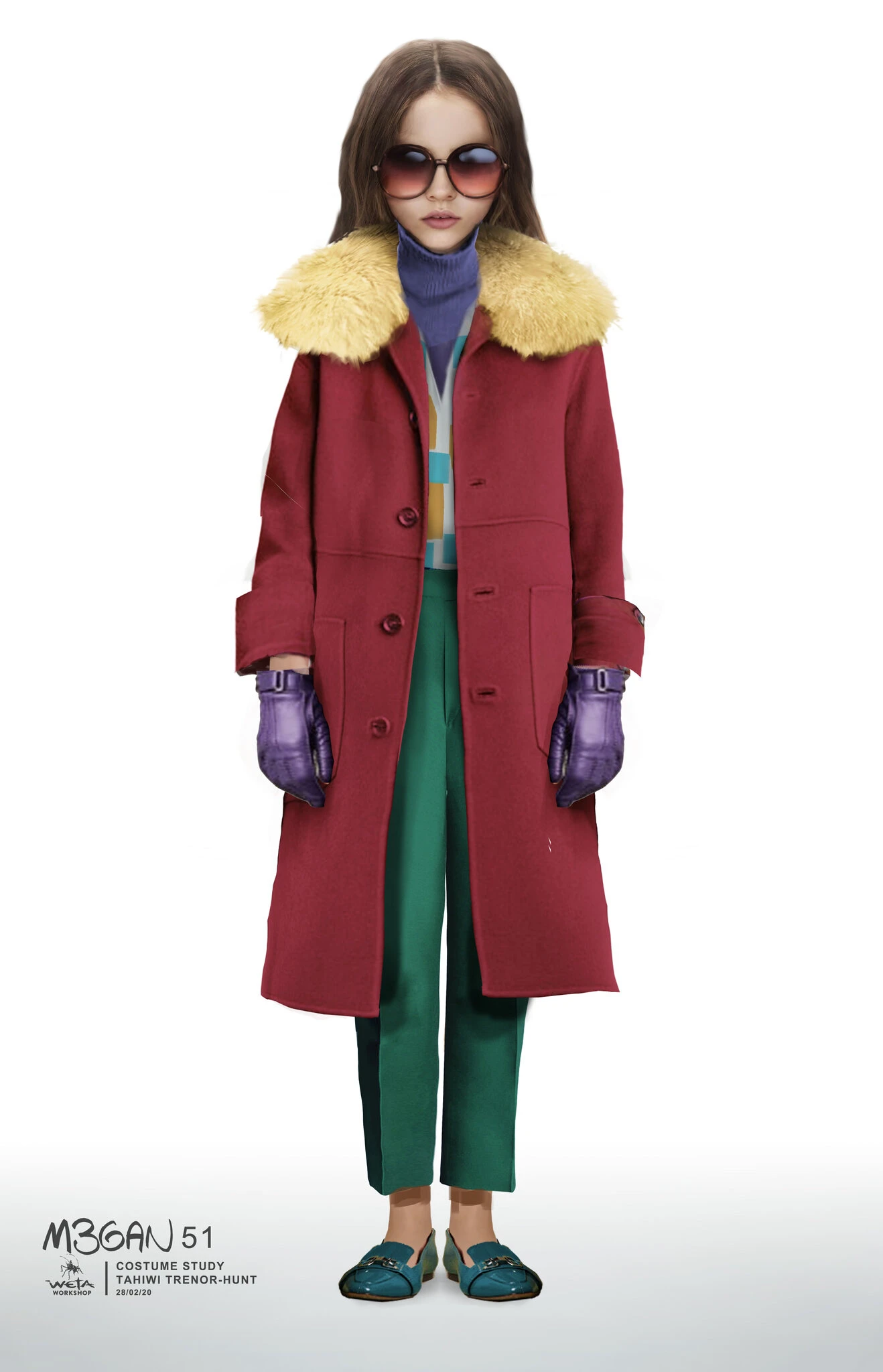 As the memes accumulated, so did interest in the film and its deadly protagonist, thanks in part to the film's ingenious marketing that populated American stadiums with "copies" of the doll doing her dance, a Twitter account in which M3GAN posted biting comments that later went viral, and even a series of mock interviews published in Dazed and The Face in which her character "stepped out" of the film's fiction to answer journalists' questions. The attention paid to the latest in a long line of killer dolls has since rekindled interest in the killer doll archetype and its subgenre of reference, leading, for example, journalists such as Joshua Lyon to point out how, in that very sub genre, the identity of killer dolls is linked to their costume. And in M3GAN's case, that costume could easily have been signed by Gucci or Prada-even if it wasn't. In general, however, the wardrobe of M3GAN, who also wears a double-breasted coat with a fur collar in the film, represents a new and modern addition to the catalog of killer dolls at the movies endowed with a distinctive look - a look that is often defined by its somewhat old-fashioned elegance. This makes us wonder, how come killer dolls in the movies are dressed so well?