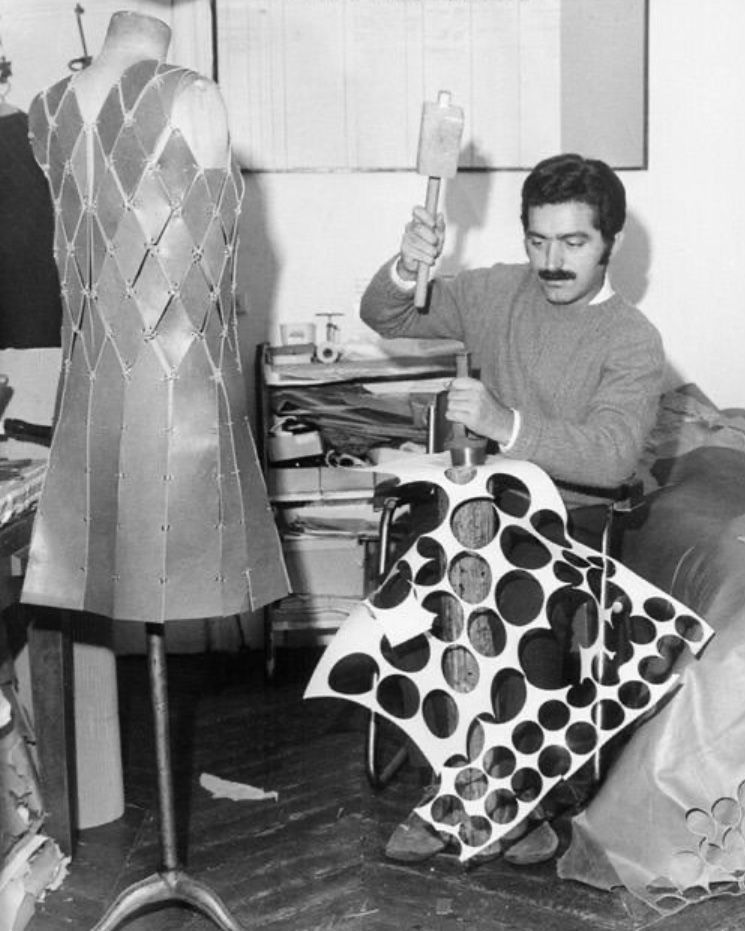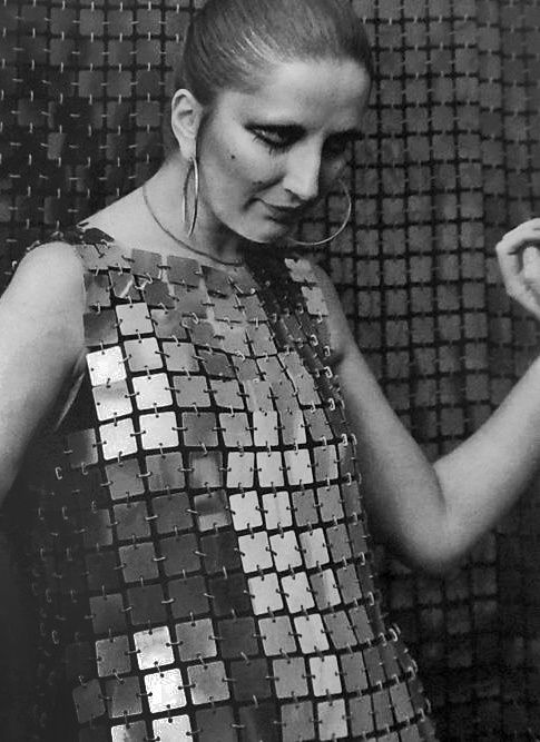At the age of 30, Rabanne presented her first fashion designs. Just two years later, in 1966, she debuted with her first show, provocatively titled Twelve Unwearable Dresses in Contemporary Materials. Presented at George V in Paris, the collection completely broke with the conventions of the time by using music (an unusual choice for the time) and incorporating coloured models into the line-up. As Vogue reported, claiming that 'sewing is slavery', she made her clothes not from fabric but from eco-friendly paper, plastic and metal, which she assembled with wire and glue (she later sold DIY kits consisting of discs, rings and pliers). Rabanne's dresses revealed more than they hid, but critics were not so much shocked by this riot of female forms as by his technique: 'Paco's Sewing Kit: Pliers and Thread', headlined the New York Times. His time-tested jewellery technique corresponded to an ideological demand of the time: «In France in the 1960s - he said in a 2002 interview - there was a similar women's liberation movement as in America... It was a time when women became warriors because they had to assert their desire for emancipation. Armour was almost necessary.»