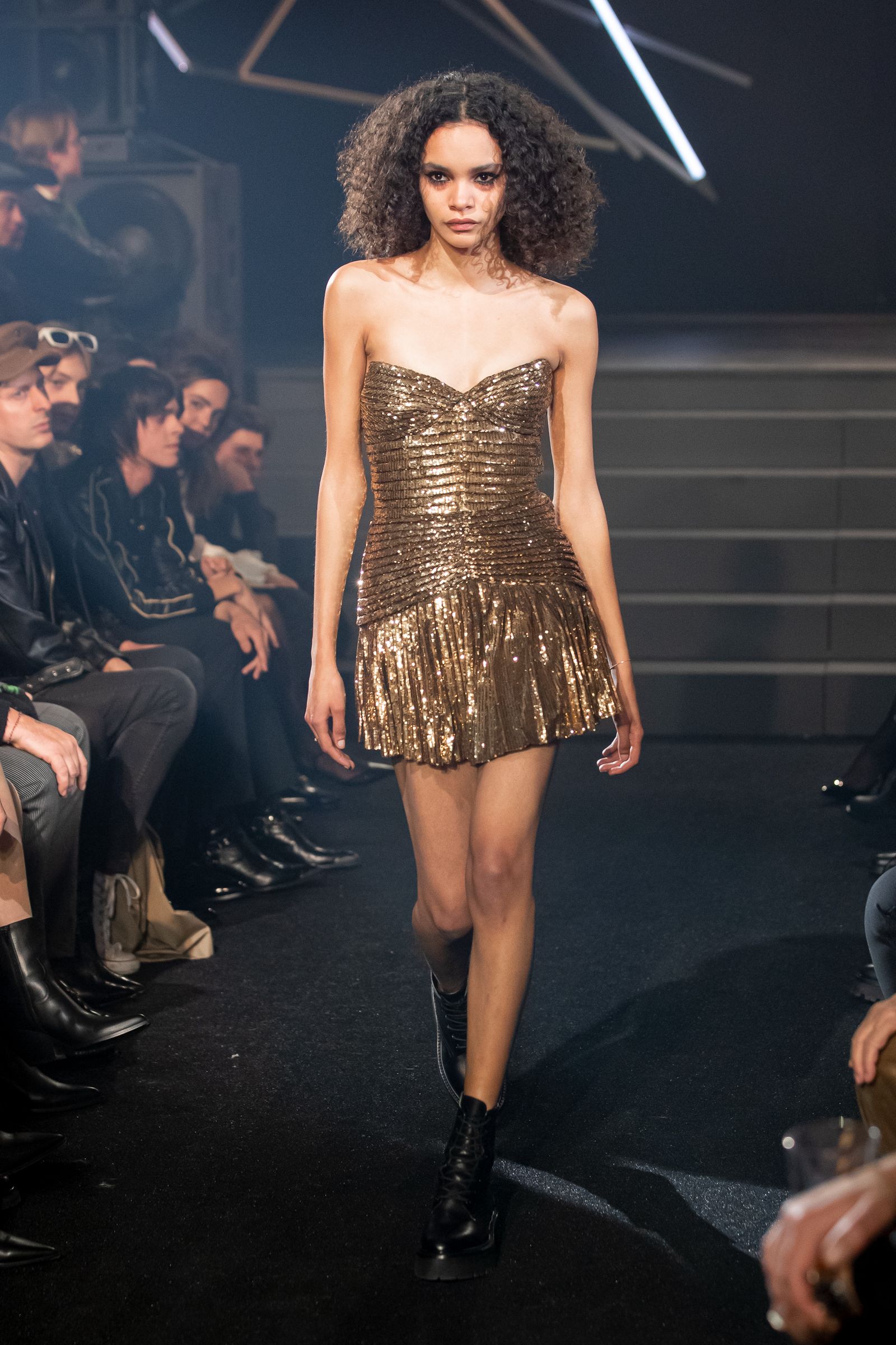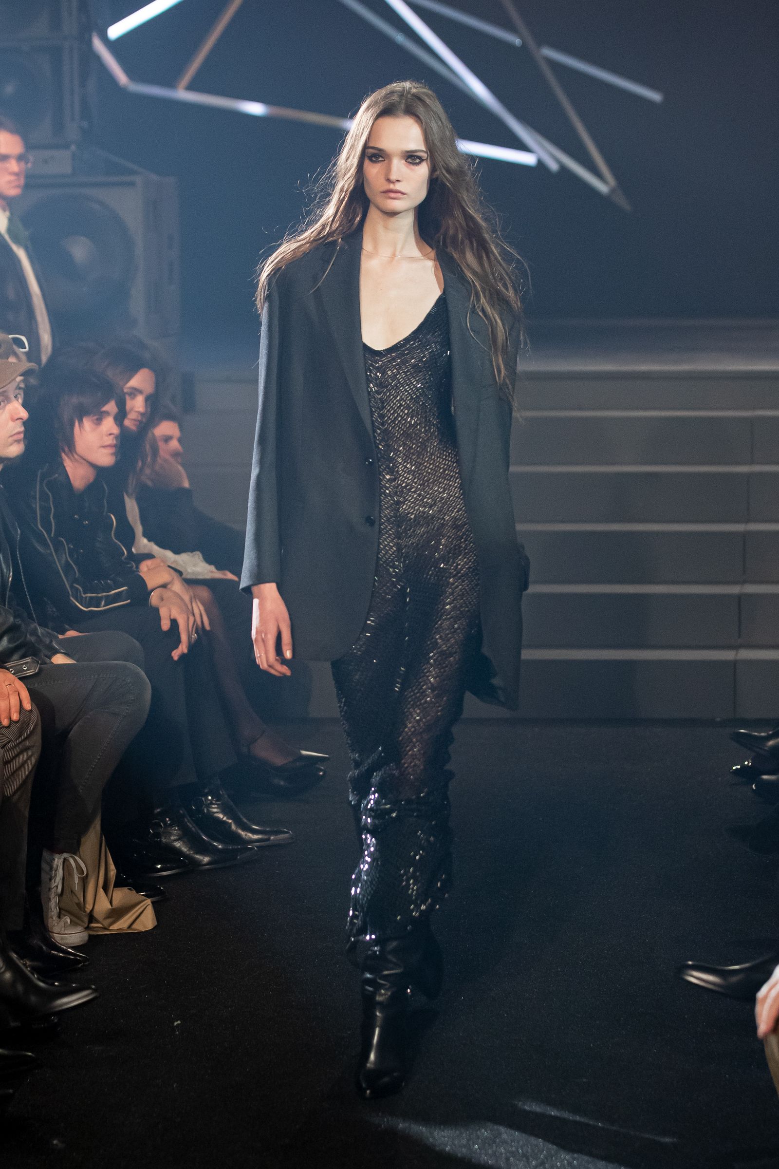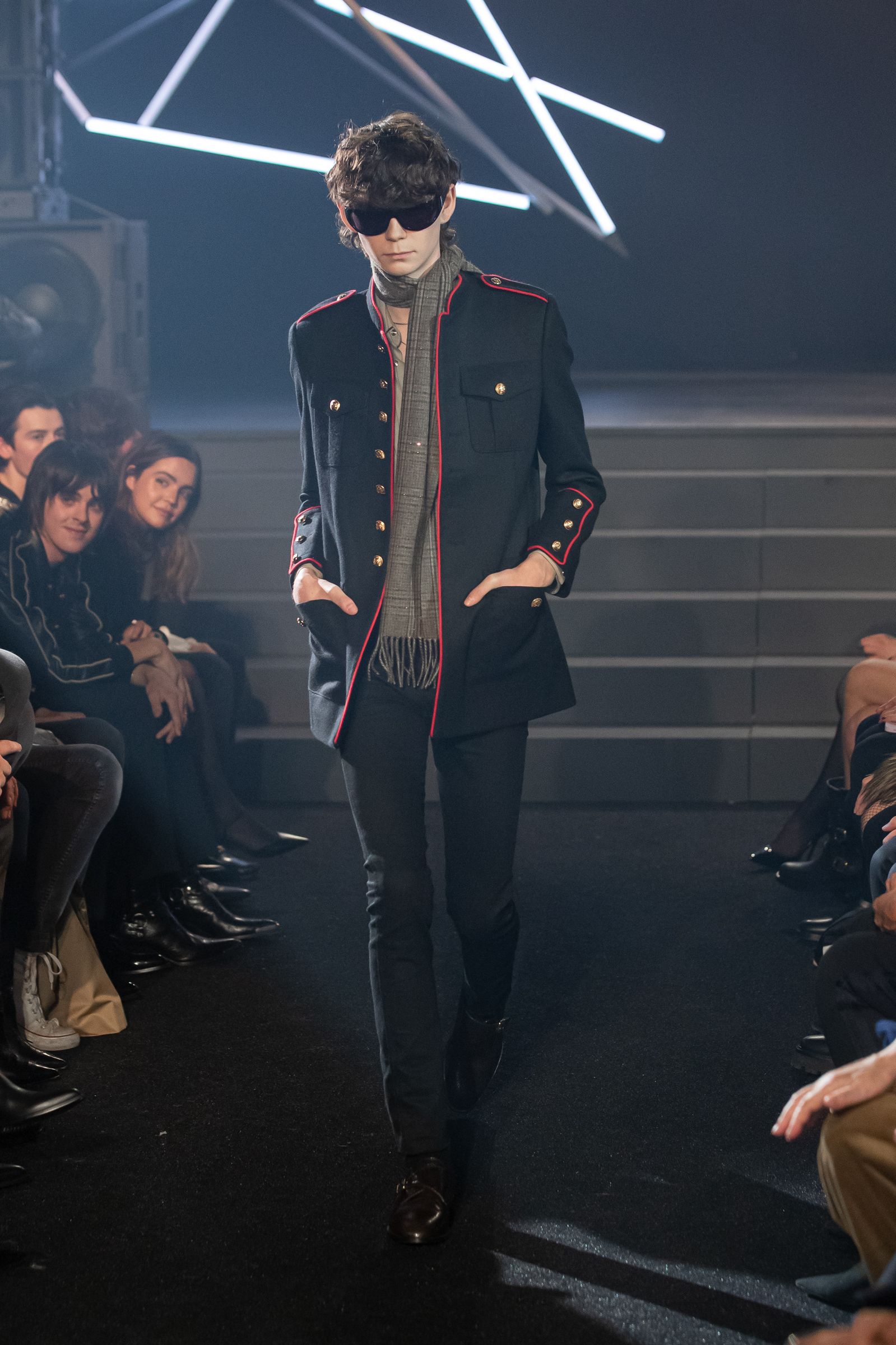By organizing his show outside the fashion week calendar (as well as that of the women's collection organized last November at The Wiltern, another iconic nightclub but in Los Angeles) Hedi Slimane seems to want to reaffirm his independence not only from the rest of the industry but also from the very concept of the season and the implicit notion that it is necessary to renew even a formula that works continually. The answer then, in the absence of huge media events, is to create a community of kindred spirits, a kind of enlarged big rock band, all united by the same imagery that concedes little to the comings and goings of trends and at the same time is capable of expanding from the rock of leather suits to the classicism of coats and tailoring to the glamour of red carpet gowns seen on virtually every red carpet in the past few years and especially at Cannes.