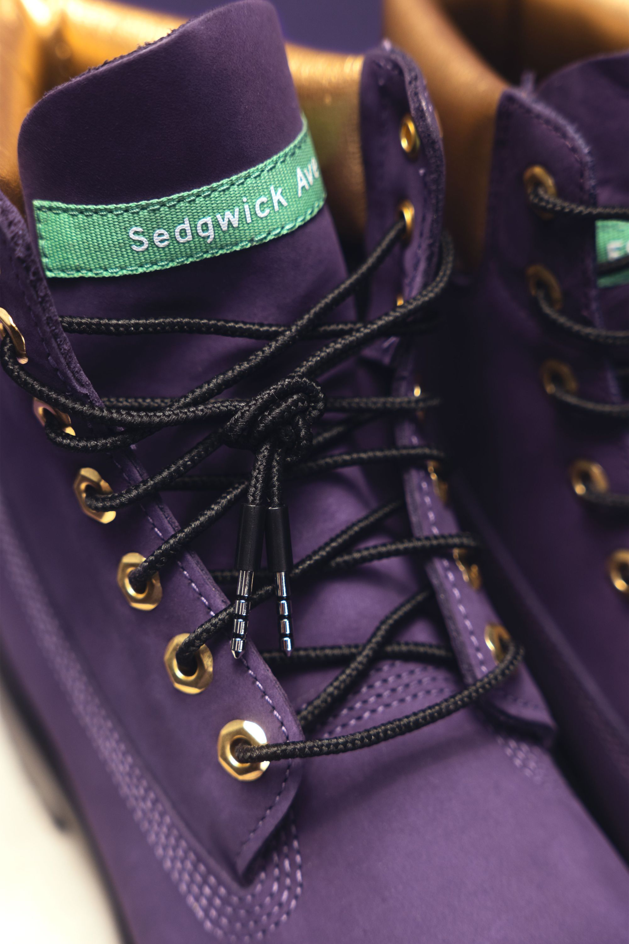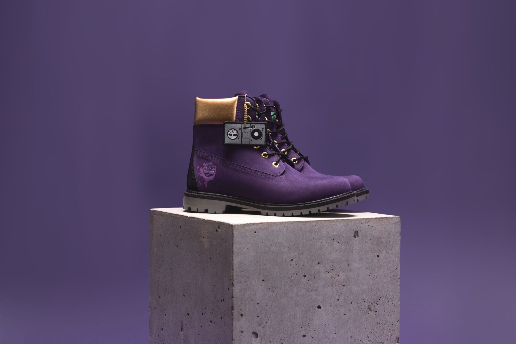 This year the iconic Timberland Yellow Boot and Hip Hop turned 50 years old. To celebrate the anniversary of the shoe that has made the tree logo synonymous with innovation and durability, the brand has created a collaboration dedicated to the world of Hip Hop through the Timberland® Hip Hop Royalty Boot. Designed by Senior Footwear Designer Chris Dixon, this new Premium 6-Inch Boot has been coated in purple and gold, and decorated with graffiti-style detailing and microphone laces.
