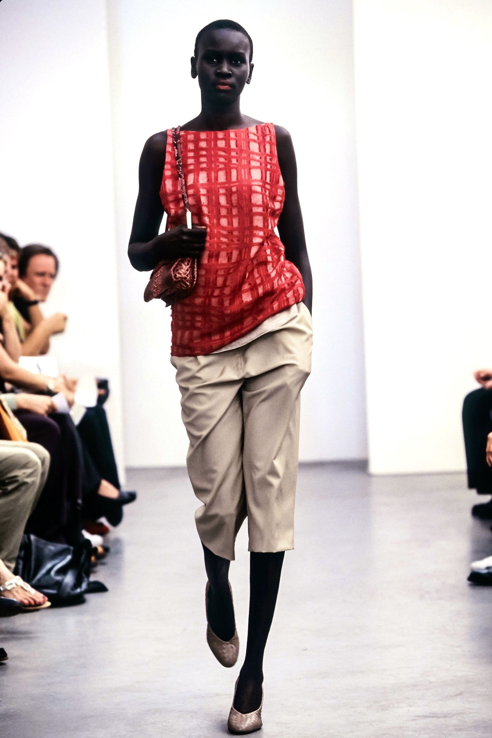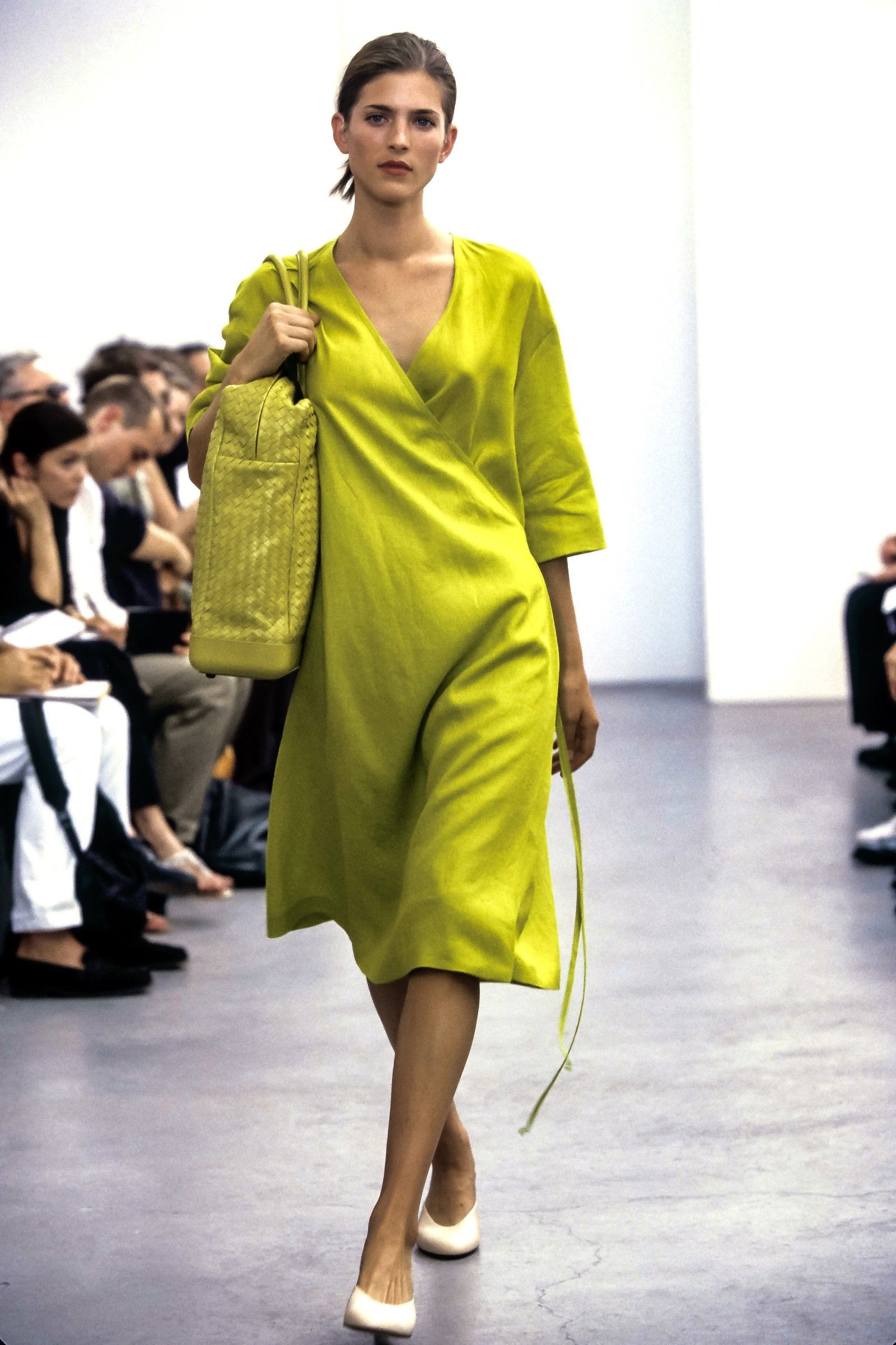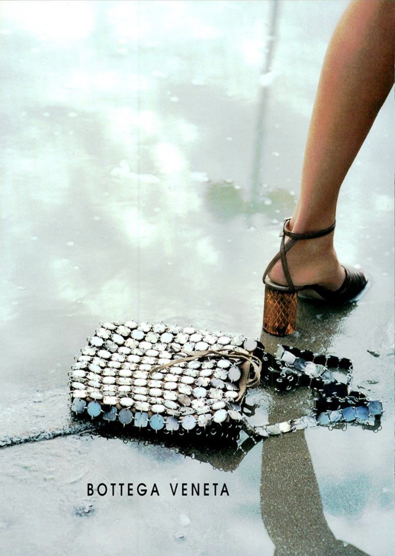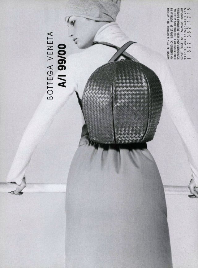 Our story begins in the 1990s. Back then Bottega already had decades of history behind it, yet it was struggling to keep up with the wave of minimalist, metrosexual innovation that was conquering the fashion industry. Bottega Veneta already had thirty years of life behind it and an immense fame in the field of leather goods (the famous woven bag had appeared in American Gigolo along with Armani's suits) when Laura Molteno, formerly Braggion, widow of one of the brand's co-founders, took over its creative direction, presenting at Palazzo Serbelloni, Milan, in 1998, the first clothing collection designed together with Edward Buchanan, who had joined the brand in 1995. Scrolling through the campaigns rescued from oblivion by @scannedfashionworld for the FW98 and SS98 seasons, it is incredibly striking how the brand's DNA was already all there: one of the campaign photos depicts an oversized turtleneck sweater paired with a woven bag made from the same wool as the knit; then there's a suit of what appears to be wool bouclé with strong '70s influences, with a slouchy silhouette and a woven bag decorated with fur details; the collars of the shirts are as big as wings, the textures plastic. This period of grace was short-lived: after the debut collections, all successful, Edward Buchanan, who then between 2000 and 2001 opened his own brand Leflesh, was joined by Englishman Giles Deacon, who joined in '98. A change of positions that also corresponds to the acquisition of a majority stake in the brand (equal to 66.67 percent) by the Gucci group in February 2001, a $156 million purchase that would create what is now the foundation of Kering.