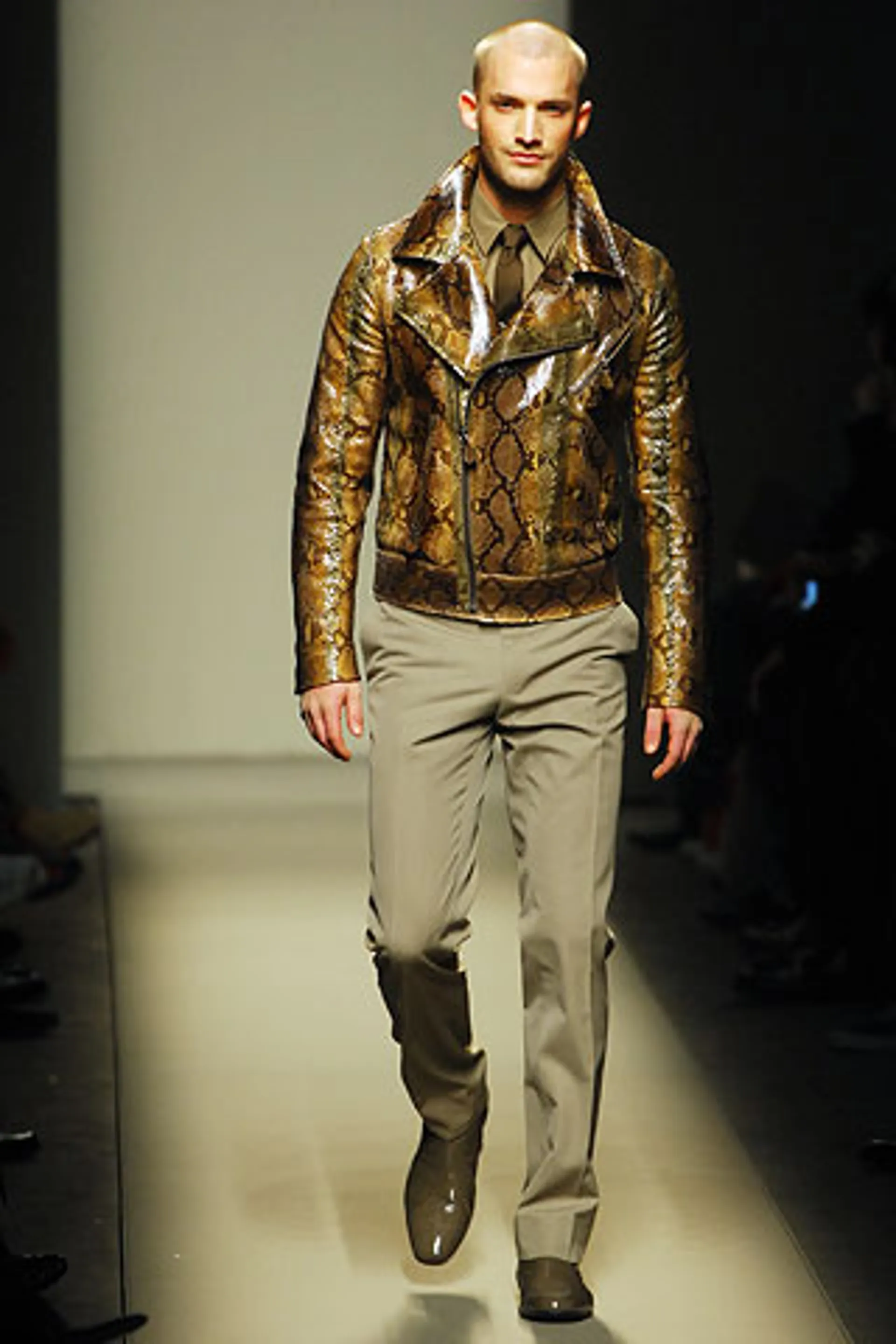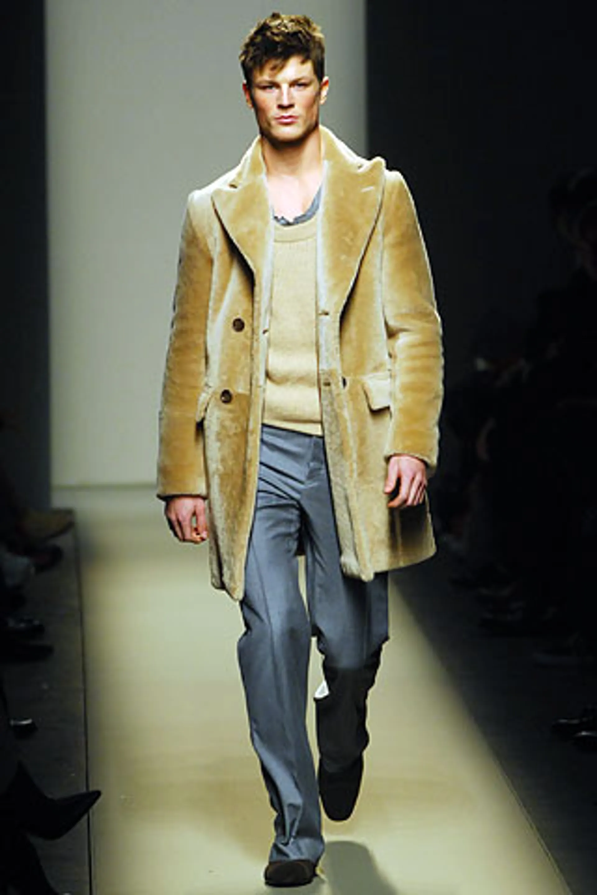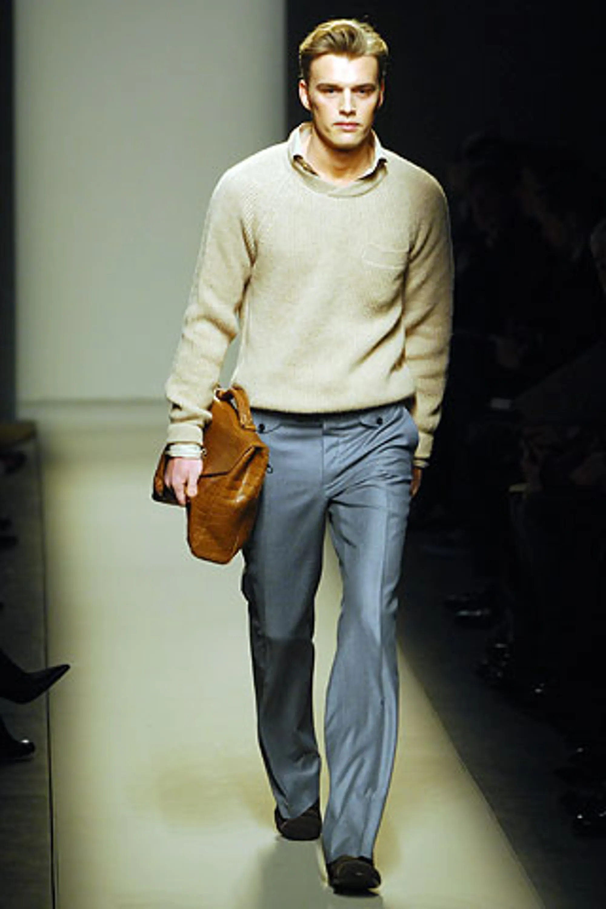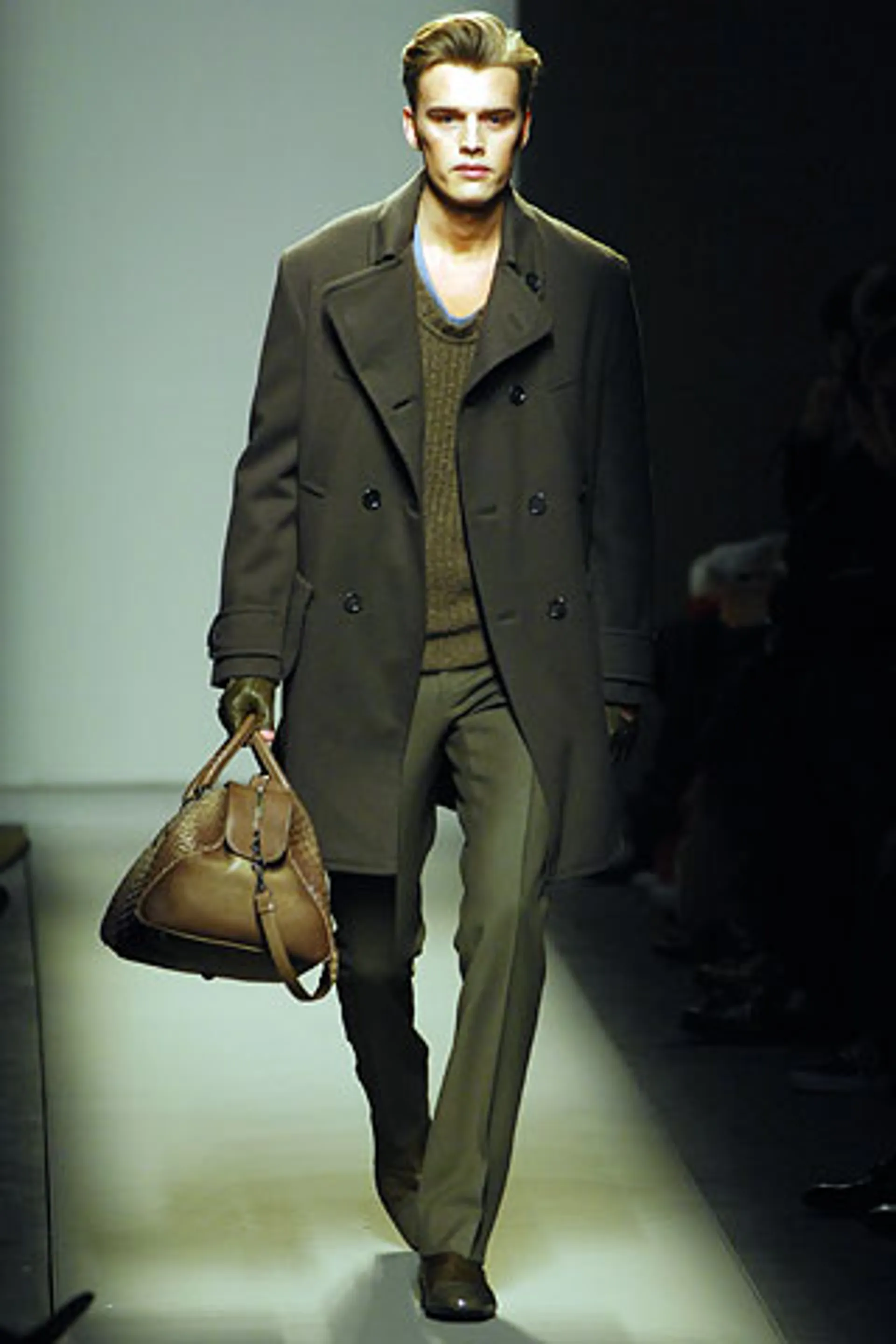 The debut collection of Deacon, who would later go on to work with Tom Ford at Gucci, was presented in March 2001. From passé and nostalgic for the 1970s, the brand plunged into the early 2000s with a crash: it was with the FW01 collection that the diagonal-banded leather down jacket later relaunched by Daniel Lee and still sold by the brand was first created. Also with that runway show there was a no small slip: Deacon succumbed to the temptation to include logoed garments in the collection-a choice that even at the time Vogue called less successful in no uncertain terms. Deacon then, as mentioned, went to design womanswear at Gucci, and between June and May of that year Domenico De Sole performed a kind of purge against the brand's previous management. Even the Moltedo family, which had 33 percent of the shares, left the Gucci Group and Domenico De Sole in full control of the brand.