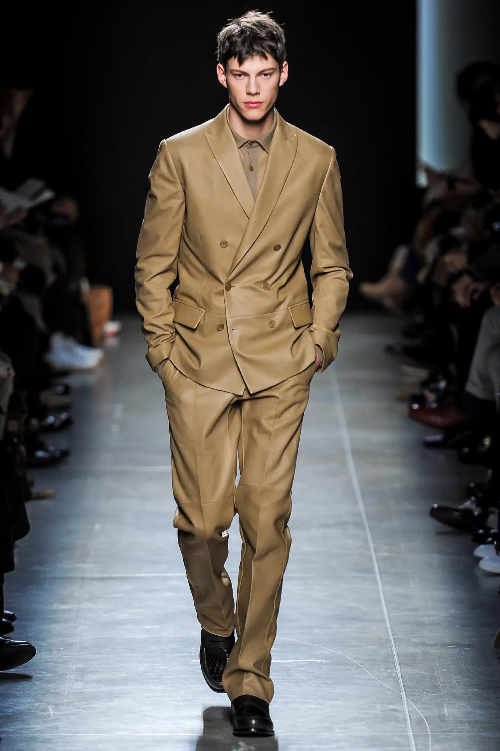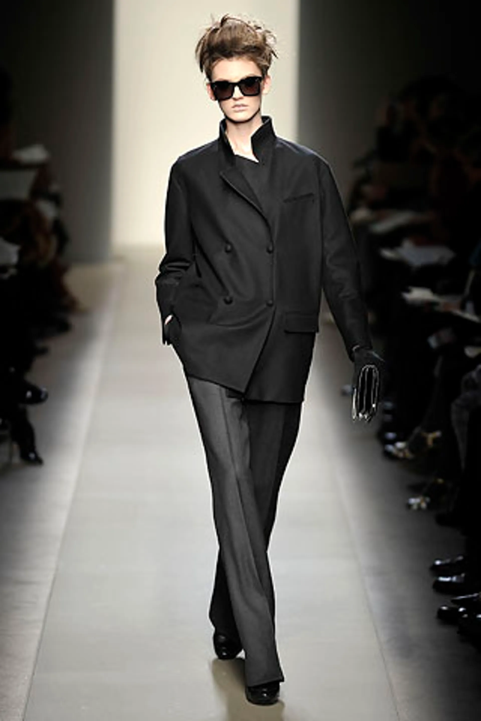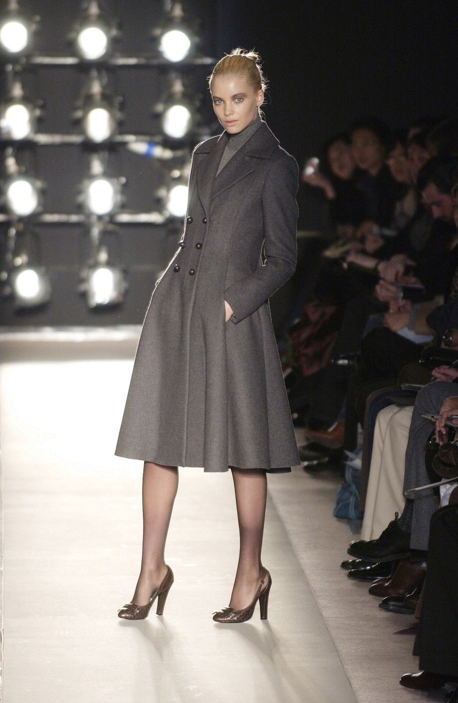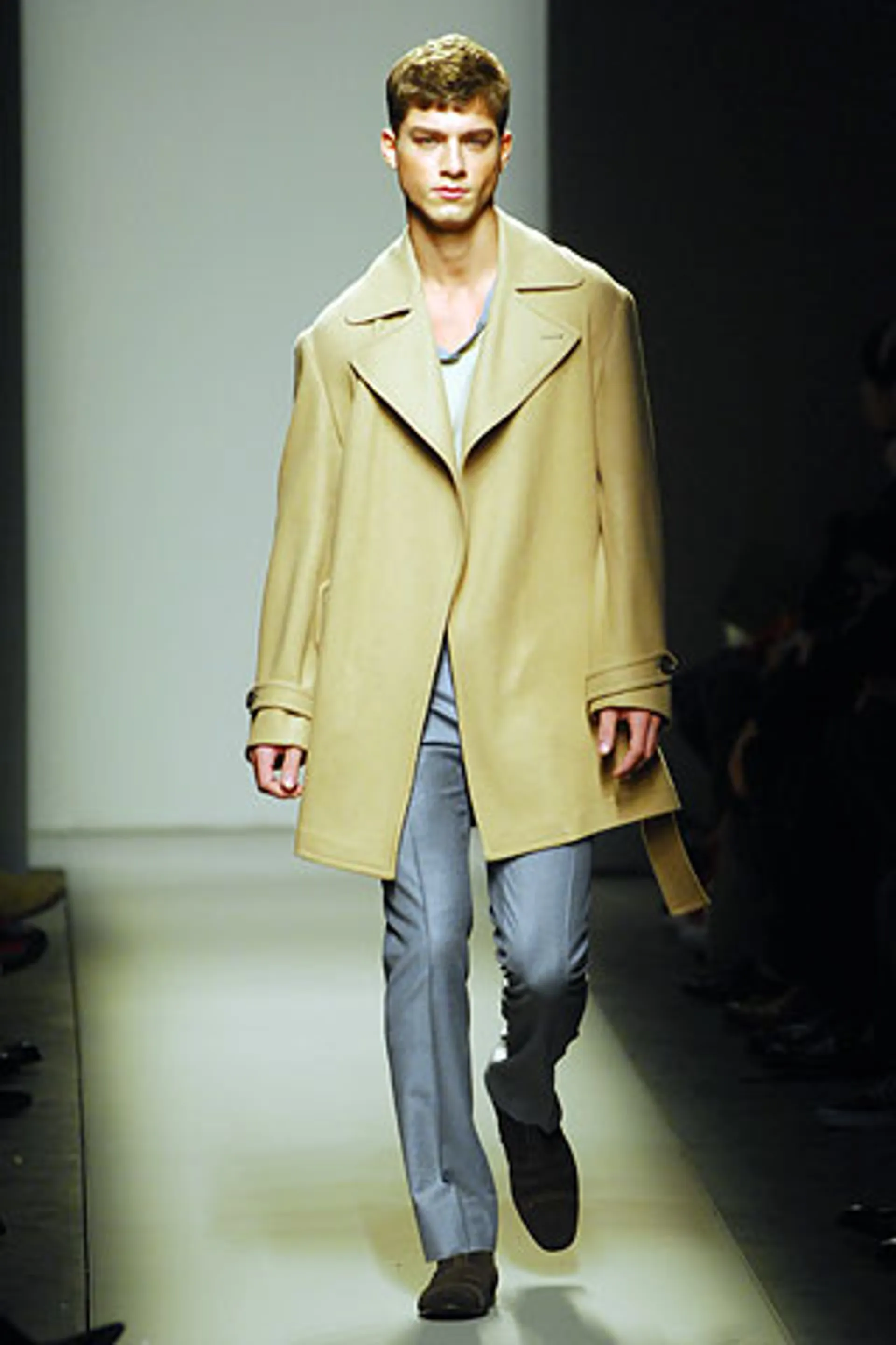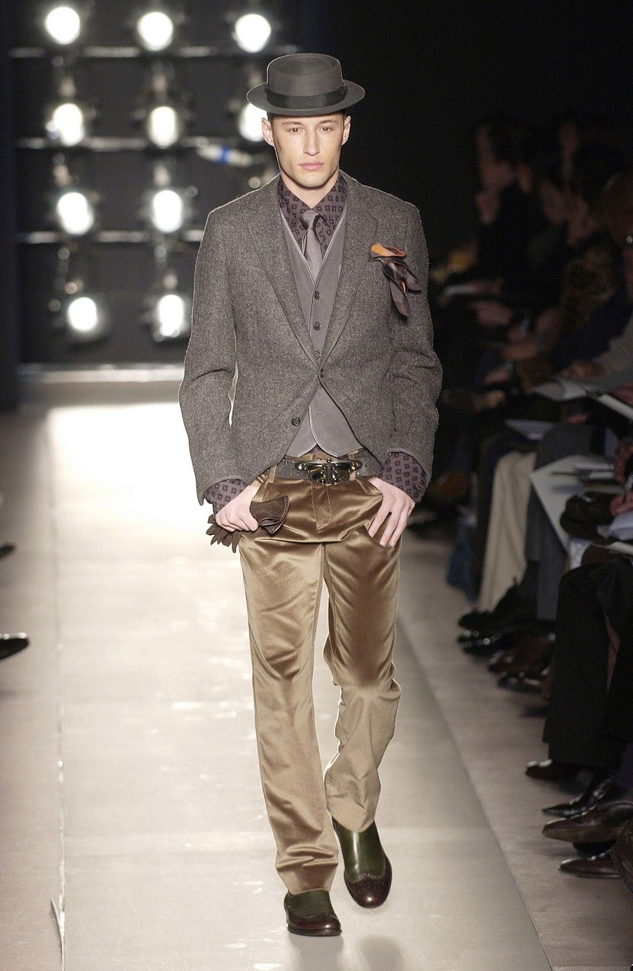 The debut collection of Deacon, who would later go on to work with Tom Ford at Gucci, was presented in March 2001. From passé and nostalgic for the 1970s, the brand plunged into the early 2000s with a crash: it was with the FW01 collection that the diagonal-banded leather down jacket later relaunched by Daniel Lee and still sold by the brand was first created. Also with that runway show there was a no small slip: Deacon succumbed to the temptation to include logoed garments in the collection-a choice that even at the time Vogue called less successful in no uncertain terms. Deacon then, as mentioned, went to design womanswear at Gucci, and between June and May of that year Domenico De Sole performed a kind of purge against the brand's previous management. Even the Moltedo family, which had 33 percent of the shares, left the Gucci Group and Domenico De Sole in full control of the brand.