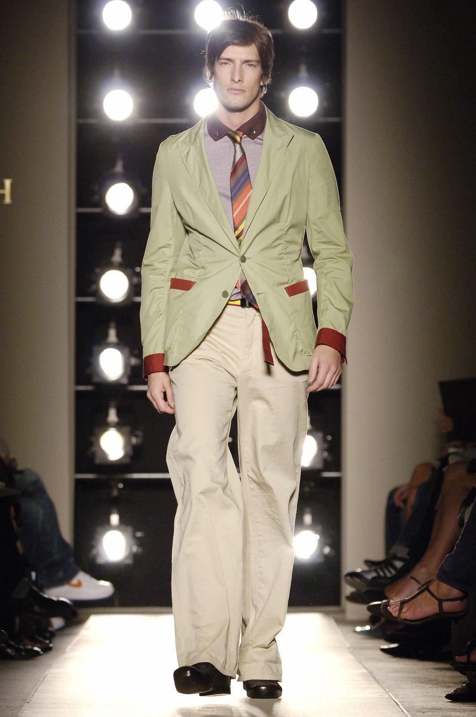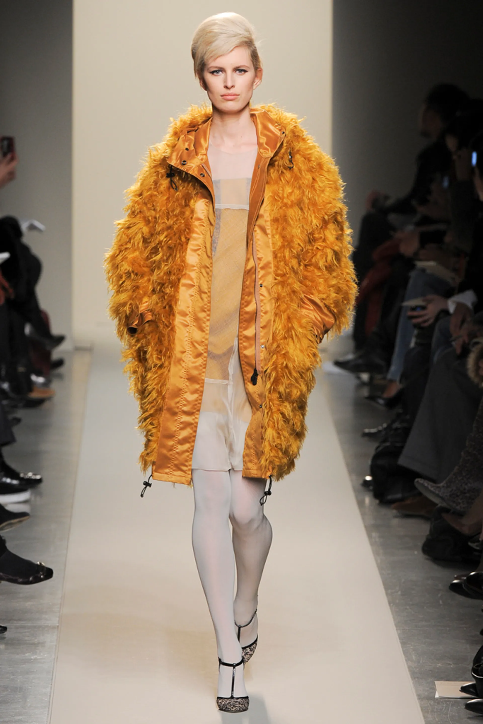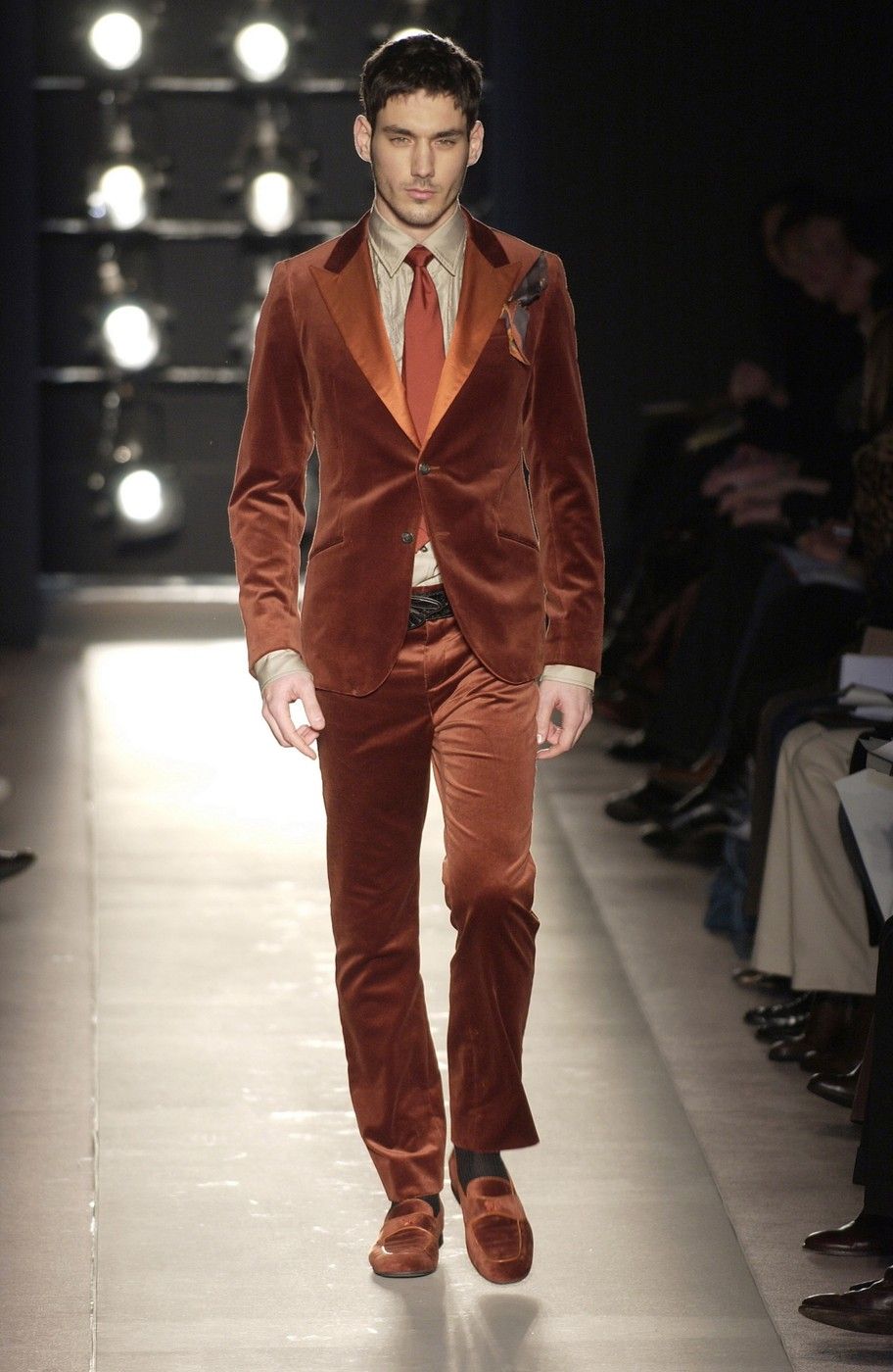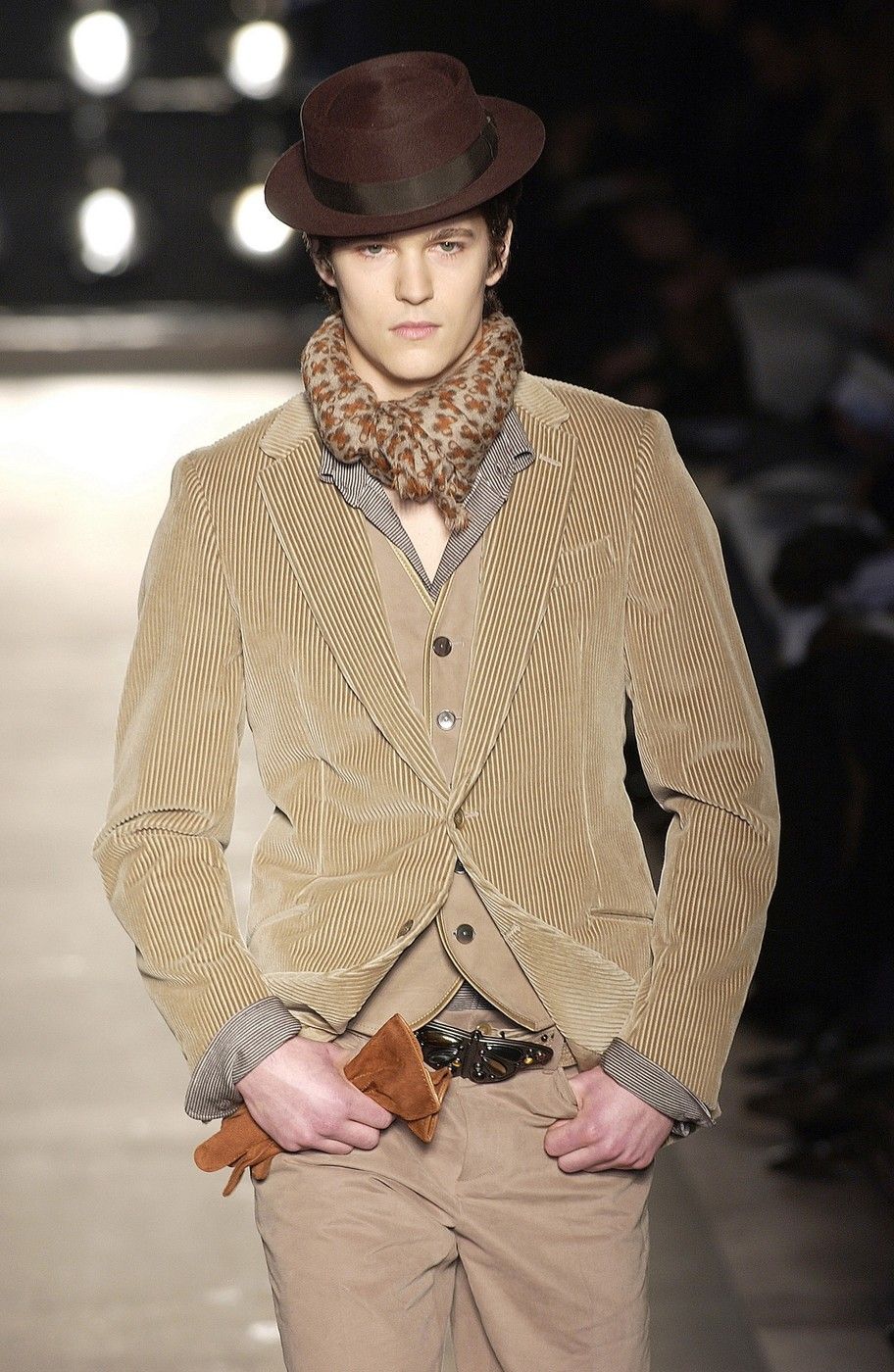 The debut collection of Deacon, who would later go on to work with Tom Ford at Gucci, was presented in March 2001. From passé and nostalgic for the 1970s, the brand plunged into the early 2000s with a crash: it was with the FW01 collection that the diagonal-banded leather down jacket later relaunched by Daniel Lee and still sold by the brand was first created. Also with that runway show there was a no small slip: Deacon succumbed to the temptation to include logoed garments in the collection-a choice that even at the time Vogue called less successful in no uncertain terms. Deacon then, as mentioned, went to design womanswear at Gucci, and between June and May of that year Domenico De Sole performed a kind of purge against the brand's previous management. Even the Moltedo family, which had 33 percent of the shares, left the Gucci Group and Domenico De Sole in full control of the brand.