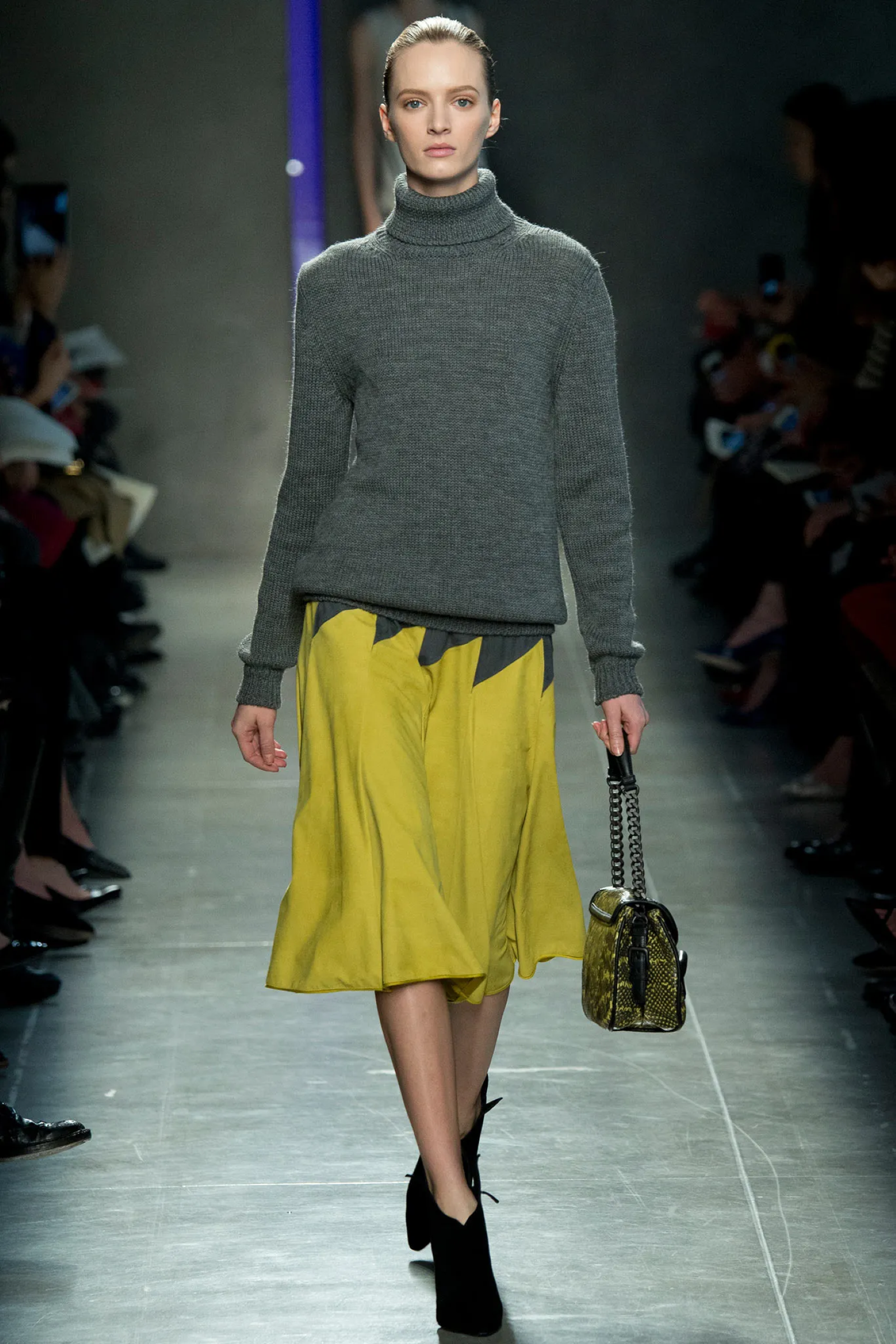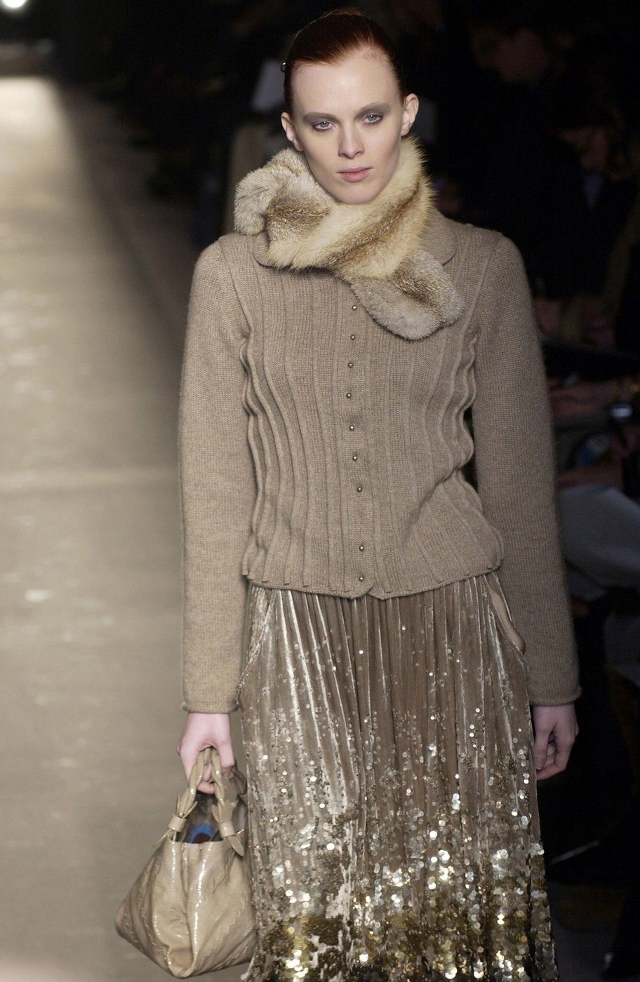 Maier's meticulous and slow work paid off, however. After a SS05 collection that was well-reviewed by critics but presented with a show that was a bit too confusing and conceptual, which convinced poorly by still being a hyper-limited offering of clothes that led the press to wonder if it was a runway show or a bag presentation. Things changed in February 2005, when Maier presented the first full collection, which, if not fully convincing on the menswear level, had the merit of bringing to the runway styles related to those we know today: sweaters combined with leather skirts, other skirts made of glittering rhinestones combined with lamé suede boots, beige leather trench coats, impalpable silk blouses mixed with heavy velvets. As early as a few months later, in June, Tim Blanks wrote in Vogue that thanks to a series of sales and private presentations (he called them «trunk shows») the brand had experienced a huge increase in sales, with opulent products such as crocodile suitcases with vegetable dyes, kidskin shoes, bags embroidered with silver threads and lizard leather soles hidden inside slippers but also jeans with hems decorated by woven leather. As early as September 2005, the brand's upward trajectory was becoming increasingly rapid and vertical - a dilemma of sorts arose at this point, whereby the brand was registering sales due to its collector audience and the shows it organized, while successful, were unable to communicate the work of Maier whose intricately constructed pieces with subtle but incredibly sophisticated details could be appreciated when worn, instead appearing anonymous on the runway.
