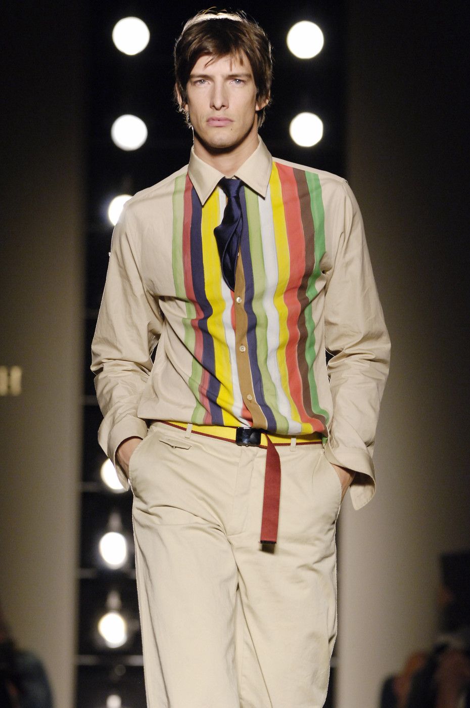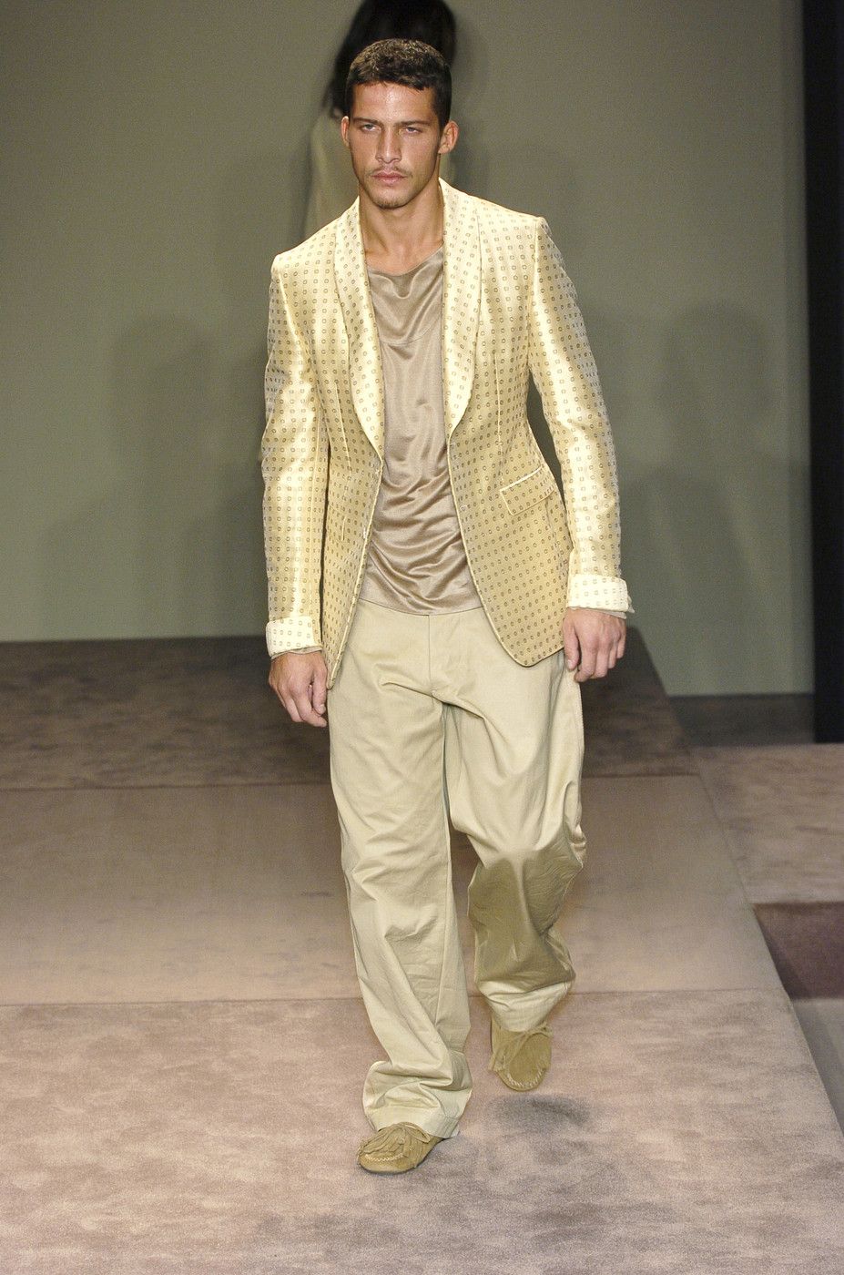 Here a mysterious gap opens up: the womanswear line was abruptly discontinued and the new creative director, German Tomas Maier focused only on accessories (WWD's Luisa Zargani does not give reasons, while Vogue's Steff Yotka hints that it was Maier's will) resuming clothing with the FW04 collection. A New York Post article from the time calls the clothing line «super-pricey» saying that it was «never really successful at retail» also adding that at the time the Gucci Group was making a slight loss given a slowdown in demand in the U.S. market and the expense of bringing Saint Laurent back to profitability about which De Sole declared: «The process of re-launching Yves Saint Laurent has caused us to expect to sustain a greater loss than we previously forecast». The press at the time described Maier as a method fanatic (he had worked for nine years at Hermès, after all) who had started out producing knitwear and jackets initially and had offered the first complete 60-piece collection not with a show but with a presentation. «It isn't like normal ready-to-wear. I had the concept of designing clothes like accessories. Everyone has their own personality, and will pick things out to wear in their own way», Maier told Vogue at the time.