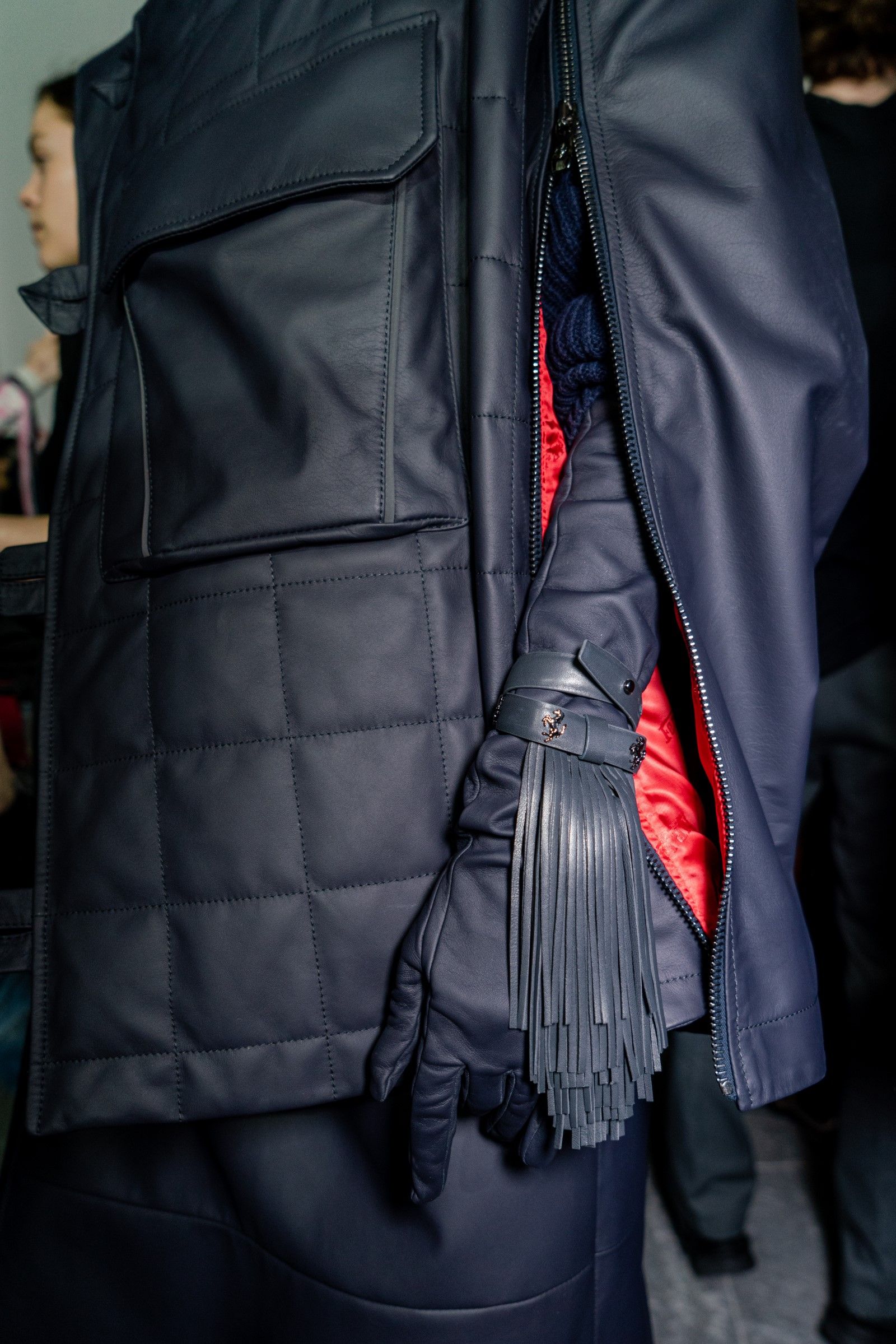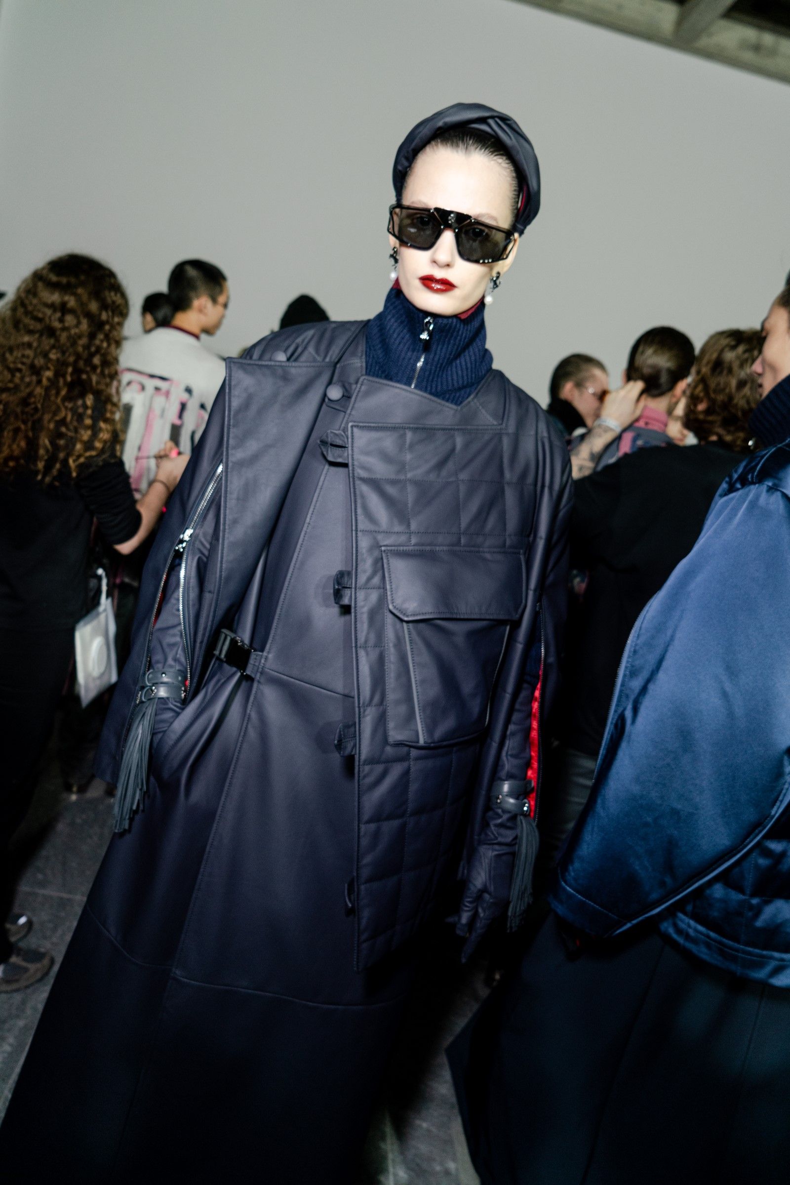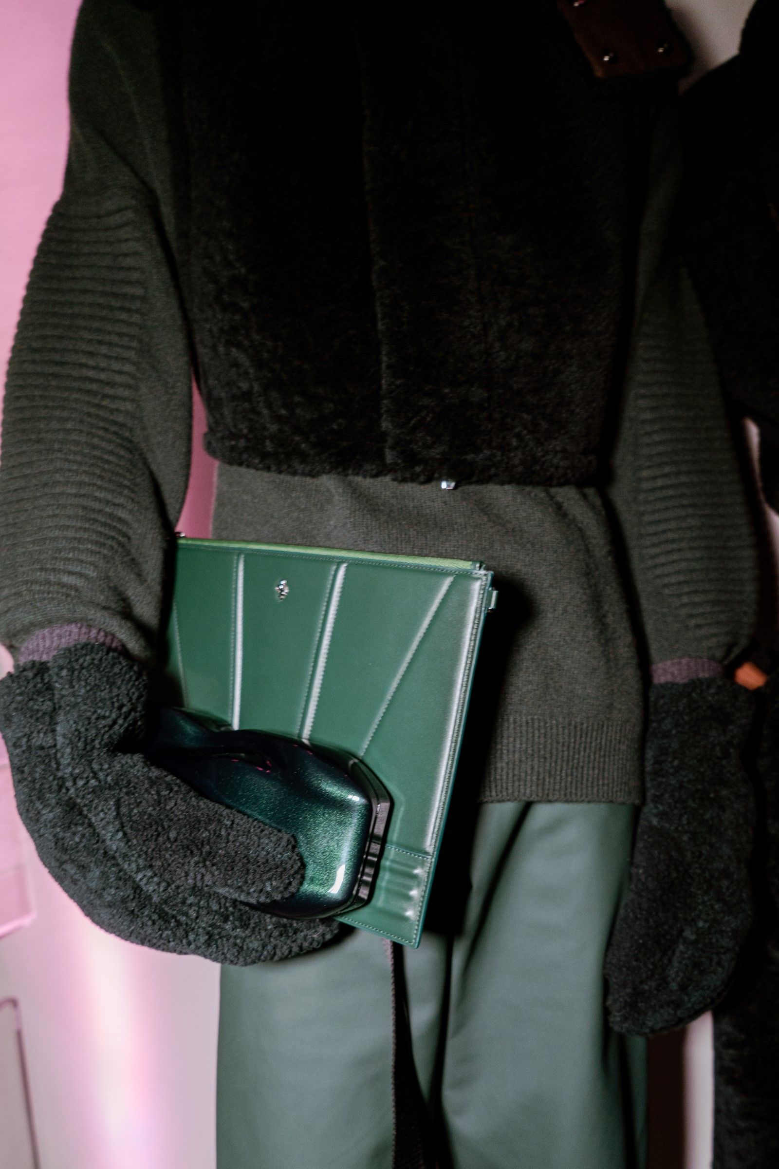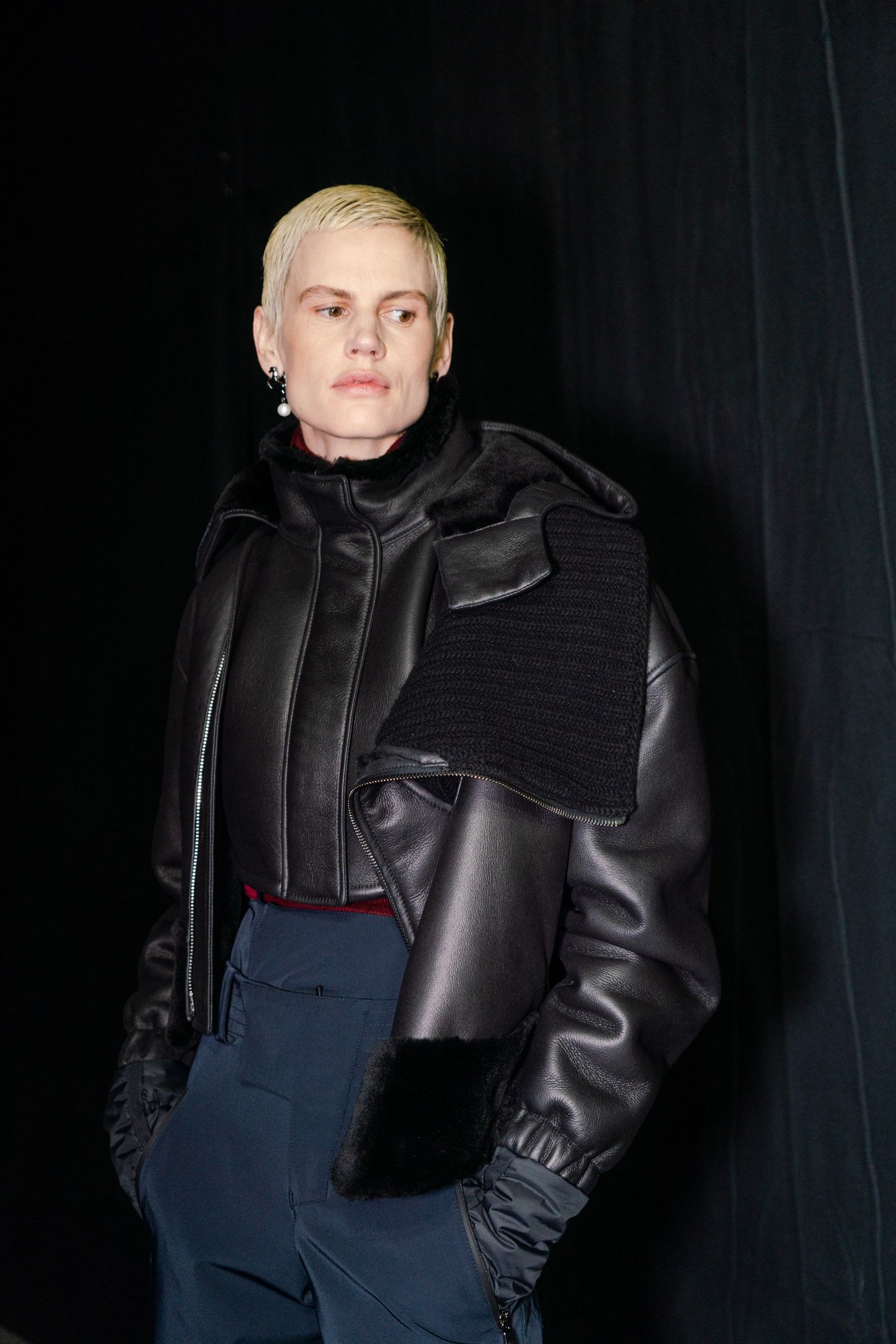 This dialogue between different elements takes place not only between the automotive world and fashion, but also between the collection being presented and its setting. «For the presentation of the FW 23/24 collection, we chose Palazzo Citterio, a place of history, a symbol of the beauty of eighteenth-century Italian art, and as a modern industrial design architecture that well represents the combination of craftsmanship feeling and technological progress at the heart of our collections», Iannone explains. An exceptional location whose values do not need to be "augmented" through a set design, but instead dialogues transparently with the entire collection, also communicating that hyper-sophisticated functionality that the designer has infused into his collections. «In terms of the set-up, the desire was to enhance the work done on the collection and to represent the location without camouflage led us to an extremely clean and rational scenic choice aimed at making the most of the garments». A collection, then, that exemplifies the desire to move forward, almost a meta-reflection on the Ferrari brand that creates an image of itself projected in the midst of progress. When we ask him how he envisions the brand's future, Iannone is confident, responding with just three words: «Dynamic, contemporary, assertive».