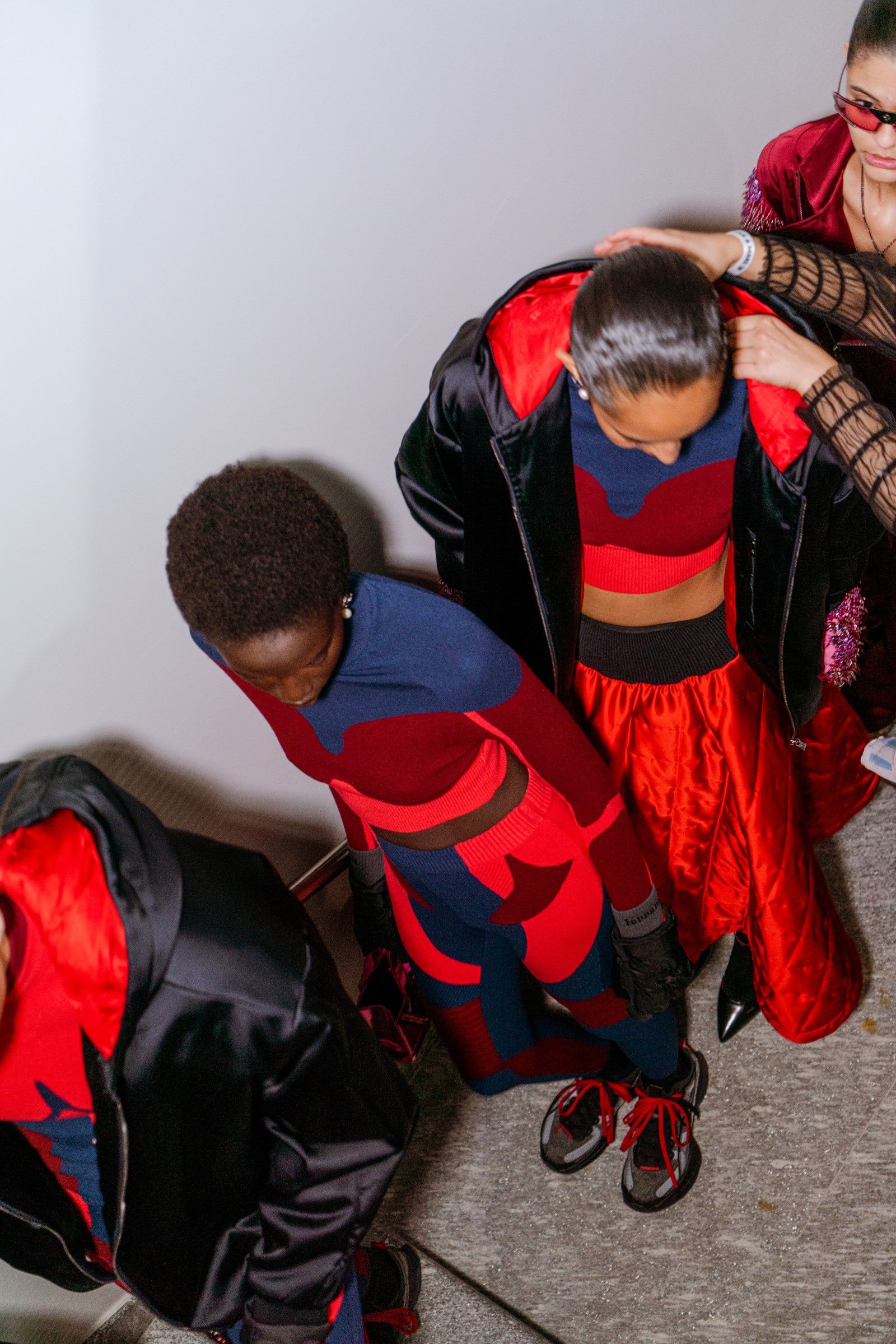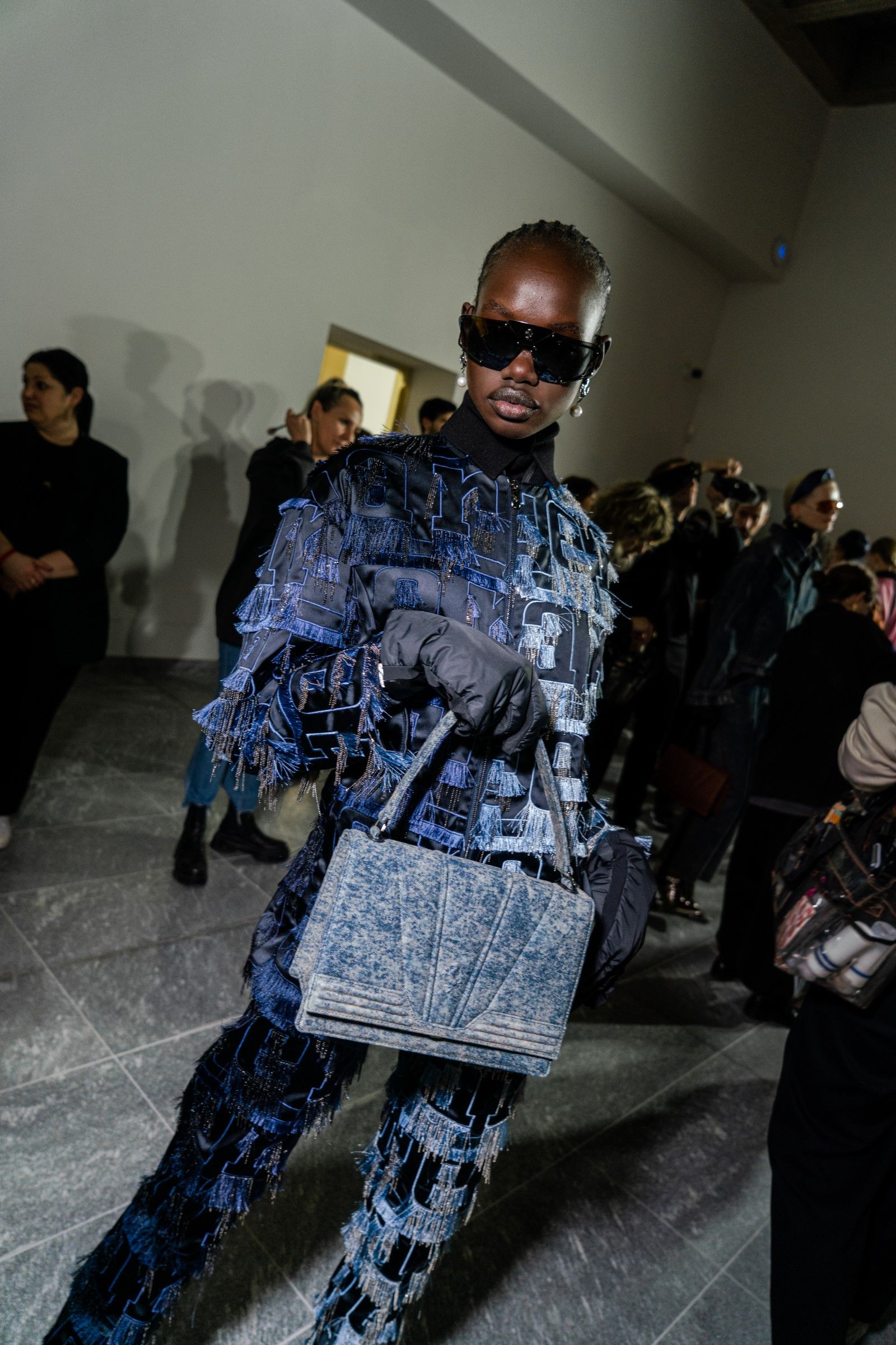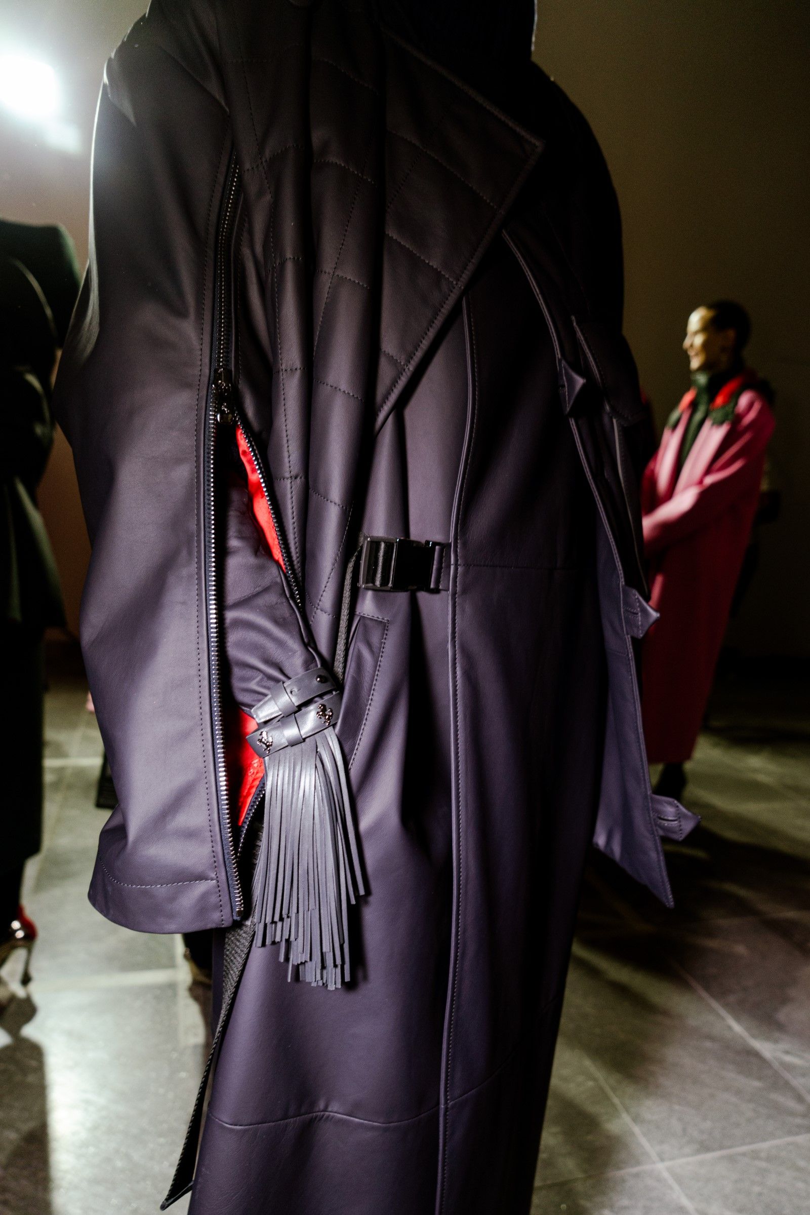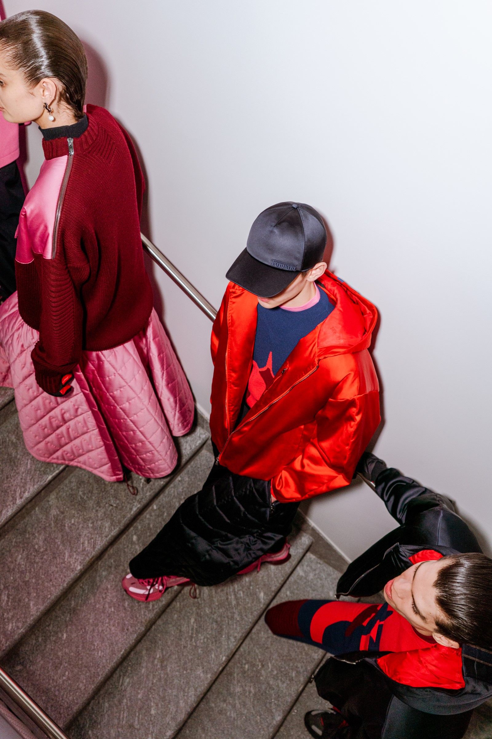 This dialogue between different elements takes place not only between the automotive world and fashion, but also between the collection being presented and its setting. «For the presentation of the FW 23/24 collection, we chose Palazzo Citterio, a place of history, a symbol of the beauty of eighteenth-century Italian art, and as a modern industrial design architecture that well represents the combination of craftsmanship feeling and technological progress at the heart of our collections», Iannone explains. An exceptional location whose values do not need to be "augmented" through a set design, but instead dialogues transparently with the entire collection, also communicating that hyper-sophisticated functionality that the designer has infused into his collections. «In terms of the set-up, the desire was to enhance the work done on the collection and to represent the location without camouflage led us to an extremely clean and rational scenic choice aimed at making the most of the garments». A collection, then, that exemplifies the desire to move forward, almost a meta-reflection on the Ferrari brand that creates an image of itself projected in the midst of progress. When we ask him how he envisions the brand's future, Iannone is confident, responding with just three words: «Dynamic, contemporary, assertive».