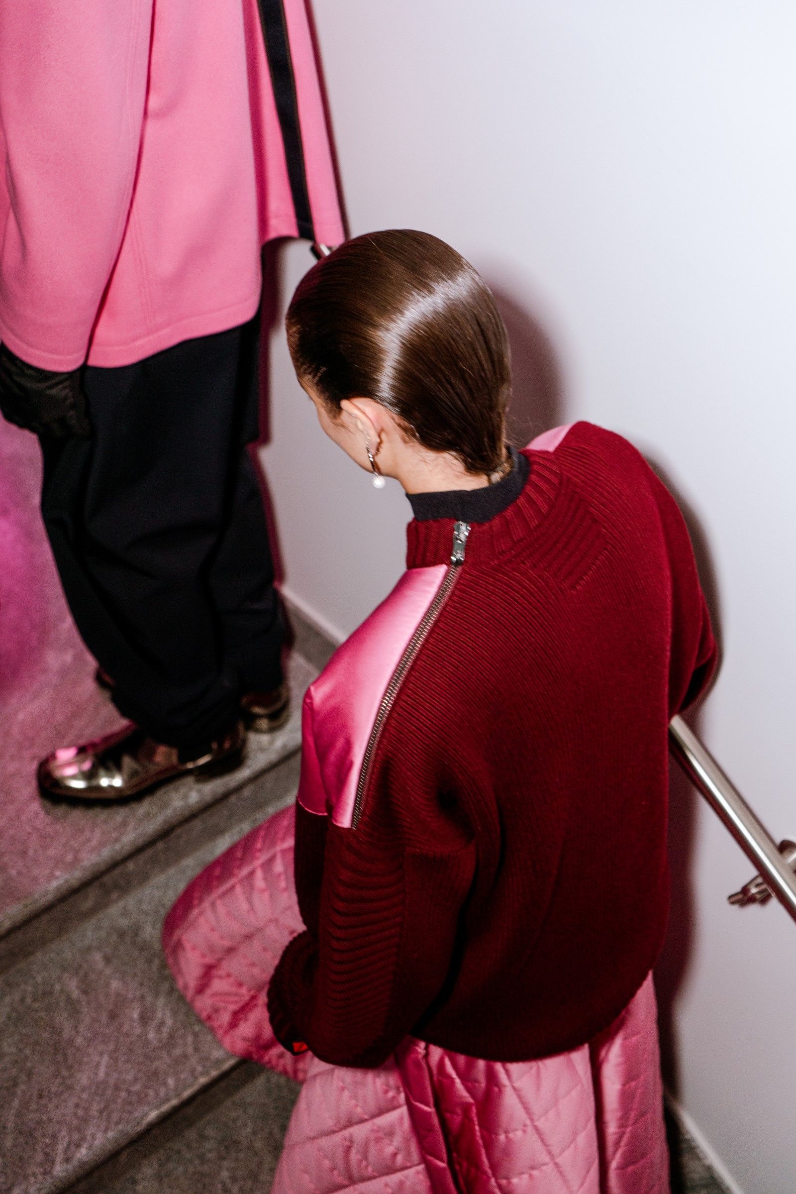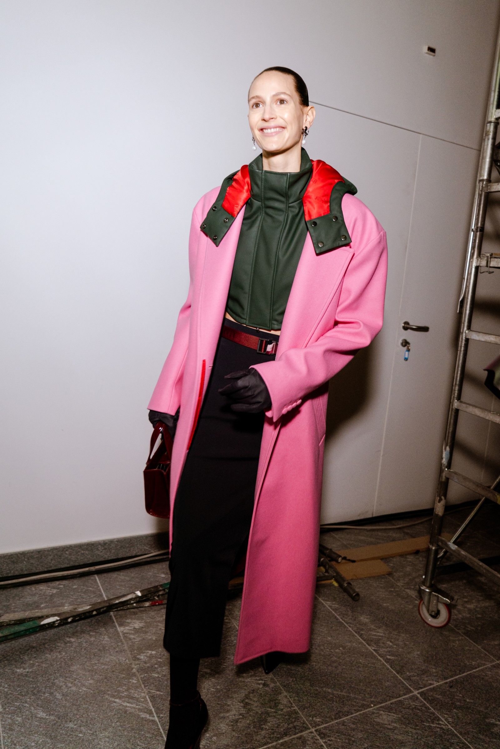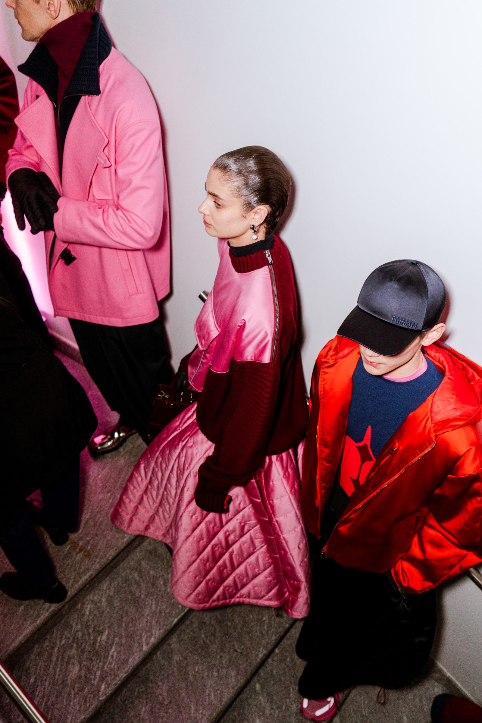 «I have always found it more interesting to explore processes as they occur rather than the end result», says Rocco Iannone about Ferrari's FW23 collection presented last Saturday at Palazzo Citterio in the heart of Brera. The collection focuses thematically on the theme of transition, of the process in the making-dominated by a pink hue missing that seems to be about to transform into Ferrari's red. «In the manifestation of a process, a passage, a transition, it is possible to grasp all the potential that can be expressed. The same thing happens with the concept of beauty, which I have always appreciated more in its fulfillment, in its becoming, rather than when the process is complete». It is clear that, since we are talking about Ferrari, these values of beauty must relate to a cultural heritage that relates as much to the automotive world as to the lifestyle that surrounds racing teams and competitions such as Formula 1. That is why the beauty of Ferrari according to Iannone is related to «to its design, its sensuous elines, its absolute volumes and the balance of forms» which is expressed, then, in a new transition, «in that process of acceleration that propels it toward the speed», beauty in motion. It could not be a Ferrari show, then, without direct communication between the world of automotive materials and fashion. It all takes place within the boundaries «of Ferrari's own mission of eco-friendliness and reduction of environmental impact».