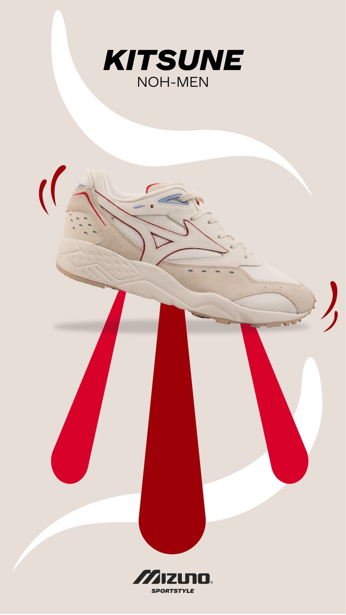 Each of the three sneakers has been associated with one of the traditional masks, combining the fascination of Japanese culture with the modernity of Mizuno footwear. The Wave Rider 10, famous among Mizuno Running fans, is designed in shades of grey as is the mask symbolizing wisdom, "Okina"; the Sky Medal, with its 90s silhouette, looks to "Tengu," which before representing protection and prosperity, was linked to images of terror, war, and evil; and finally the Contender, based on a 1995 trainer designed for novice runners, is inspired by "Kitsune," the fox-shaped mask.