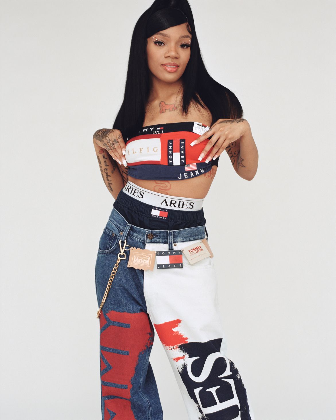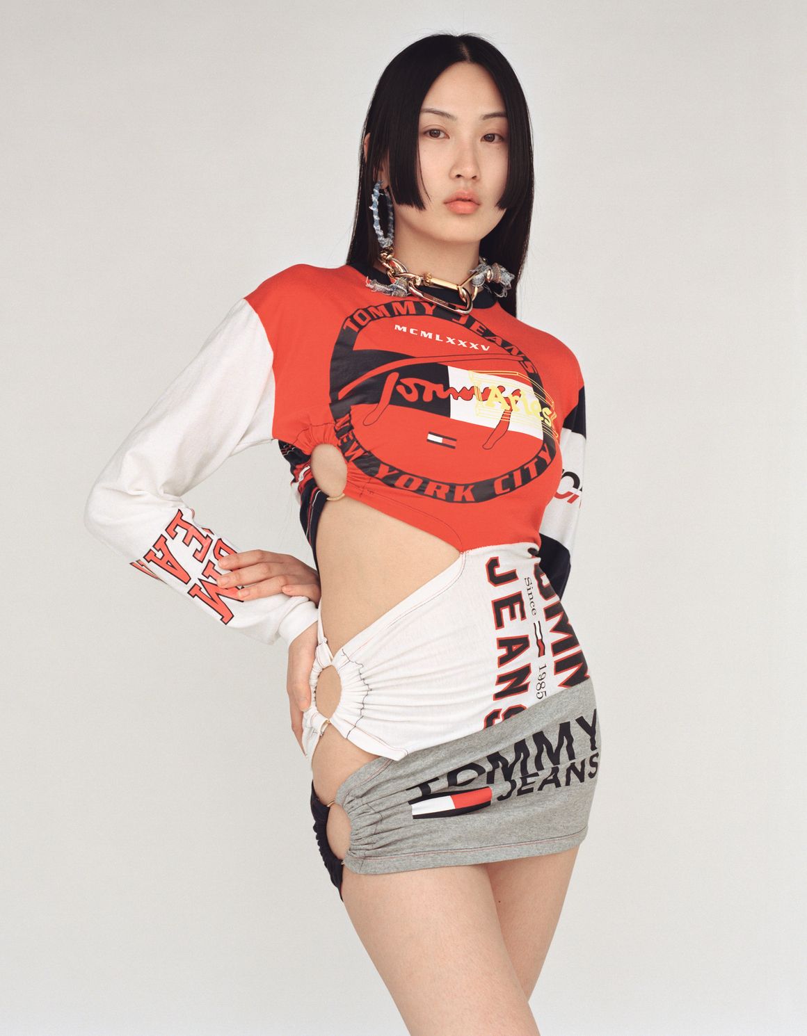 Following the Waste Nothing and Welcome All project, Tommy Hilfiger's sustainable commitment against textile waste, the brand offered Aries pre-existing pieces from post-consumer materials and surplus fabrics. Different denim styles have been layered, trousers and tops have been repainted using the screen-printing method; each piece in the new collection takes inspiration from the Tommy Jeans archive and writes a new page of its history. Among the most colourful pieces are a dress created by combining three t-shirts, corsets, and men's sweaters decorated with graffiti motifs. The garments are embellished with patches, rips, embroidery, and artworks, celebrated in the campaign by an outstanding cast, which includes rapper GloRilla and grime artist Novelist, who worked together with 5EB and Kirbs on the soundtrack to the film directed by Sofia Prantera, as well as names familiar to the Aries world, such as Brian Tshabola, Haajar Djouada, Kasper Kapica, Nathan Rosen and Xiao Wang.