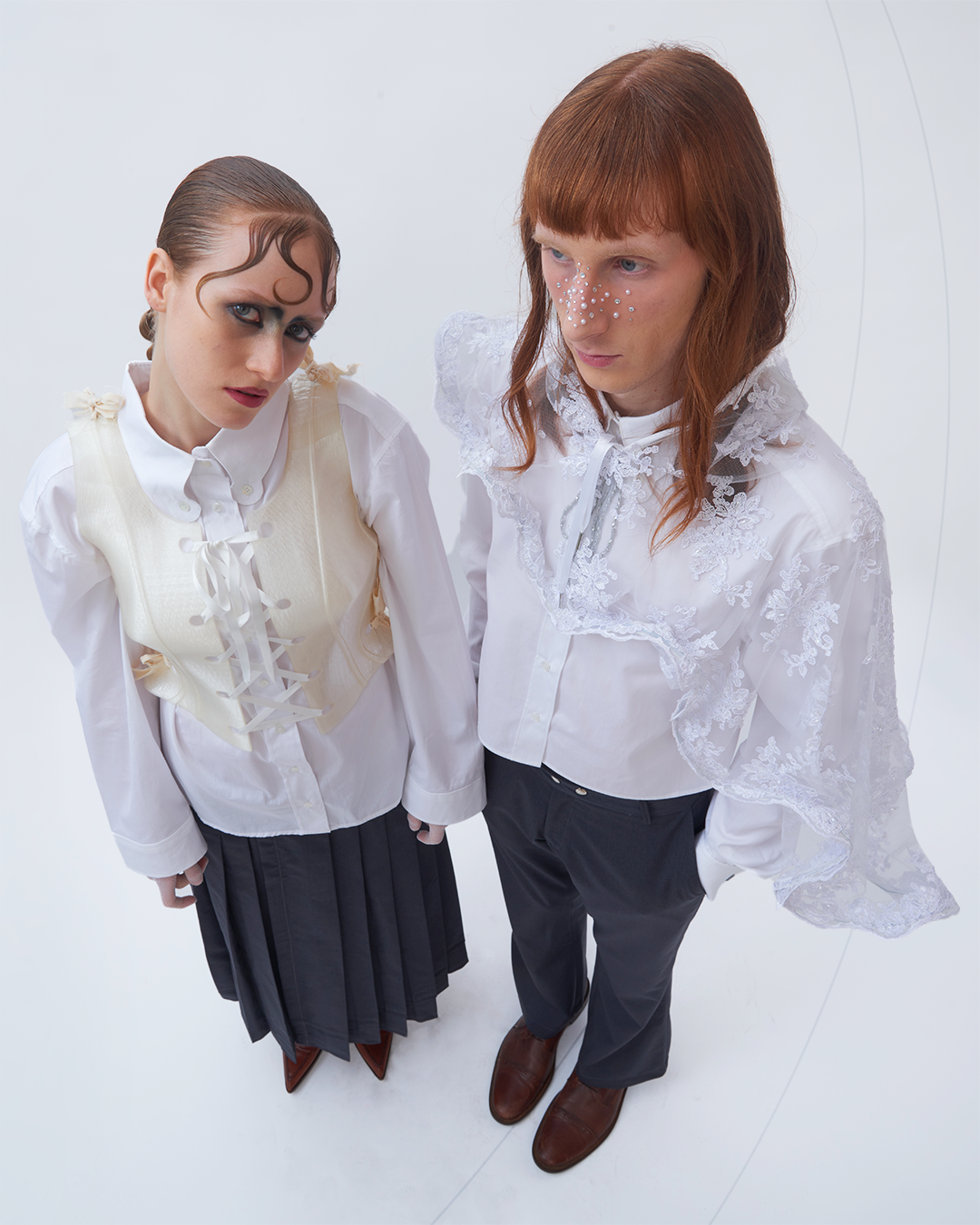 Mystery and the unknown are subtly present in Aurilio's collections, «like a shadow» or «a mystycal aura» that surrounds its designs. And the debut collection just presented wants to «on the one hand experimenting with the potential of haute couture and on the other hand offering less elaborate garments that perfectly fit all needs», using techniques such as up-cycling and 3D printing that combine the ancient technique of repurposing used fabrics and the innovative technique of creating them from scratch. The decision to adopt a basic color palette, based on black and white, serves to create an initial neutral background on which to progressively build meanings based on history and symbolism as the collections continue. «Indeed, since the Middle Ages, black has always been the emblem of evil, white on the other hand of purity. Even the few color accents added to the collection are not accidental: Yellow was associated with the outcasts, the different». But the brand's cultural quest also moves on the cultural tracks of nobility: noble is the purpose of the brand's creative and production choices, and noble is the respect brought to its values and products. «The aesthetic of the archival collection differs from the ready-to-wear part in the purpose of the two lines», the founders explain. The idea is to build bridges between the past and the present but also between the present and the future - harking back to the imagery of the Middle Ages does not mean relegating oneself to the past. «Commitment to communicating the past with the future is represented by Aurilio's digital component, an aspect that we attend to just as carefully», they explain. «Aurilio wants to insert itself into digital fashion, and to make this happen we have a meta platform that will soon give people the ability to wear digital garments through VR technology».