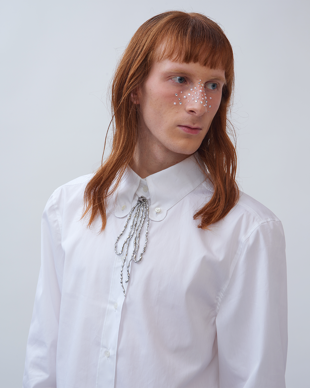 As mentioned, Aurilio's creativity draws on an esoteric and medieval aesthetic, a value to which the founders define «spiritual identity». The idea of creating a brand that was endowed with a spiritual (and therefore not only aesthetic) identity was born at a moment in history «dense with social questions and uncertainties», one year after the start of the pandemic. To answer these questions, Aurilio's founders chose to create a brand that looked at luxury but interpreted it under the sort of «Noble values that were applicable to the individual rather than to the "mere" garment». And that is how Aurilio's emblem became the Modern Knight, who is «an individual who shows himself for his values by inviting others to pursue the path of the common good, leaving behind the pursuit of personal glory». An emblem on which then inevitably medieval visual suggestions have been accumulating, linked to a past evoked with idealism but without inapt nostalgia: «The medieval aesthetic was a natural consequence, and we decided to elevate it with a touch of esotericism». And it is precisely this research in the field of esotericism, myth and legendary narratives that has produced the collection An Infinite Love, which originated as a study of archetypes associated with the medieval world and brought back into contemporary contexts. «From the cross-temporal examination of these characters», the founders explained, «a marriage of past, present and future, of medieval and contemporary fashion, of classical and more experimental and innovative manufacturing techniques is born».