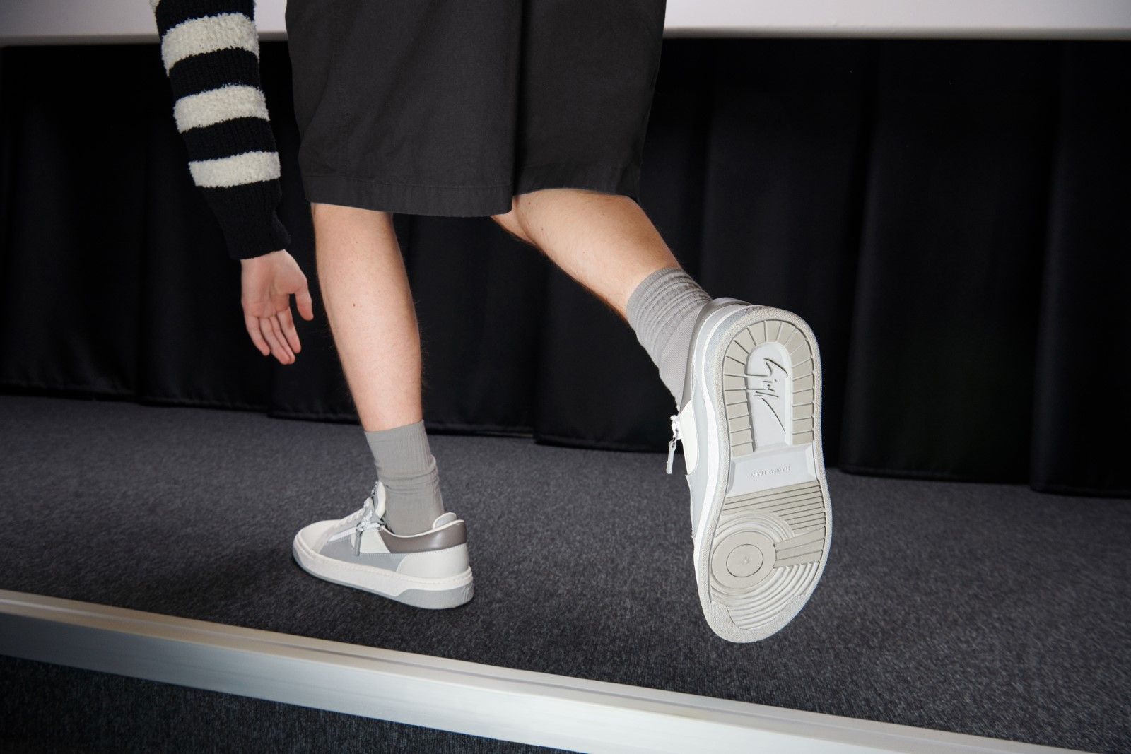 Giuseppe Zanotti's Double Zips were the first luxury sneakers in fashion history. Their secret was that they were able to connect the cultural zeitgeist of the 1910s, at the time of the hip-hop scene's mainstream success, with Giuseppe Zanotti's Made in Italy quality and punk sensibility. But icons also renew themselves. And that's why the brand has created a new silhouette, the GZ94, to reinterpret the classic double-zip model. The GZ94 is a city shoe, less rigid than a formal shoe but more elegant than a regular sneaker, but above all able to encapsulate both Zanotti's manufacturing expertise and an unmistakable and recognizable identity that creates a bridge of continuity between past and future. A shoe born to face everyday life, minimal and all dedicated to expressing its beauty through the quality of materials and the functionality of design.