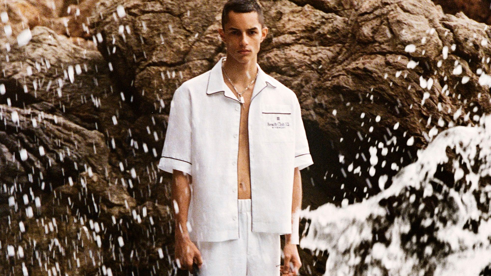 Givenchy's creative director, Matthew M. Williams, stated that he wanted to explore the lifestyle of the French Riviera through light and color, particularly the pearl pink facades typical of that region. The Givenchy Plage collection celebrates a relaxed and joyful art de vivre, bringing together the relaxed glamour of the French Riviera and the Californian roots of the creative director.