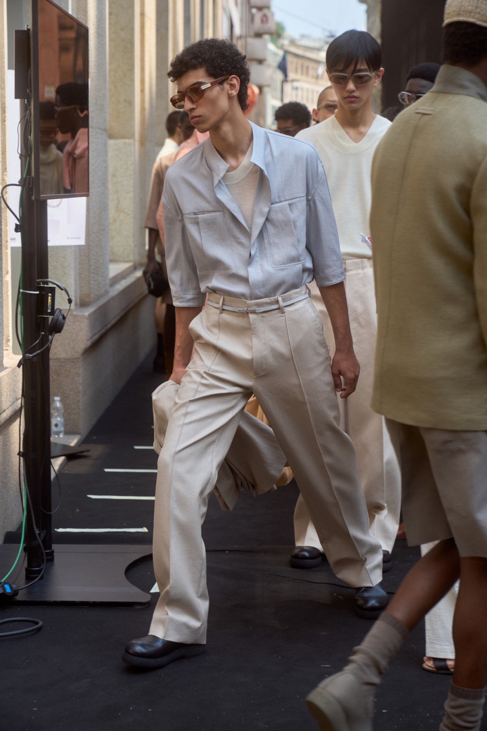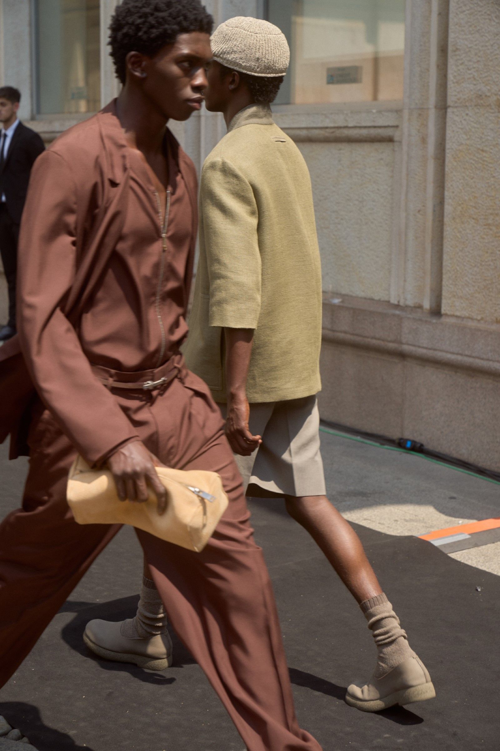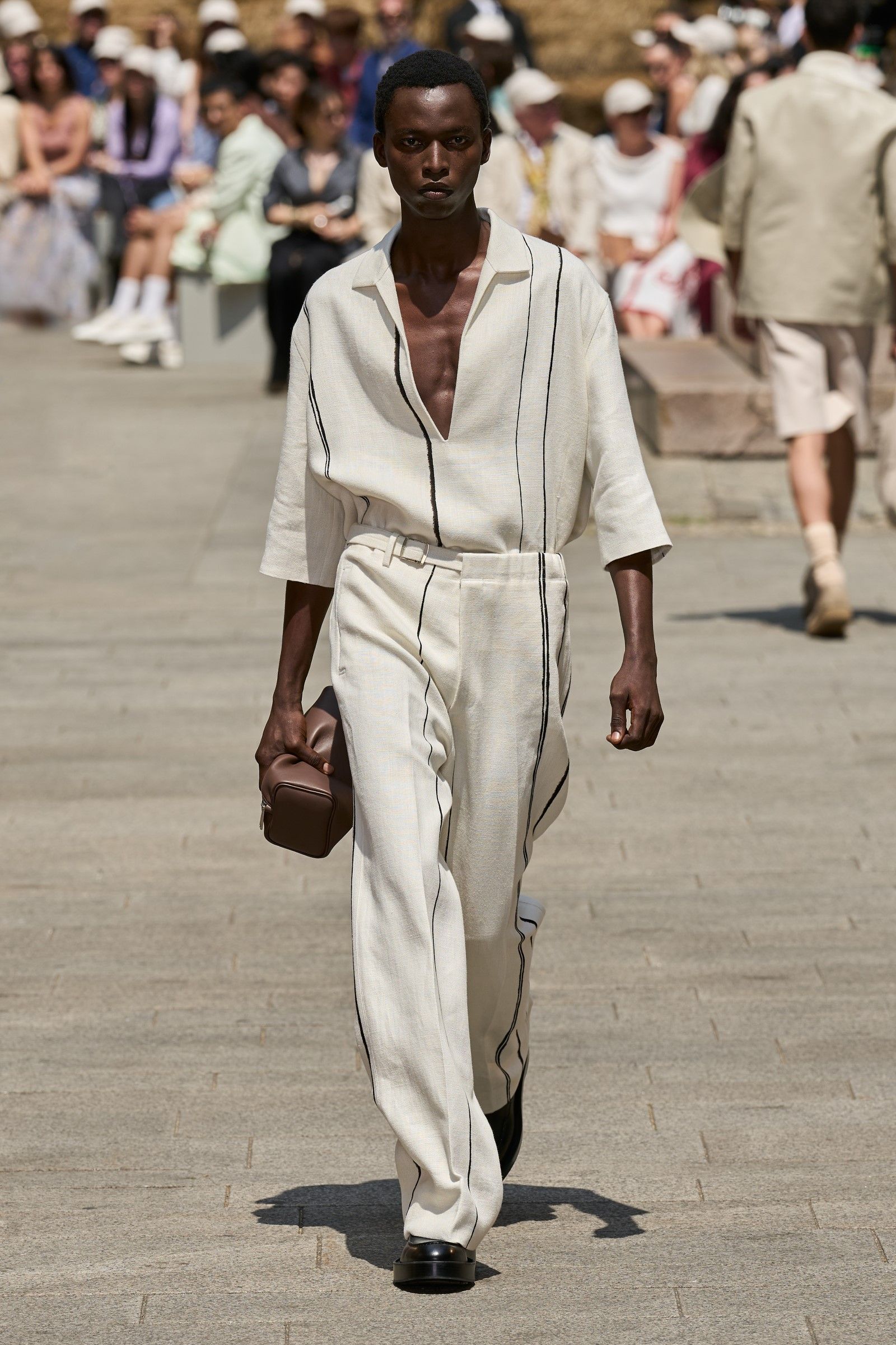 Interestingly, in his statement released to the press on the occasion of Zegna's SS24 show, Alessandro Sartori spoke of a «efficient wardrobe», since it was precisely an aestheticized idea of efficiency that seems to have guided the creation of this new summer collection with which Milan Fashion Week for men closed. As always, with Zegna, raw material, design and end result exist seamlessly - one generates the other in a geometric progression. The show's set design itself, a wall of linen bales that framed the runway inside Piazza San Fedele, was made up of those raw materials that, when the show was over, would be shipped back to the factory to become new clothes. As for the clothes, it was precisely in this collection that we saw how Alessandro Sartori's approach to design, with its proportions, its silhouette, its virtuosic minimalism, is able to make every garment of that traditional wardrobe part of its system, which it was the creative director's precise desire to reinvent in order to create a vocabulary of his own, hyper-recognizable and inter-generational.