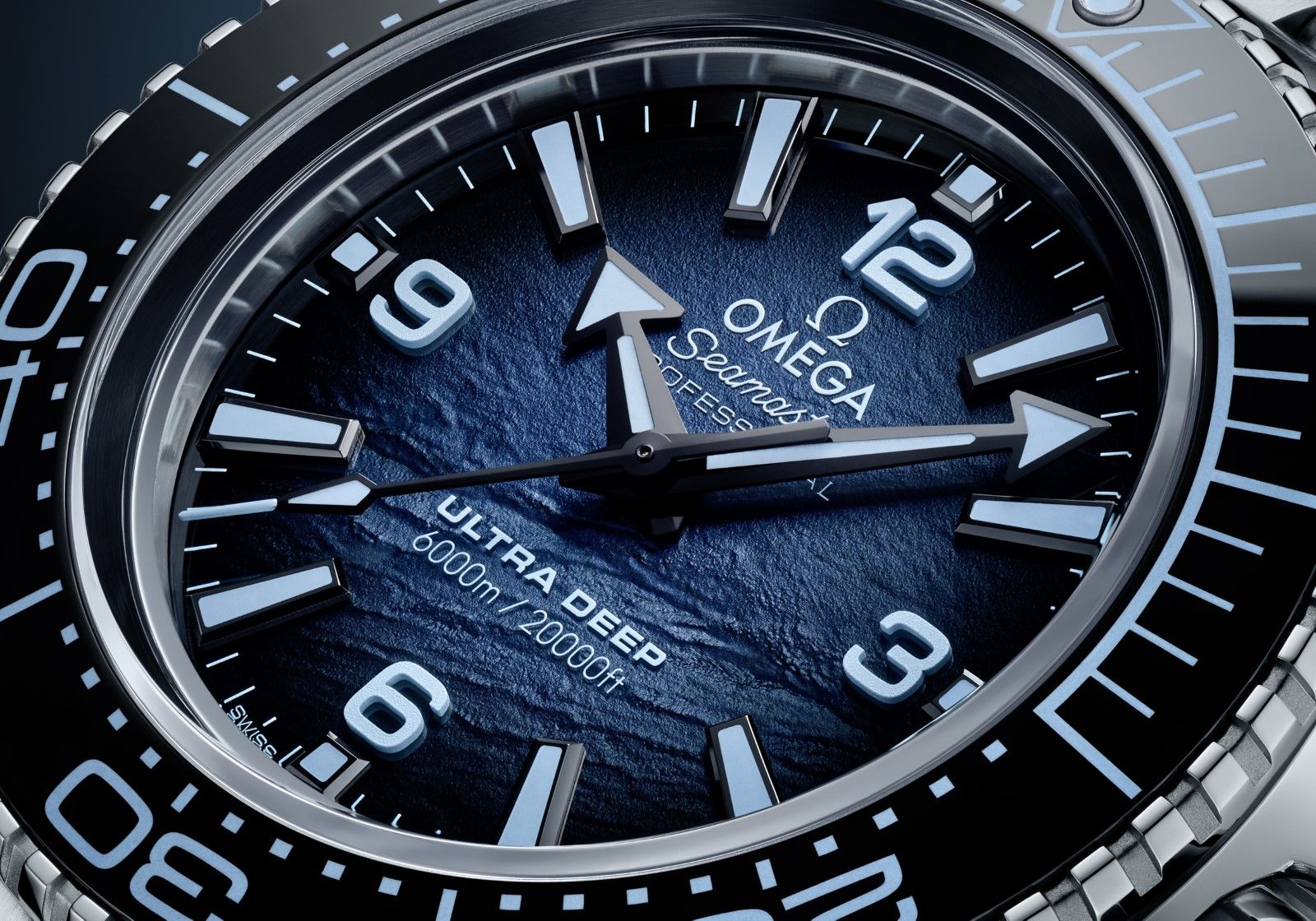 In 2019, OMEGA set a historic record by exploring the deepest point on Earth in the Mariana Trench with OMEGA Ultra Deep watches. This technology was then transformed into a revolutionary collection available to the public, offering extraordinary water resistance to 6,000 meters. The watch has been tested in real ocean conditions and certified to the ISO 6425:2018 standard for diving watches by the Swiss Federal Institute of Metrology (METAS). The 45.5 mm model features a durable O-MEGASTEEL case and bracelet, ensuring maximum strength and reliability. The extraordinary dial faithfully reproduces the Challenger Deep, mapped by "The Five Deeps" team with sonar points. The lacquered finish of the dial creates a unique depth effect. Inside beats the OMEGA Co-Axial Master Chronometer caliber 8912, the same caliber used in the legendary Ploprof. The dial hides a playful element: under a UV light, the inscription "OMEGA WAS HERE" appears, celebrating the historic 10,935-meter dive and showing the western, central and eastern basins. The OMEGA Seamaster Ultra Deep represents a symbol of technological innovation and extreme durability, enabling dive watch enthusiasts to explore the deep sea with confidence and style.