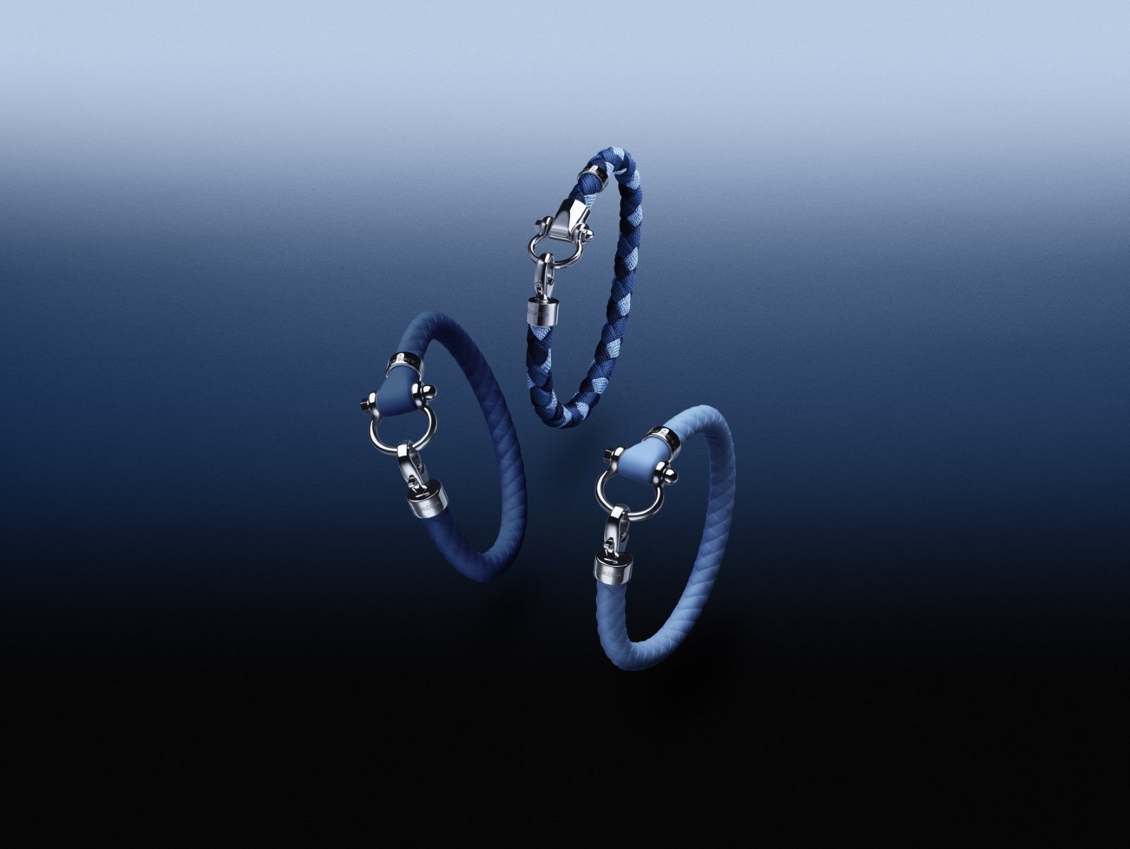 To accompany the new Seamaster watches, OMEGA has created a line of accessories inspired by the collection and its summer blue dials. Among these accessories, we find key rings with a wave motif reminiscent of the marine element found in the Seamaster collection. In addition, OMEGA offers sailing bracelets in different shades of blue, perfect for completing the watches' marine-inspired look. For lovers of sophisticated details, there are cufflinks with the hippocampus logo, a distinctive OMEGA icon and symbol of the Seamaster collection. Finally, for those seeking a touch of elegance, there is a blue bracelet with a clasp depicting Poseidon's trident, made of stainless steel. These accessories are designed to complement the experience of Seamaster watch owners, offering styling and personalization options that reflect the marine spirit and aesthetics of the OMEGA collection.
