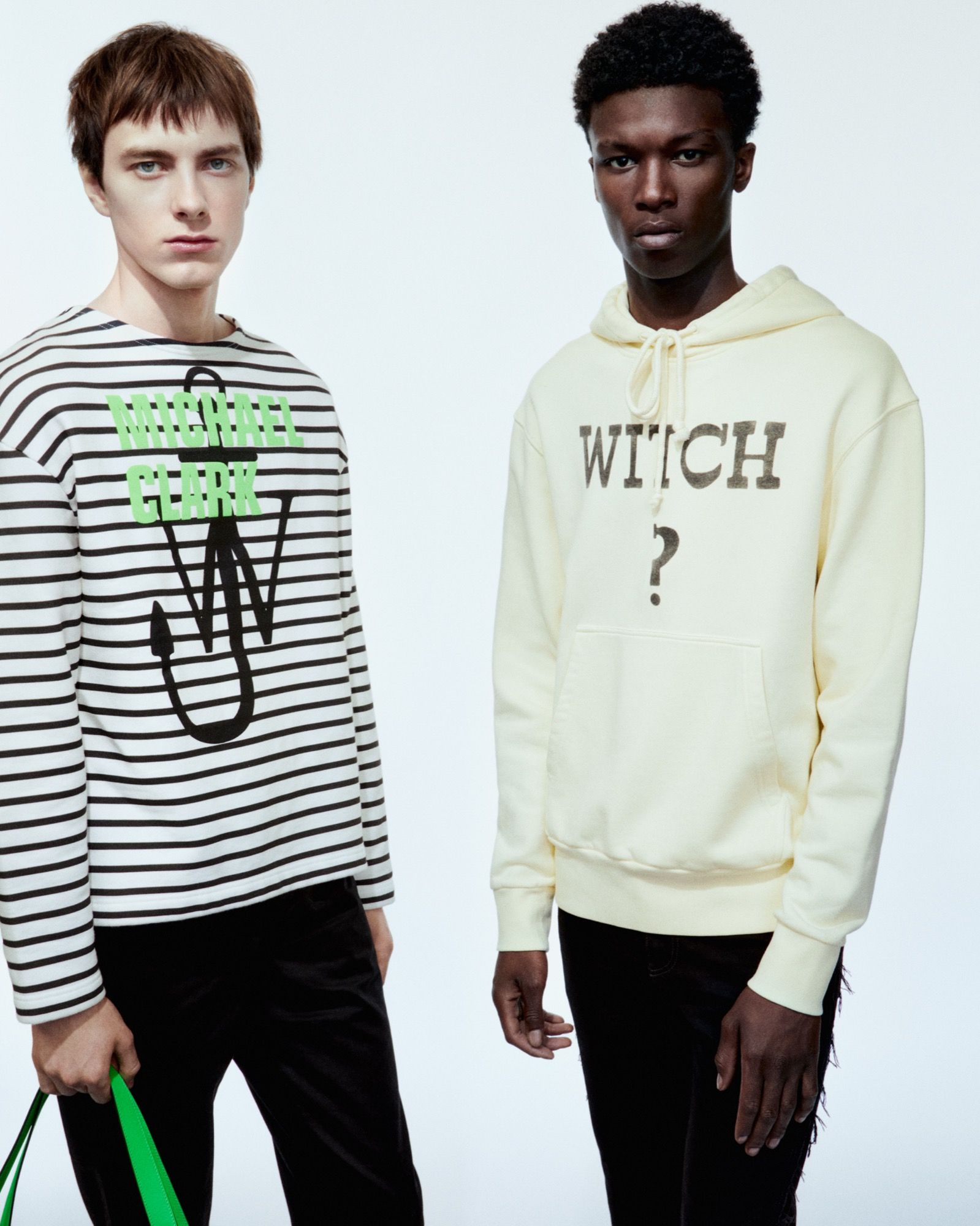 World renowned Scottish dancer and choreographer Michael Clark's collaboration with JW Anderson, first shown during London Fashion Week FW23, has just landed in stores. The capsule collection tells, on ready-to-wear garments, bags and accessories, a daring story full of personality that unites the stylistic codes of Clark and Anderson in an ironic way - as is the style of both creatives. From Clark's graphics to the fluorescent logo, the artist's iconic signature, tank tops, sweatshirts and baseball caps become statement pieces with an eccentric soul.
