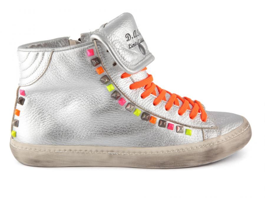 D.A.T.E. presents the Hill High Limited edition from the black and dark brown with unusual orange and silver, through the fuchsia and green. Then the choice of adding unusual stud, different shapes and materials, always creates new style: oblique lines, profiles and constellations always cool. The Hill High Limited Edition are inspired by musical genres followed by young people: among others, the colors black, dark brown, green grunge are interpretations of the world, we also find the rock in the Orange and yellow, with a touch of electronic music fucsia and silver decorated with studs and neon mirrors. The result: the infinite and personalized choice.