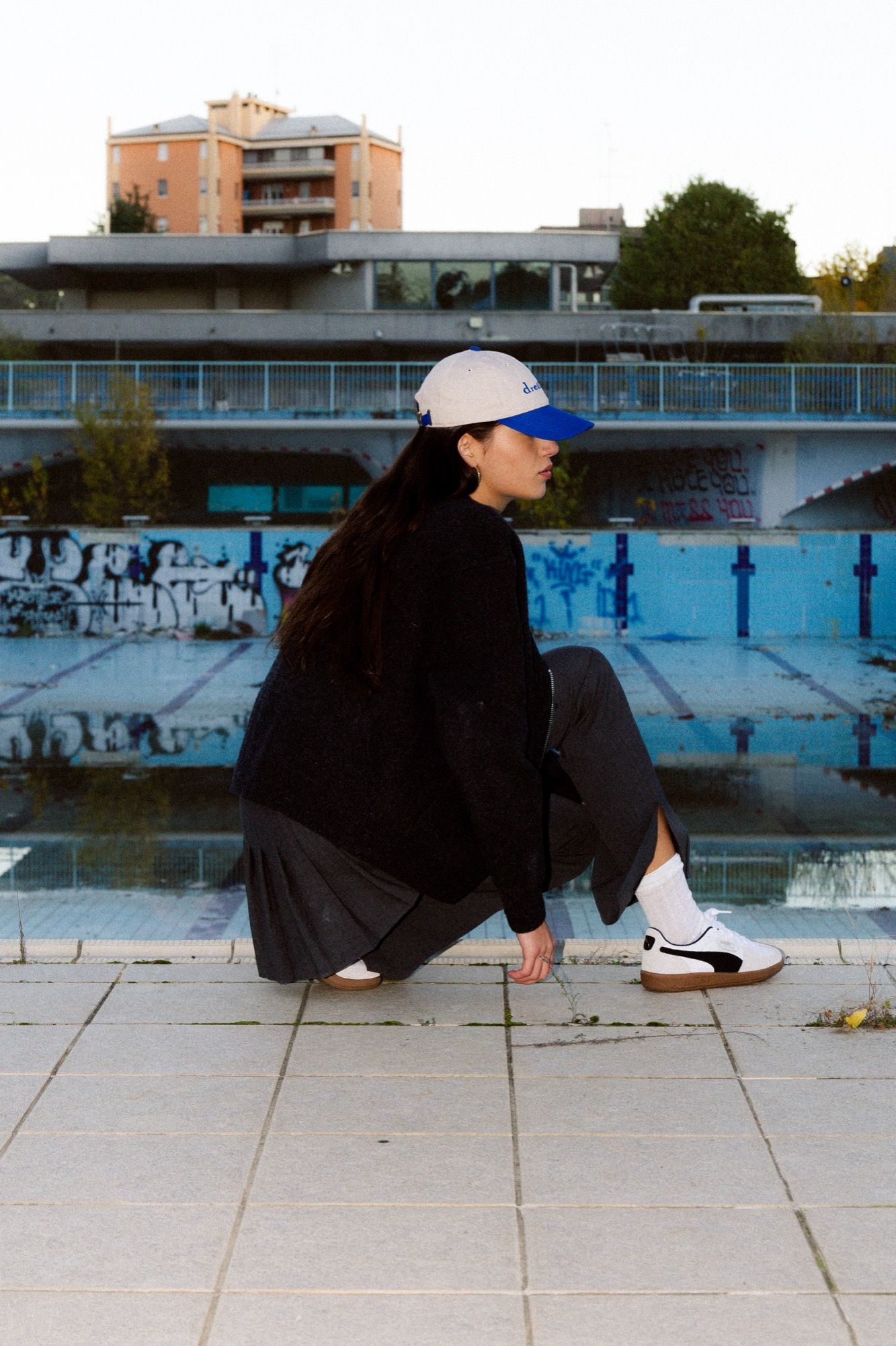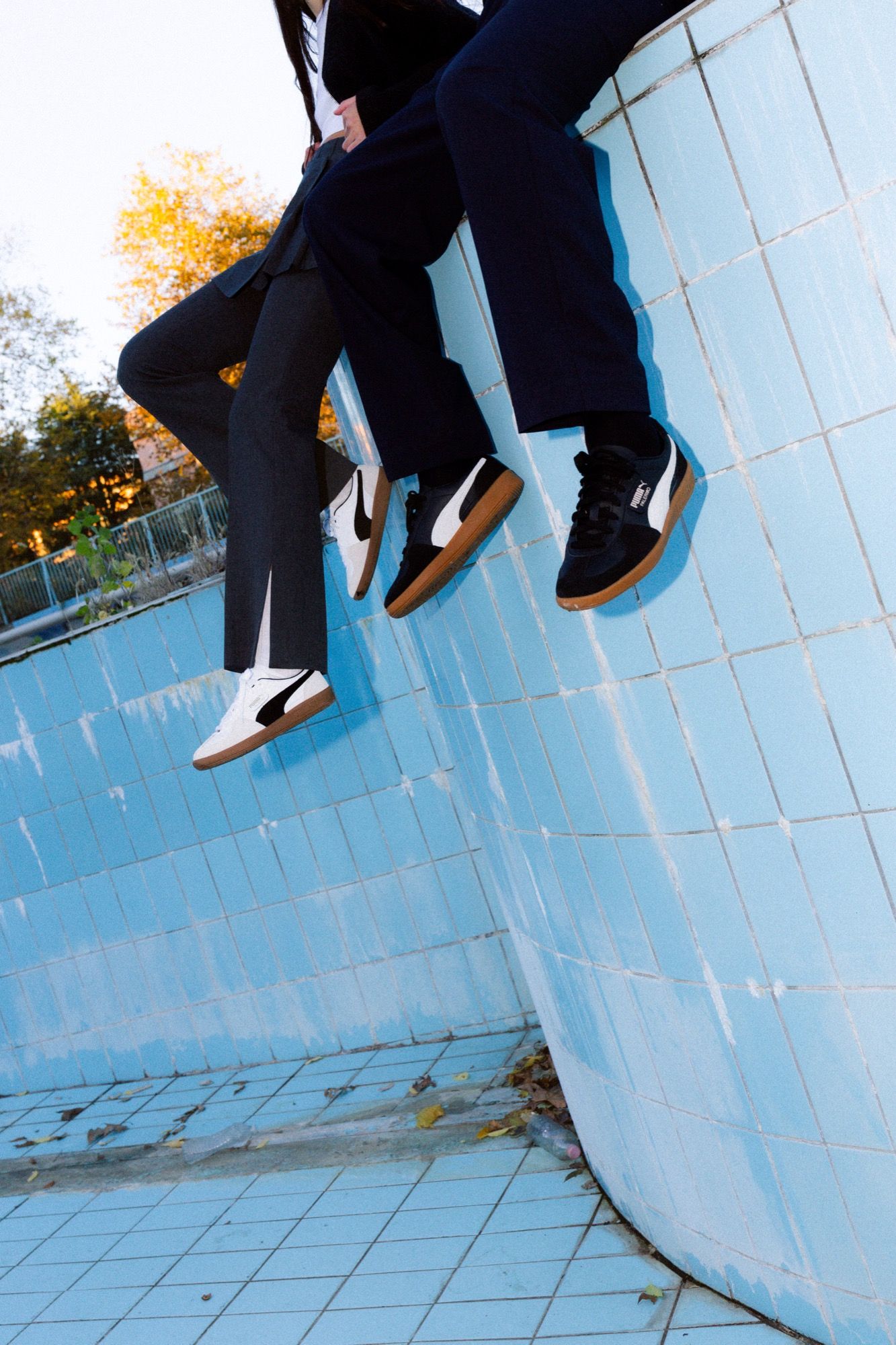 In nss's images for PUMA, the DNA of Palermo that began to take shape forty years ago with the launch of a special series dedicated to various European cities takes on a new form. Drawing inspiration from the blokecore aesthetic that has reached its peak success in 2023, the campaign styling reflects the world of football with the special addition of a poetic dynamic, all in an Italian way. Shortly after dusk, the two individuals break into a sports center and spend time together by the pool, a moment of intimacy that in the new millennium holds the same emotional charge as in the past. Football enthusiasts brought Palermo into the spotlight, demonstrating the perfect aesthetic balance between sports and lifestyle that has characterized the sneaker since its origins and is now found in the beloved blokecore of the Gen Z. The velvety leather upper, T-toe, and the inevitable rubber sole remain the same, but today Palermo has been projected into a dynamic and creative universe, a aspect that has been framed by a nostalgic flair in the images of this new PUMA campaign.