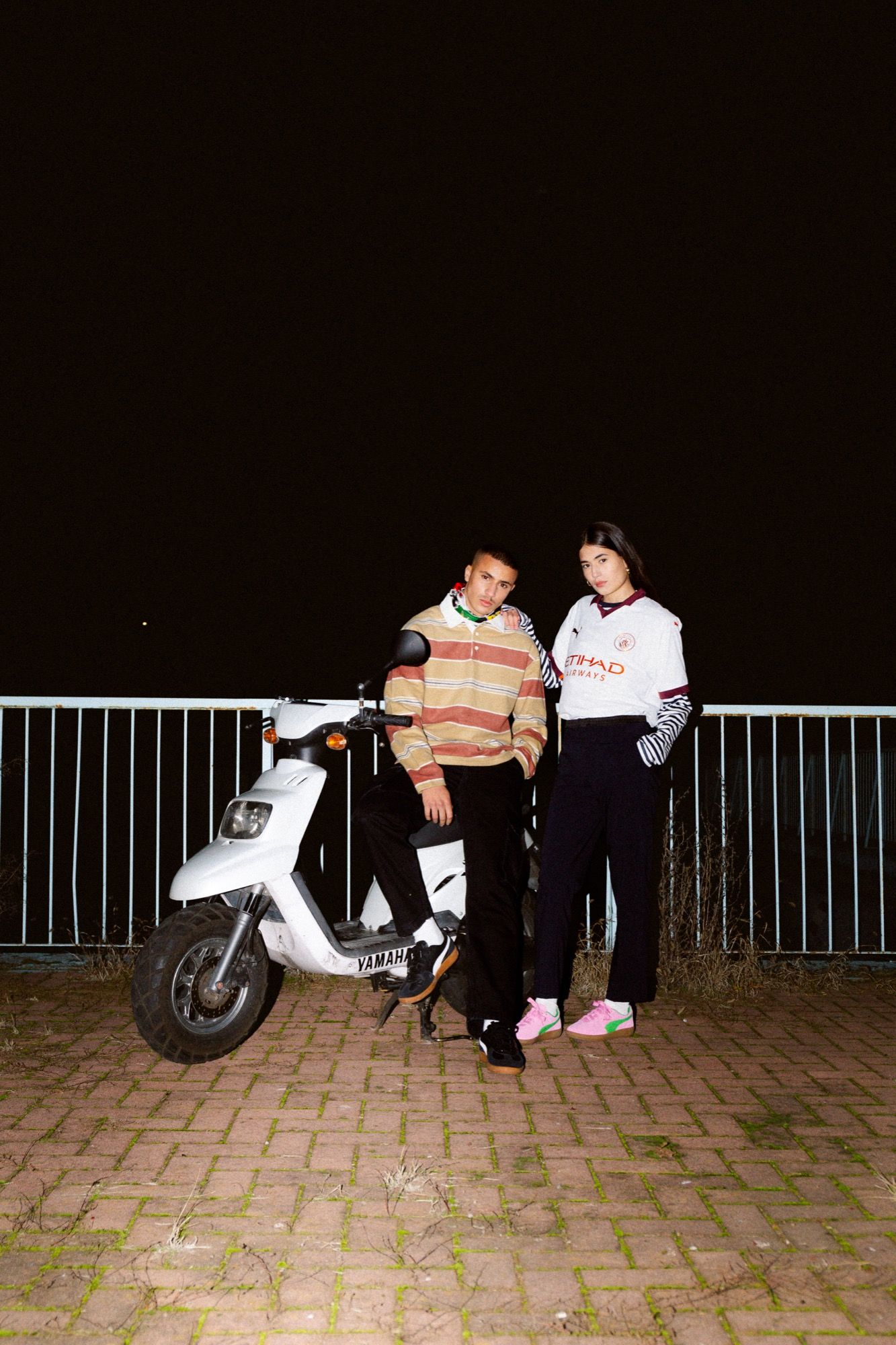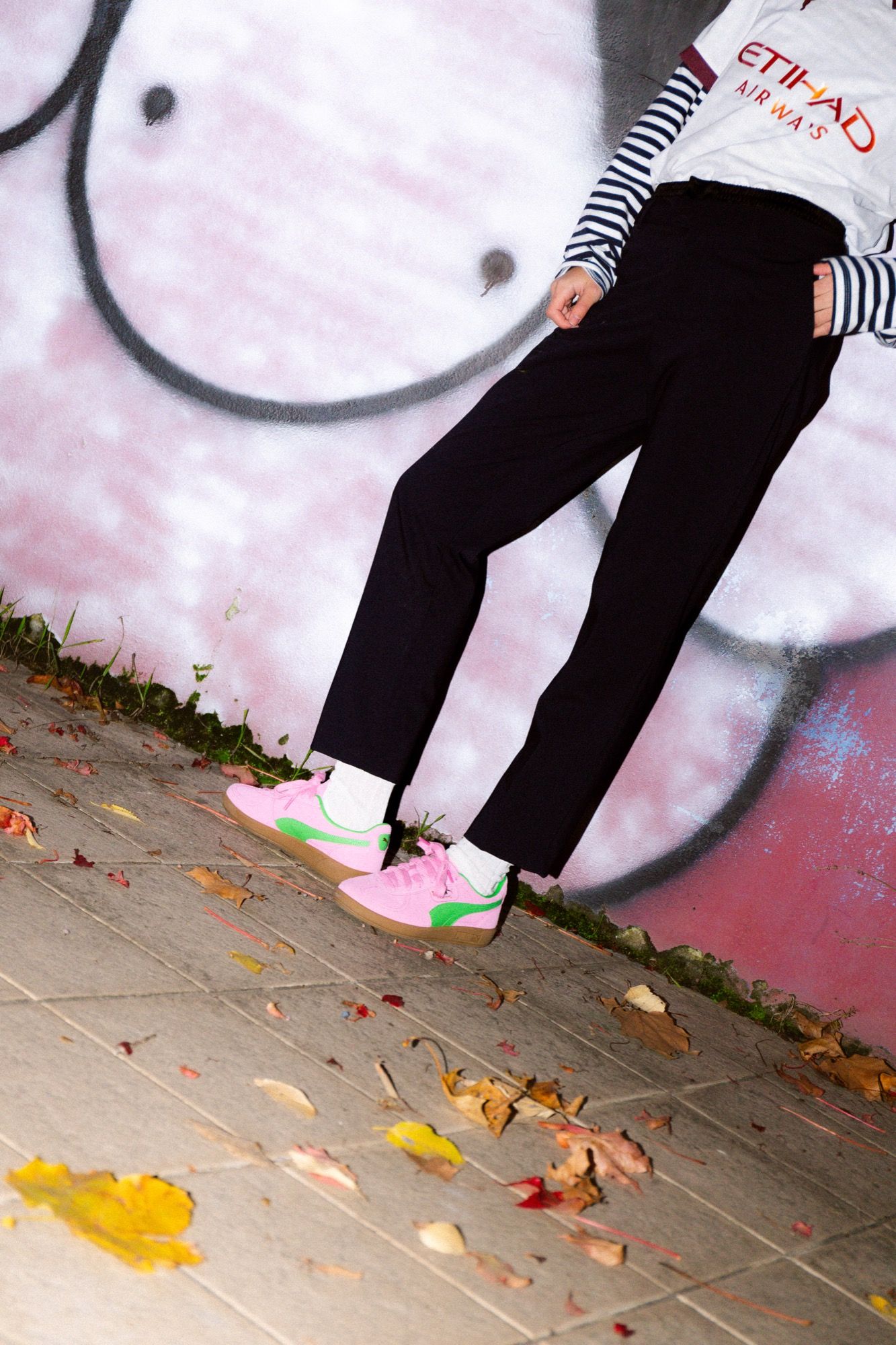 This 2023 marks the grand relaunch of the PUMA Palermo, a retro icon rooted in the football fan culture of the '80s. The new collections that have reintroduced the unmistakable sleek and colorful silhouette of Palermo have pushed their versatility to the extreme, drawing inspiration from the vast brand archive and adding new features to fuel their evolution. Today, Palermo is a favorite among international stars like Dua Lipa and Jack Grealish, continuing to be chosen by new generations as a cornerstone of their style. The latest chapter of PUMA Palermo has been written by nss, with a photoshoot commemorating the football aesthetic of the sneaker in an urban context. Like a heartfelt rom-com from the nostalgic 2000s, the campaign tells the story of the romantic escape of two protagonists who enjoy their freedom carefree, accompanied by the inevitable Palermo.
